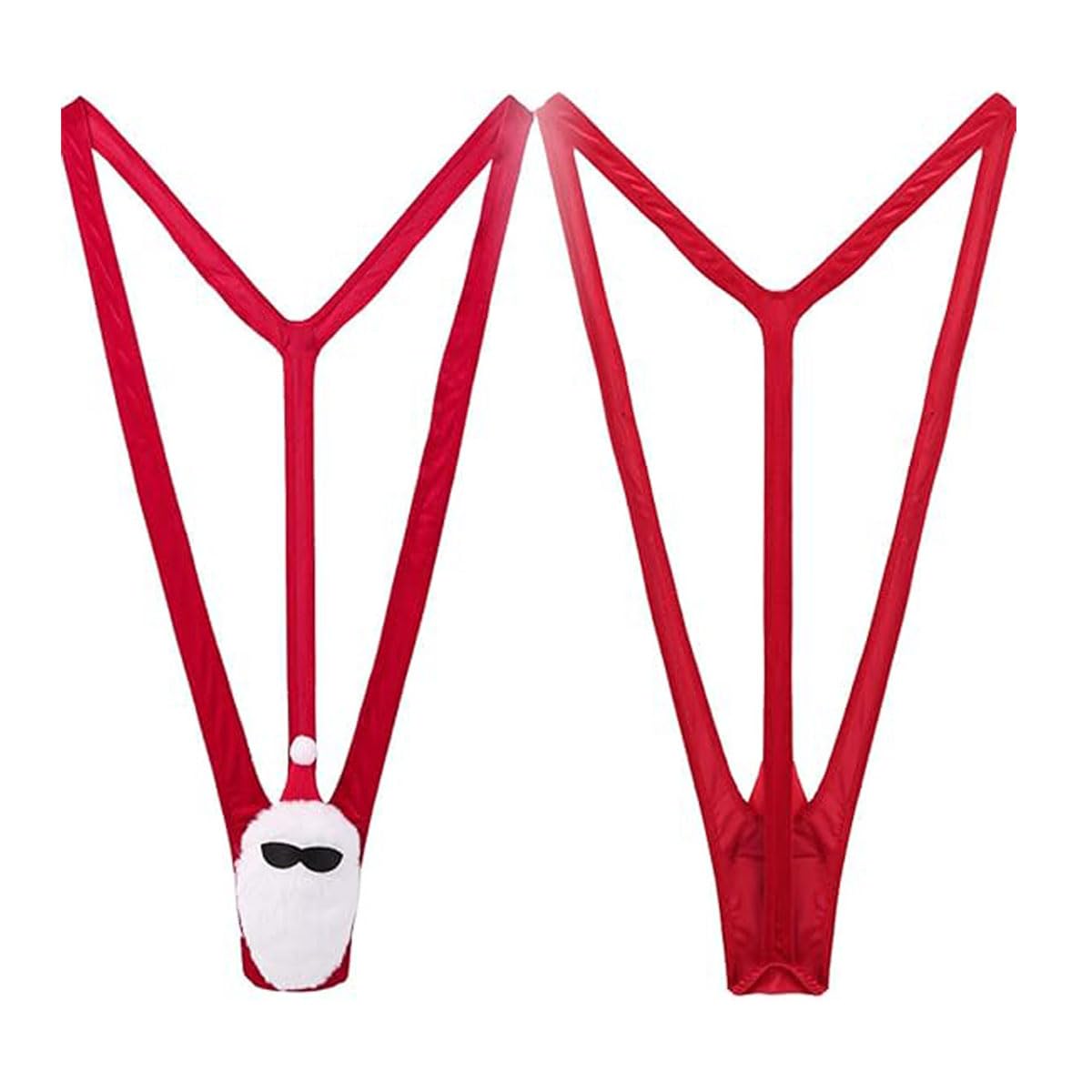 Herren Tanga Weihnachten Sexy Unterwäsche für Männer Xmas Santa Mankini String Sexy Lustig UK Hot Rentier Schneemann Tanga Borat V Strap Brace Kleine Glocke Kostüm für Männer Witz Neuheit Geschenk Geburtstag