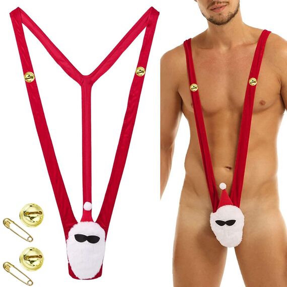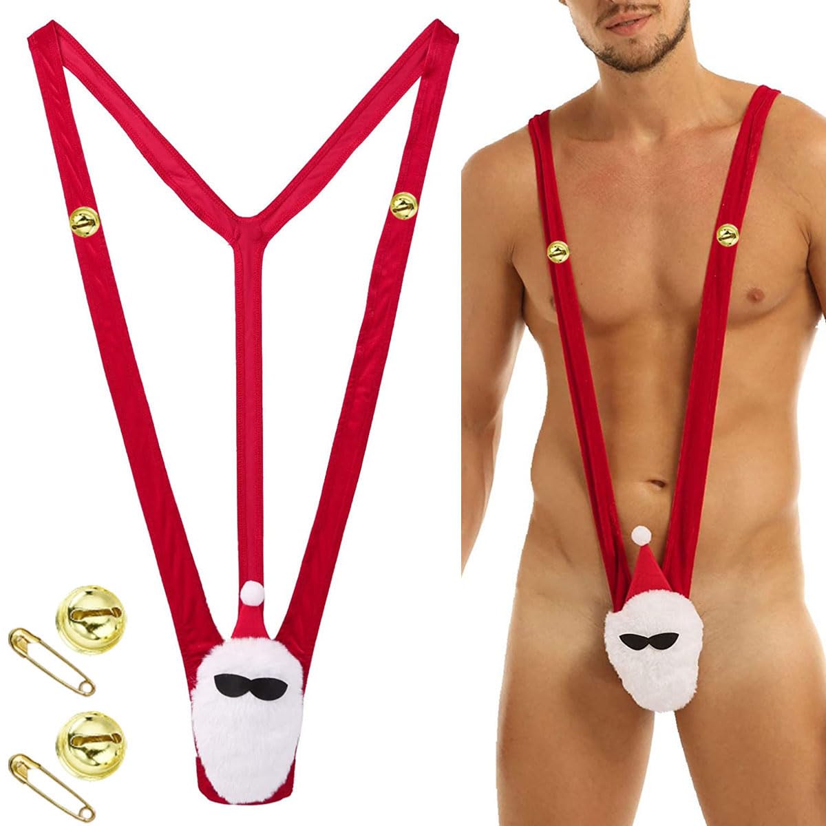 VemeFufu Mankini für Herren, sexy, lustig, Borat, Badeanzug, Kellner, Body, Weihnachten, Geburtstag, Witz, Geheimgeschenk für Herren, Freund, 01 Christmas Style A + Small Bell, Einheitsgröße