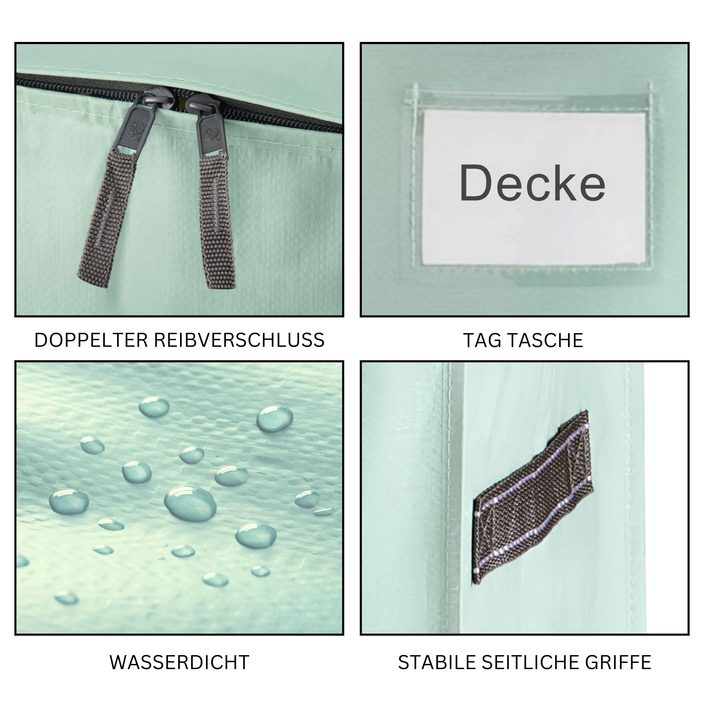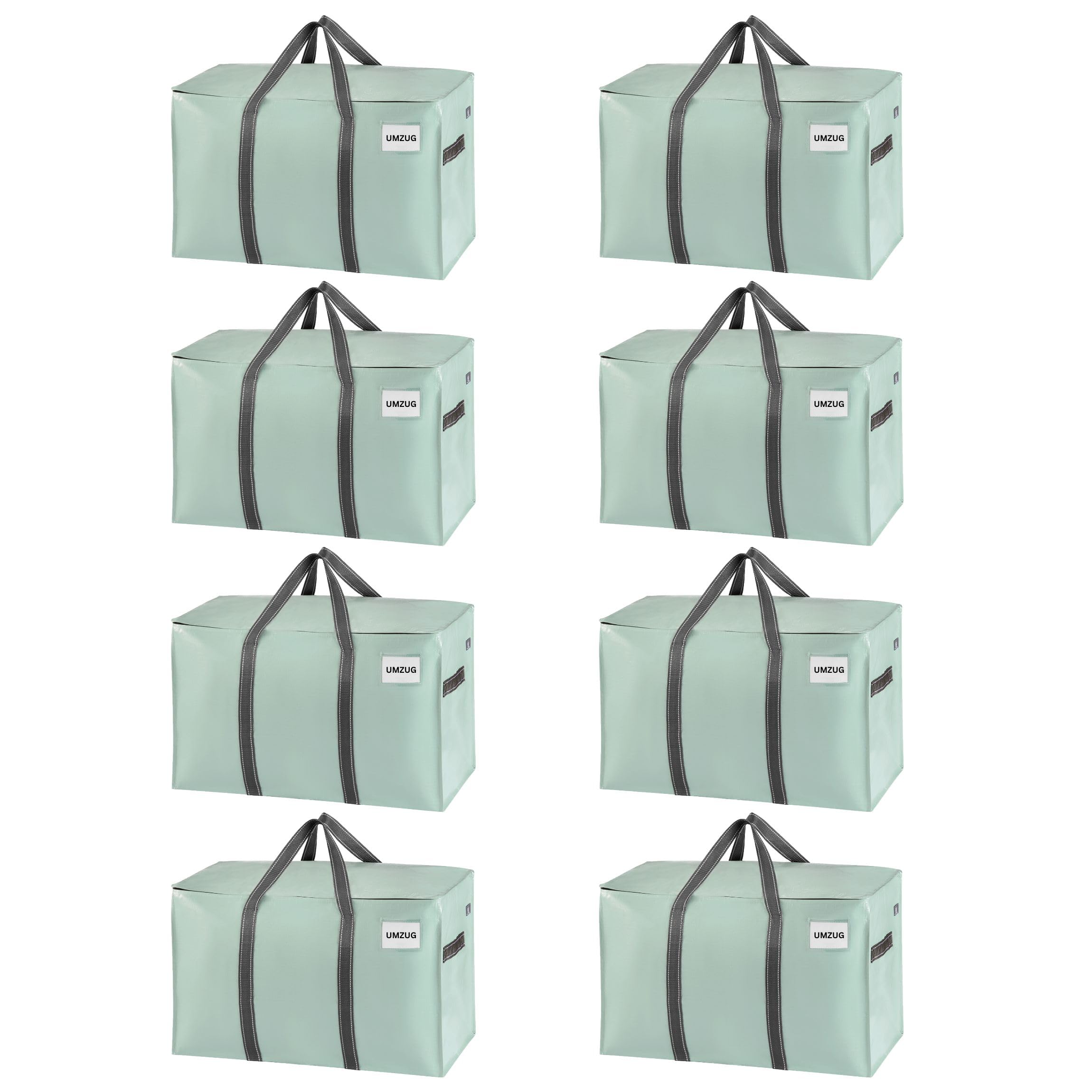 VENO 102 Liter Grosse Aufbewahrungstasche, Aufbewahrungsbox mit Deckel, Starke Griffe Umzugstaschen mit Reissverschlüssen, Alternative Umzugskartons, Faltbare Kleideraufbewahrung (Hellgrün, 8er Pack)