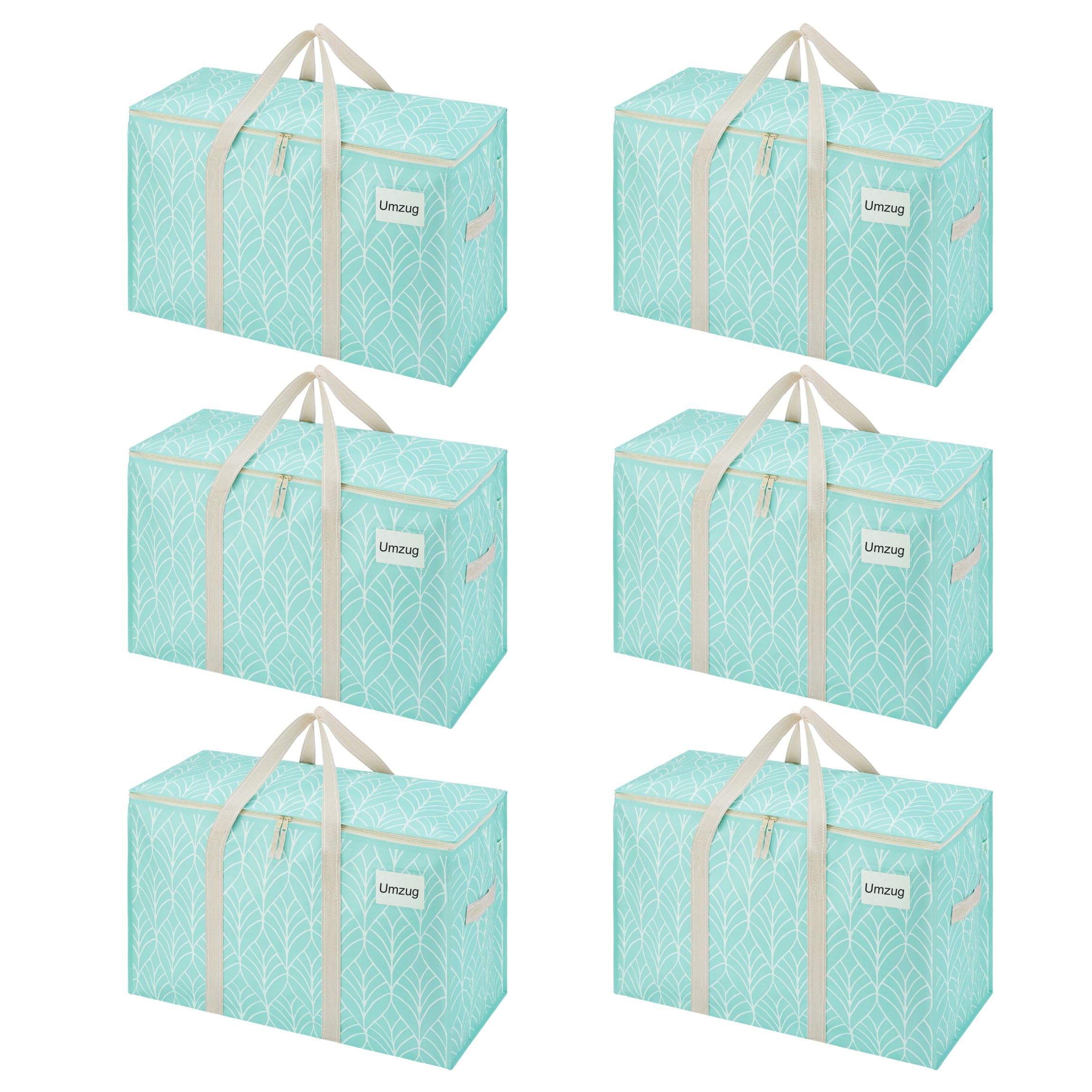VENO 102 Liter Grosse Aufbewahrungstasche, Aufbewahrungsbox mit Deckel, Starke Griffe Umzugstaschen mit Reissverschlüssen, Alternative Umzugskartons, Faltbare Kleideraufbewahrung (Immergrün, 6er Pack)