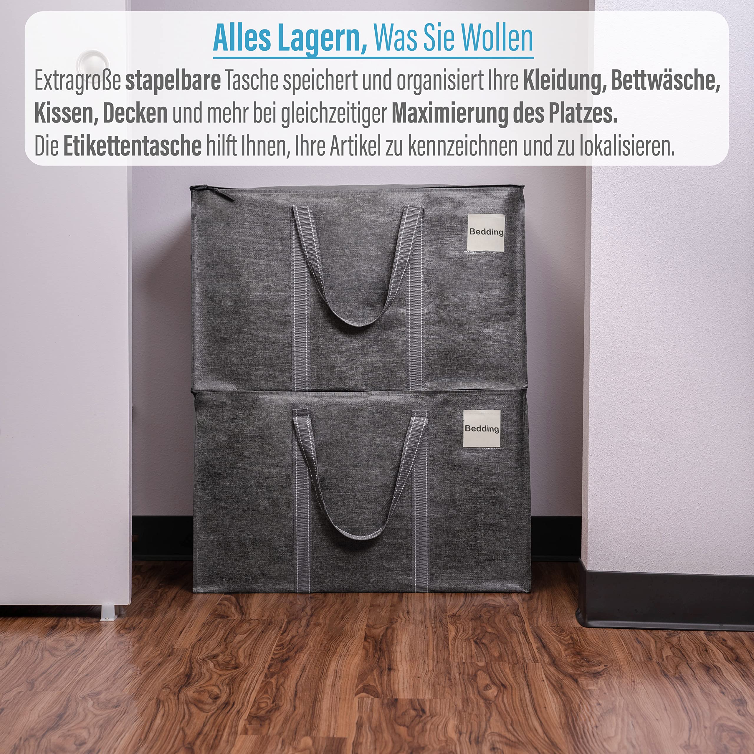 VENO 102 Liter Grosse Aufbewahrungstasche, Aufbewahrungsbox mit Deckel, Starke Griffe Umzugstaschen mit Reissverschlüssen, Alternative Umzugskartons, Faltbare Kleideraufbewahrung (Grau, 2er Pack)