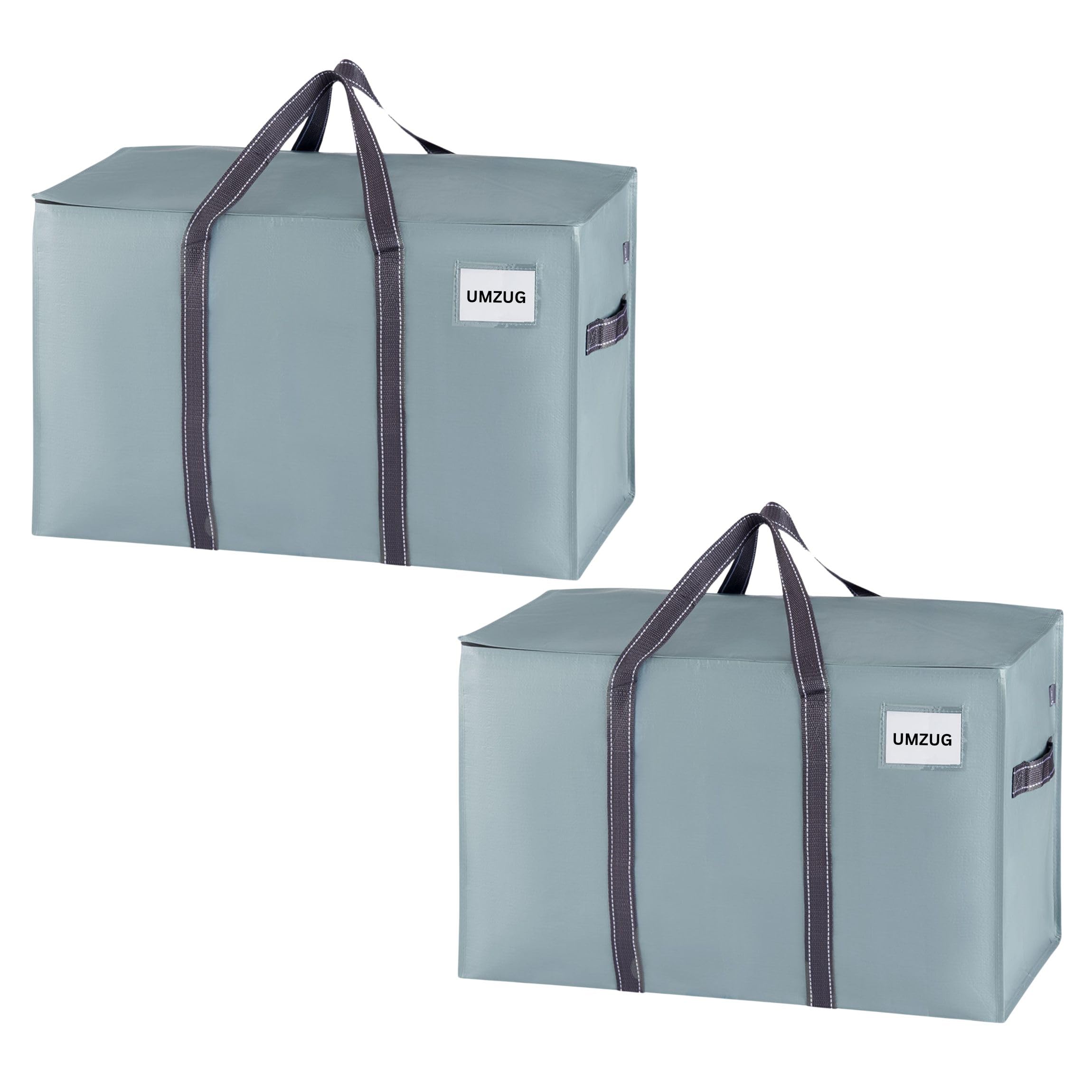 VENO 102 Liter Grosse Aufbewahrungstasche, Aufbewahrungsbox mit Deckel, Starke Griffe Umzugstaschen mit Reissverschlüssen, Alternative Umzugskartons, Faltbare Kleideraufbewahrung (Hellblau, 2er Pack)