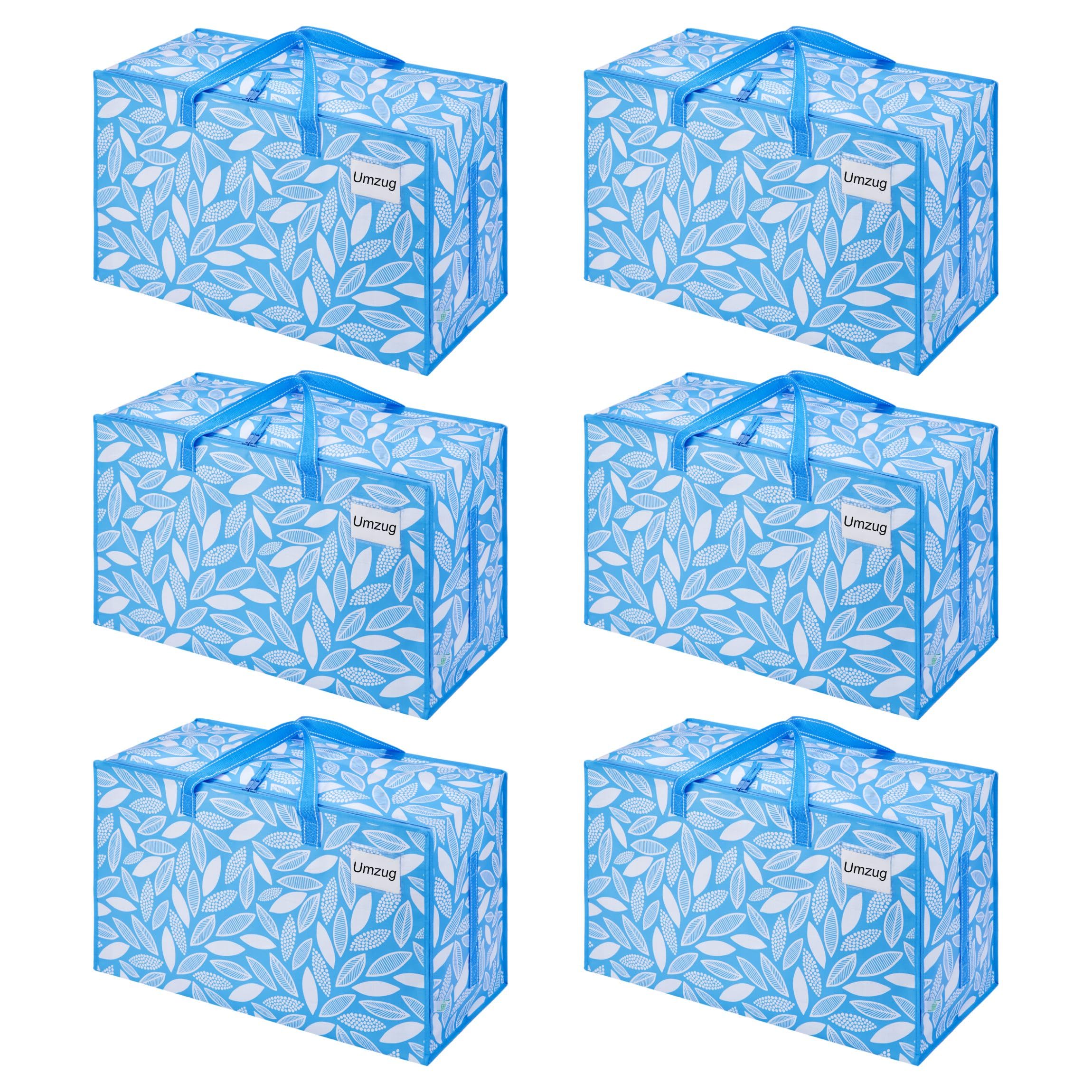 VENO 102 Liter Grosse Aufbewahrungstasche mit Deckel, Strapazierfähige Griffe und Reissverschlüssen für Umzug, Kleideraufbewahrung, Hausbedarf, wasserabweisend (Frühlingsbrise, 6er-Pack)