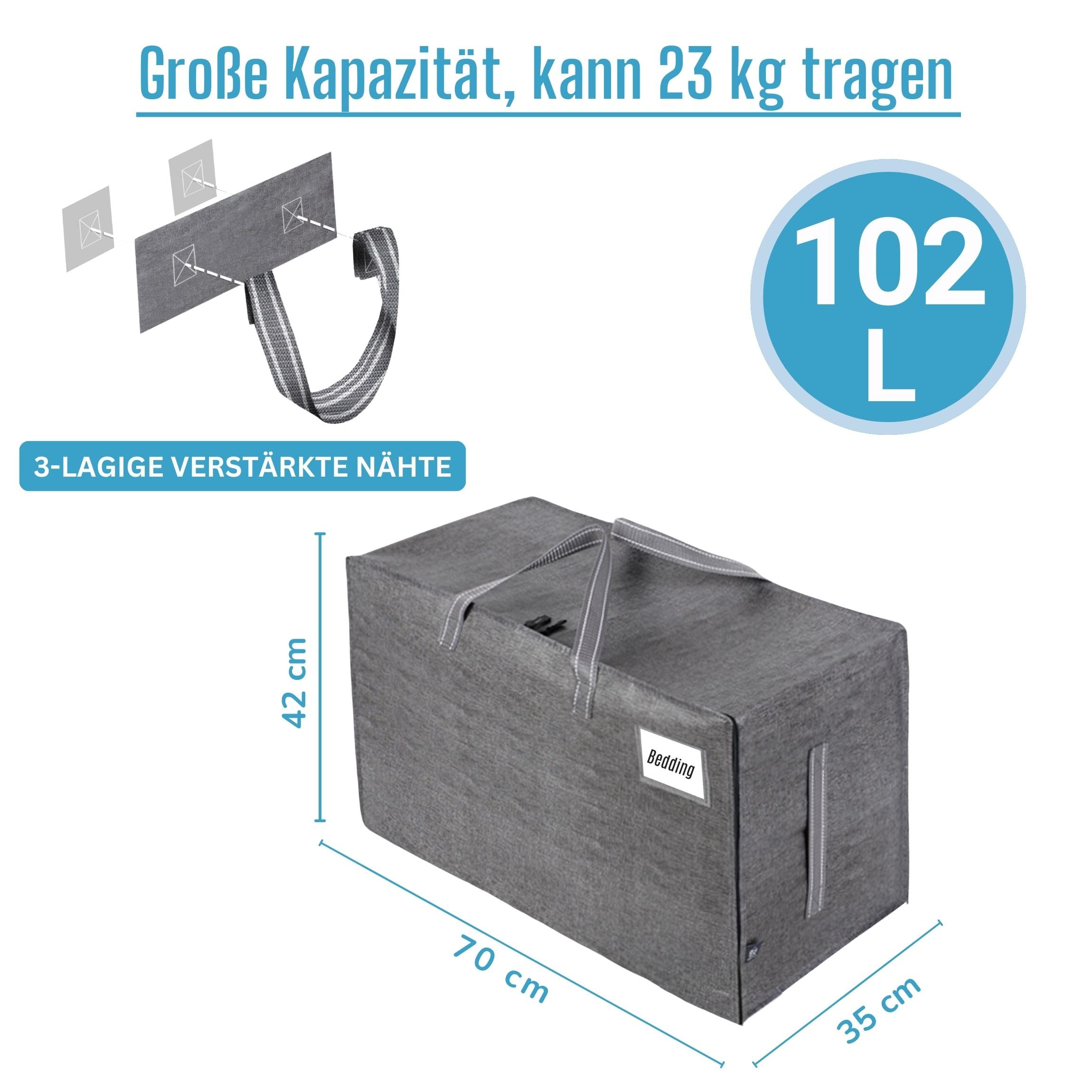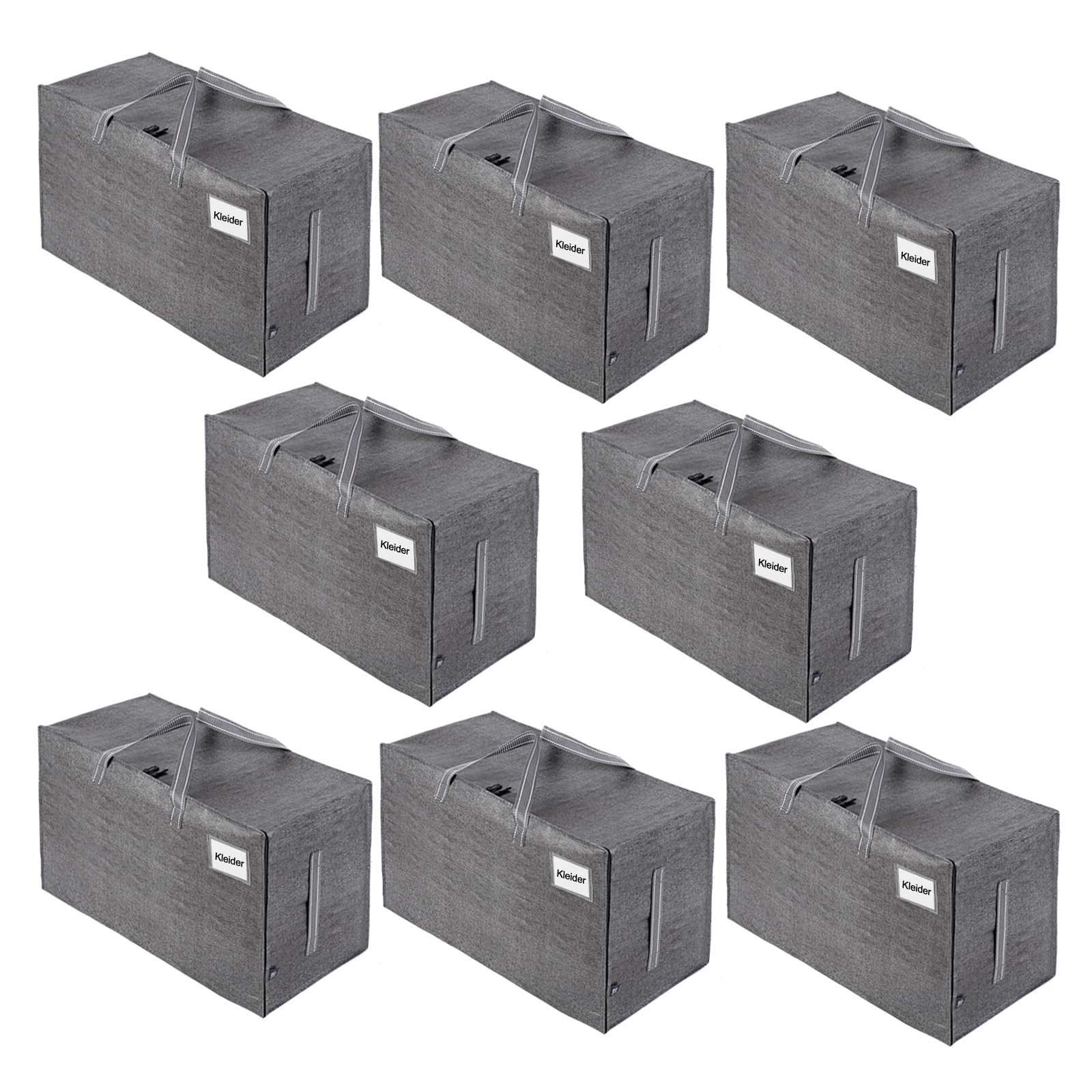 VENO 102 Liter Grosse Aufbewahrungstasche mit Deckel, Strapazierfähige Griffe und Reissverschlüssen für Umzug, Kleideraufbewahrung, Hausbedarf, wasserabweisend (Grau, 8er-Pack)