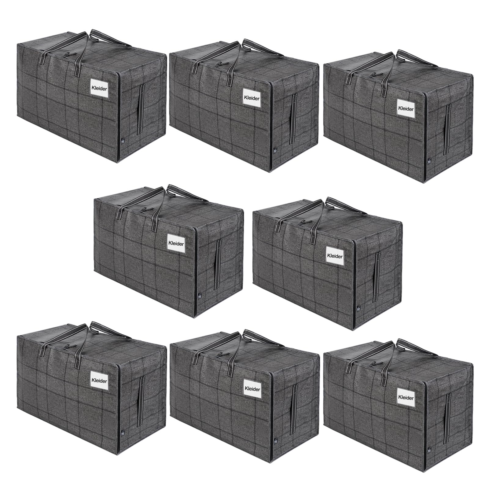 VENO 102 Liter Grosse Aufbewahrungstasche mit Deckel, Strapazierfähige Griffe und Reissverschlüssen für Umzug, Kleideraufbewahrung, Hausbedarf, wasserabweisend (Schwarzes Fenstertuch, 8er-Pack)