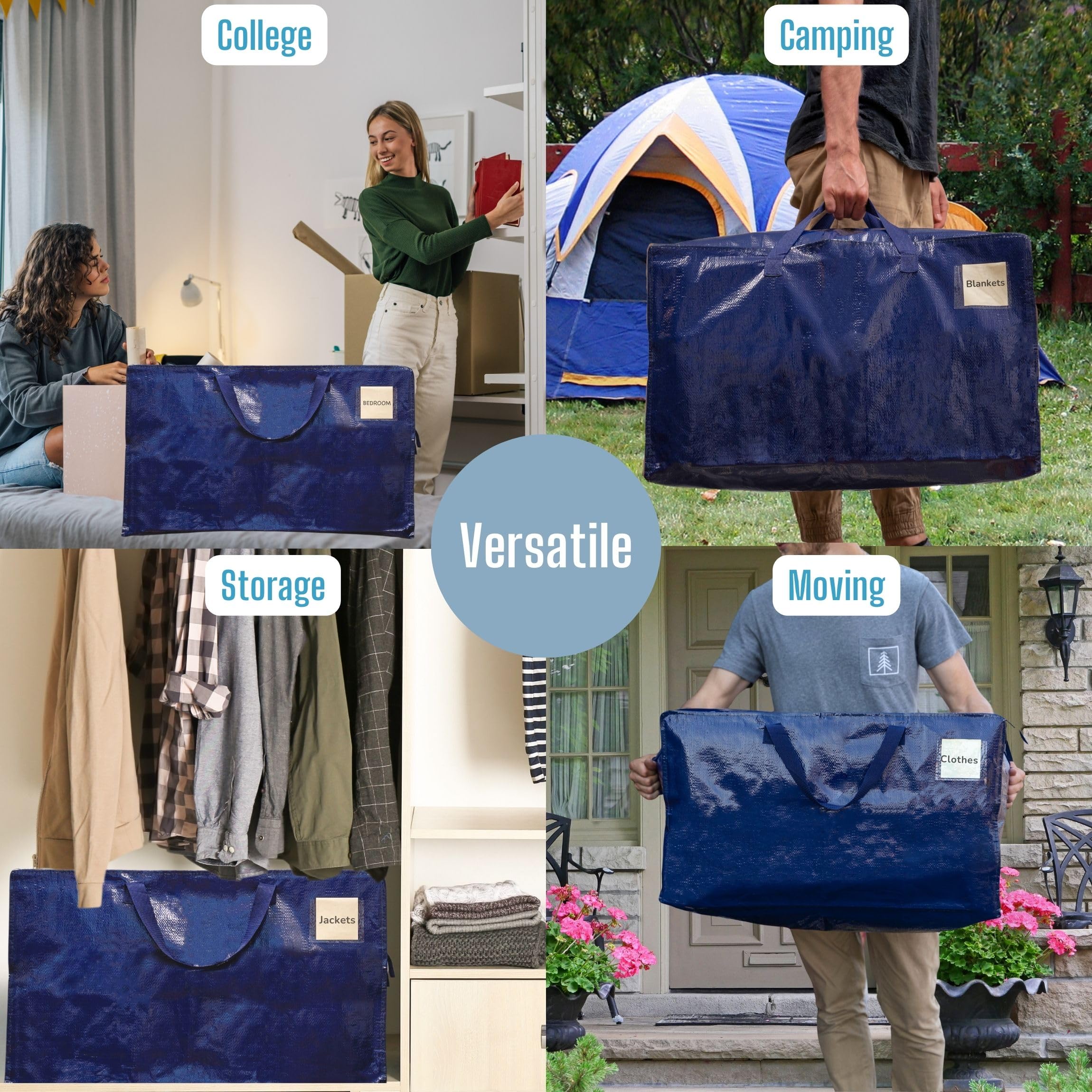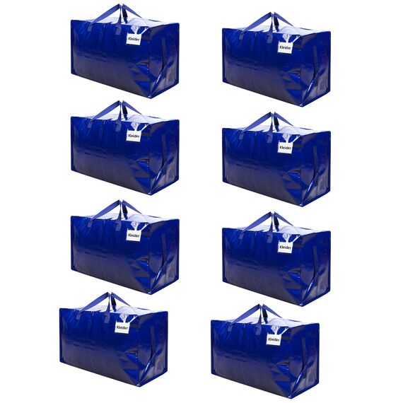 VENO 102 Liter Grosse Aufbewahrungstasche mit Deckel, Strapazierfähige Griffe und Reissverschlüssen für Umzug, Kleideraufbewahrung, Hausbedarf, wasserabweisend (Blau, 8er-Pack)