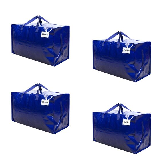 VENO 102 Liter Grosse Aufbewahrungstasche mit Deckel, Strapazierfähige Griffe und Reissverschlüssen für Umzug, Kleideraufbewahrung, Hausbedarf, wasserabweisend (Blau, 4er-Pack)