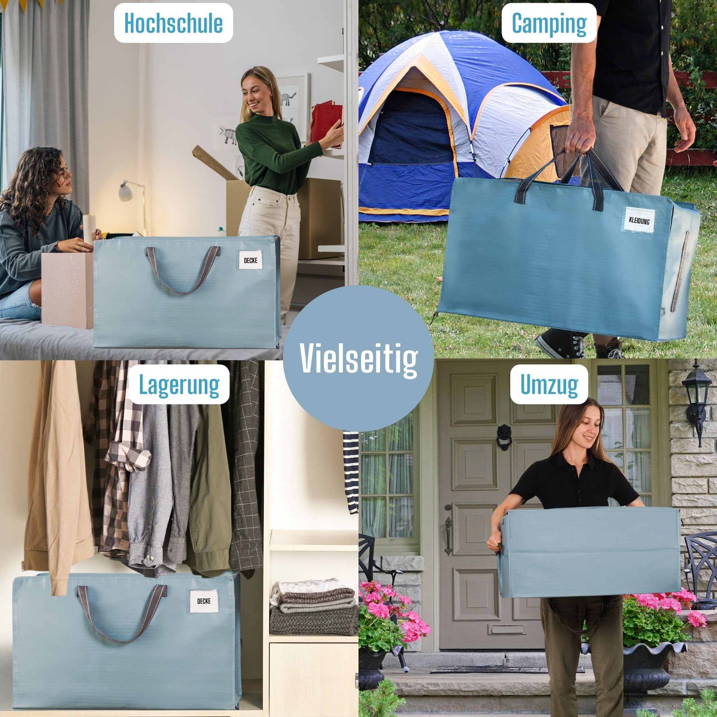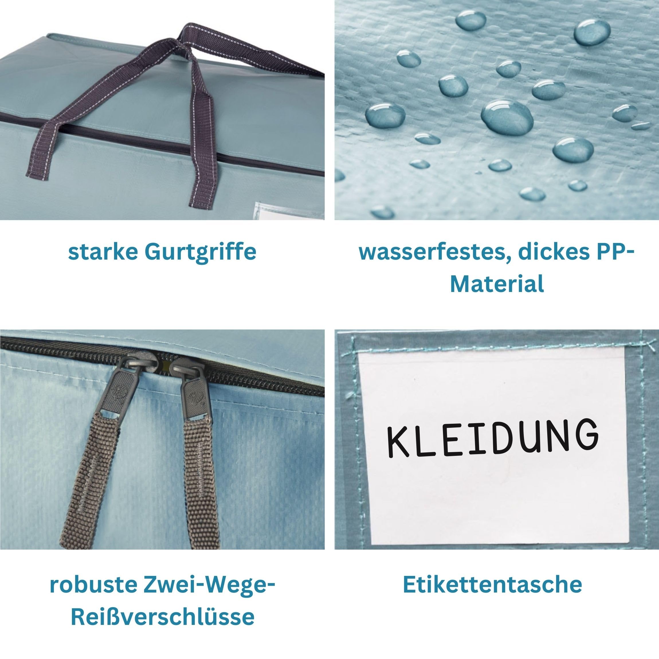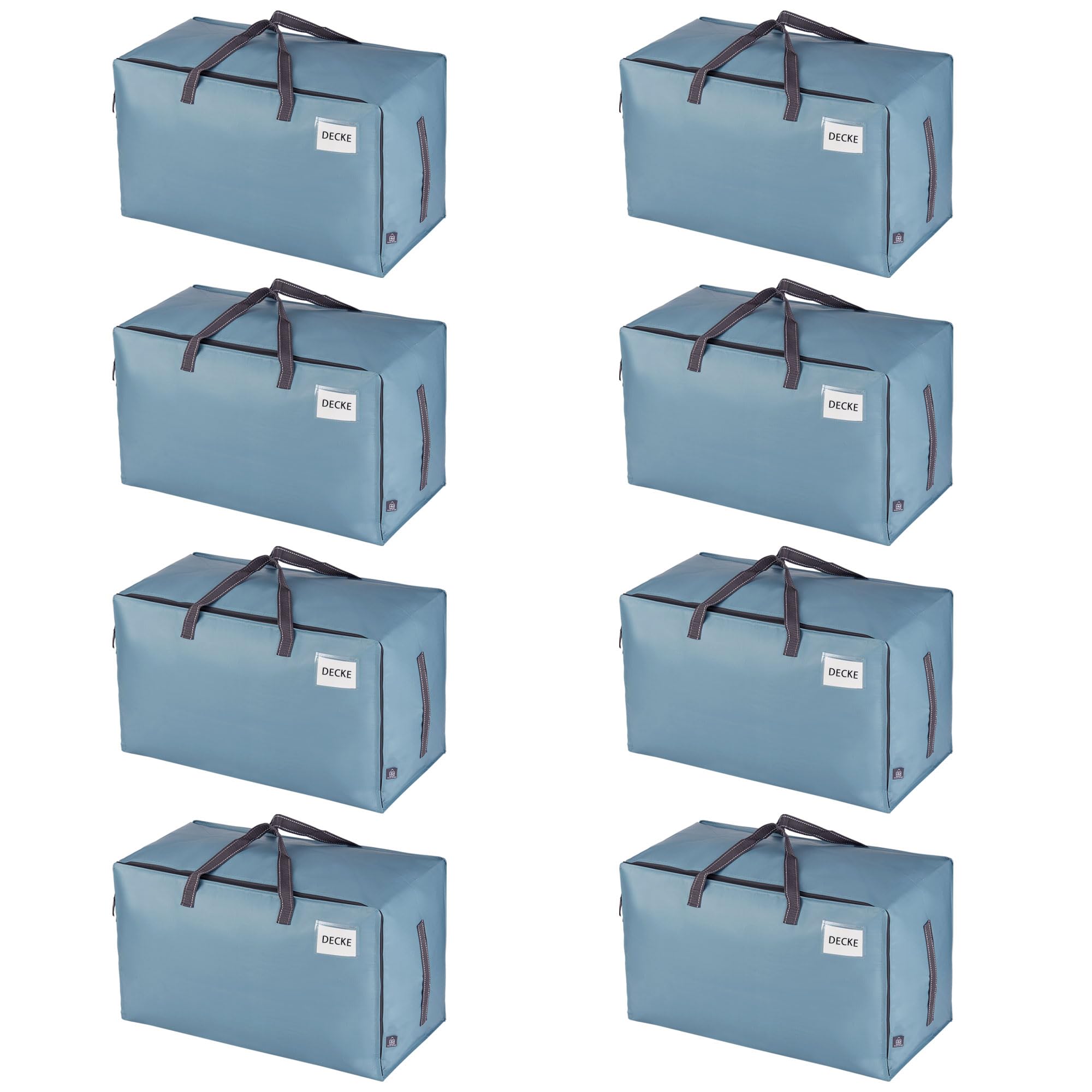 VENO 102 Liter Grosse Aufbewahrungstasche mit Deckel, Strapazierfähige Griffe und Reissverschlüssen für Umzug, Kleideraufbewahrung, Hausbedarf, wasserabweisend (Hellblau, 8er-Pack)