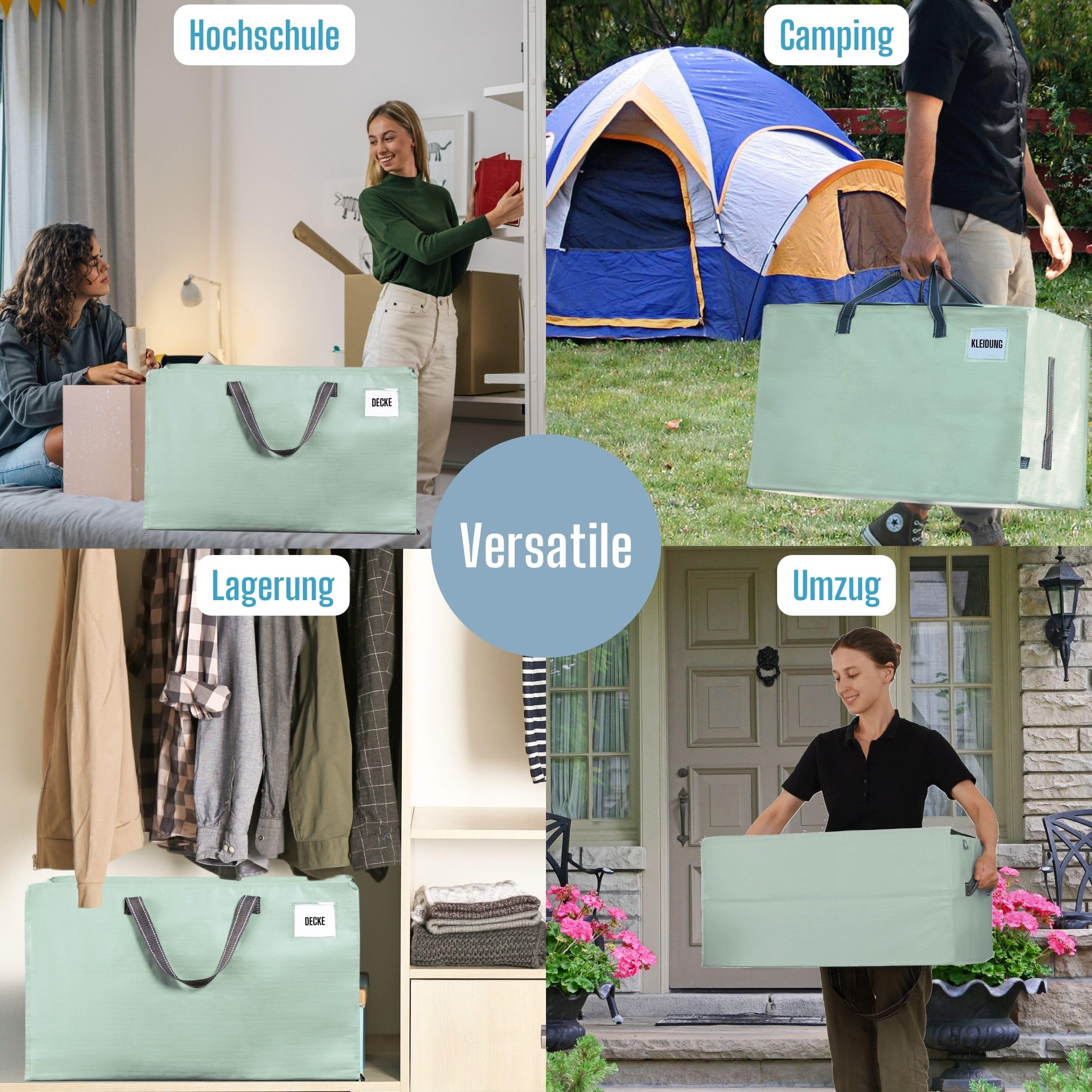 VENO 102 Liter Grosse Aufbewahrungstasche mit Deckel, Strapazierfähige Griffe und Reissverschlüssen für Umzug, Kleideraufbewahrung, Hausbedarf, wasserabweisend (Hellgrün, 10er-Pack)