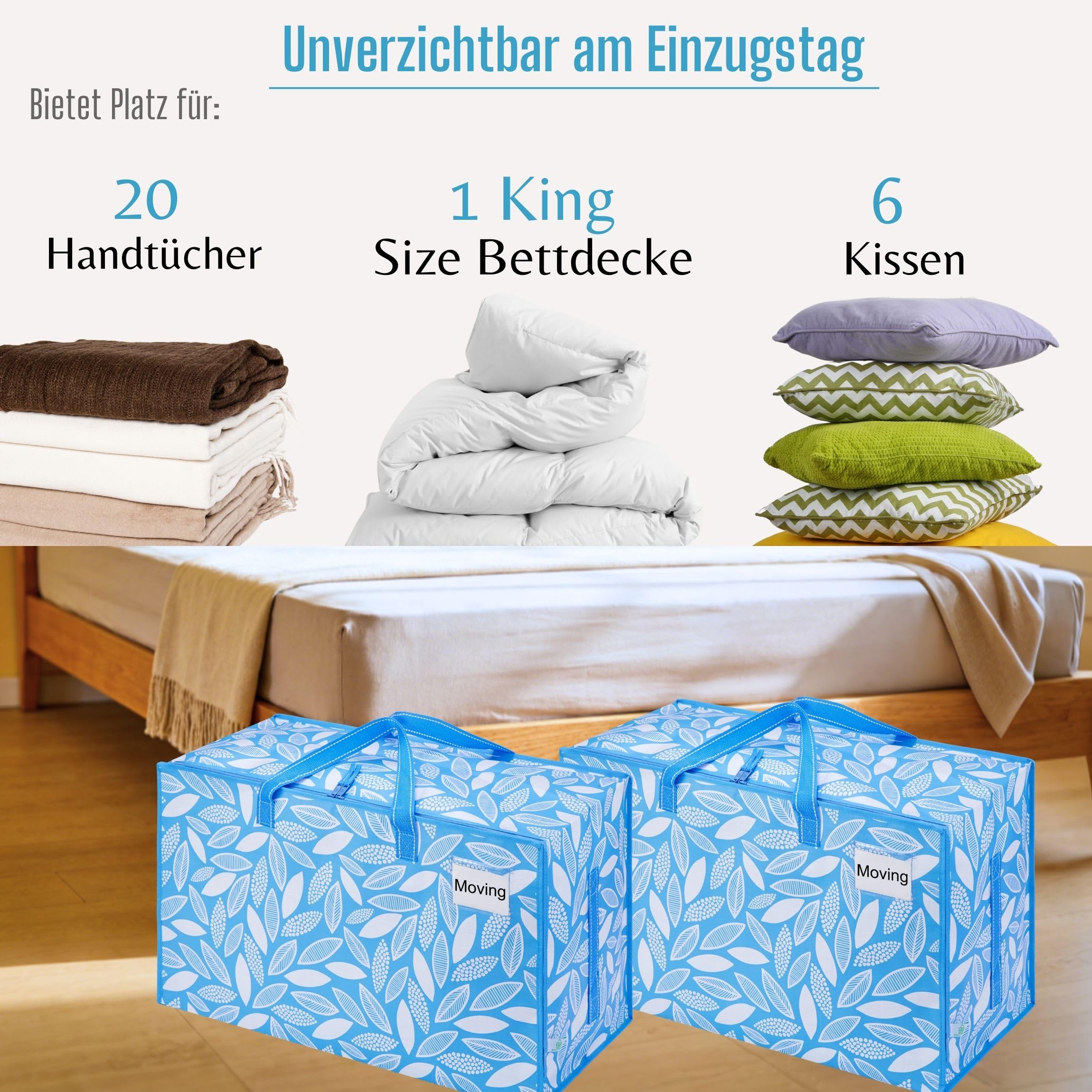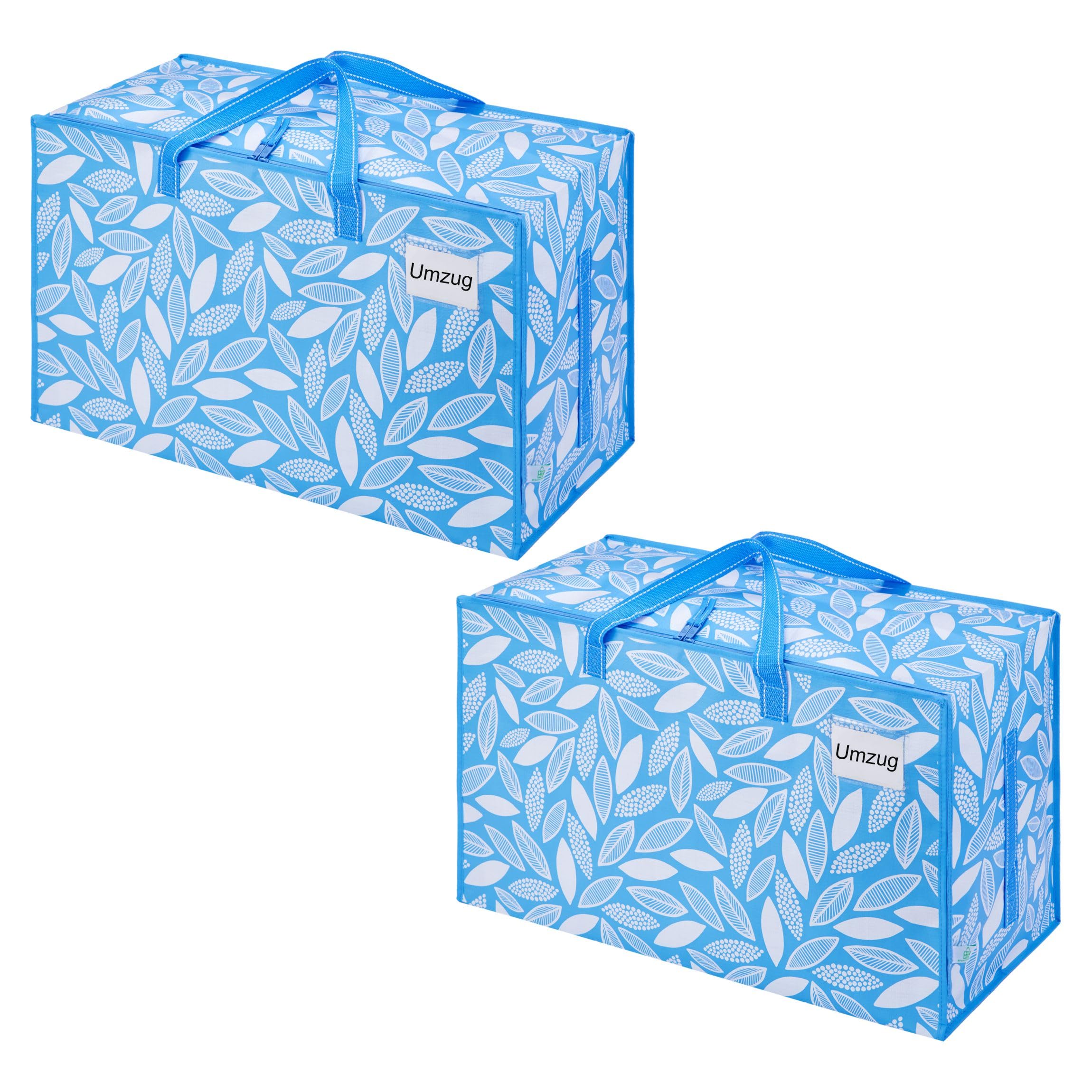 VENO 102 Liter Grosse Aufbewahrungstasche mit Deckel, Strapazierfähige Griffe und Reissverschlüssen für Umzug, Kleideraufbewahrung, Hausbedarf, wasserabweisend (Frühlingsbrise, 2er-Pack)