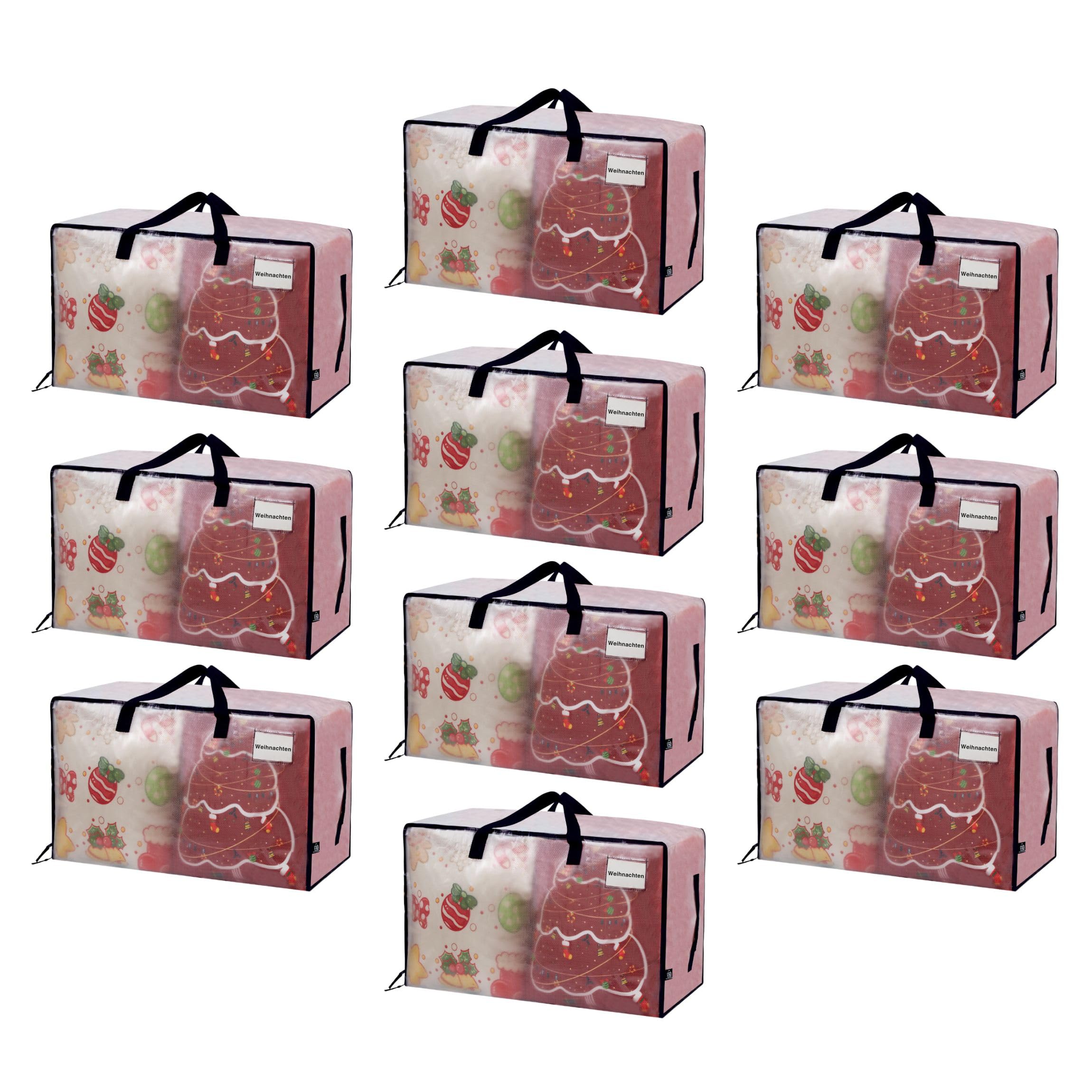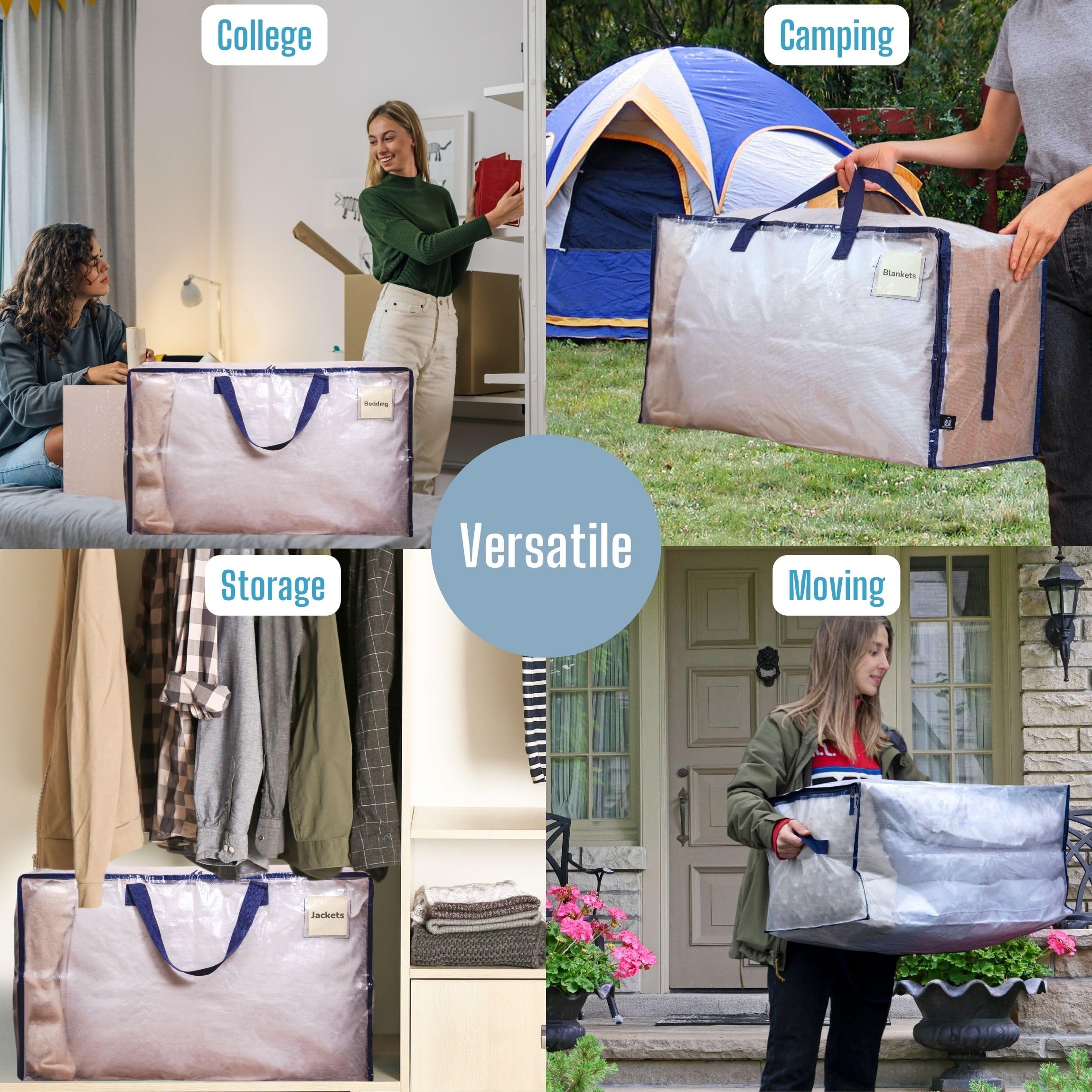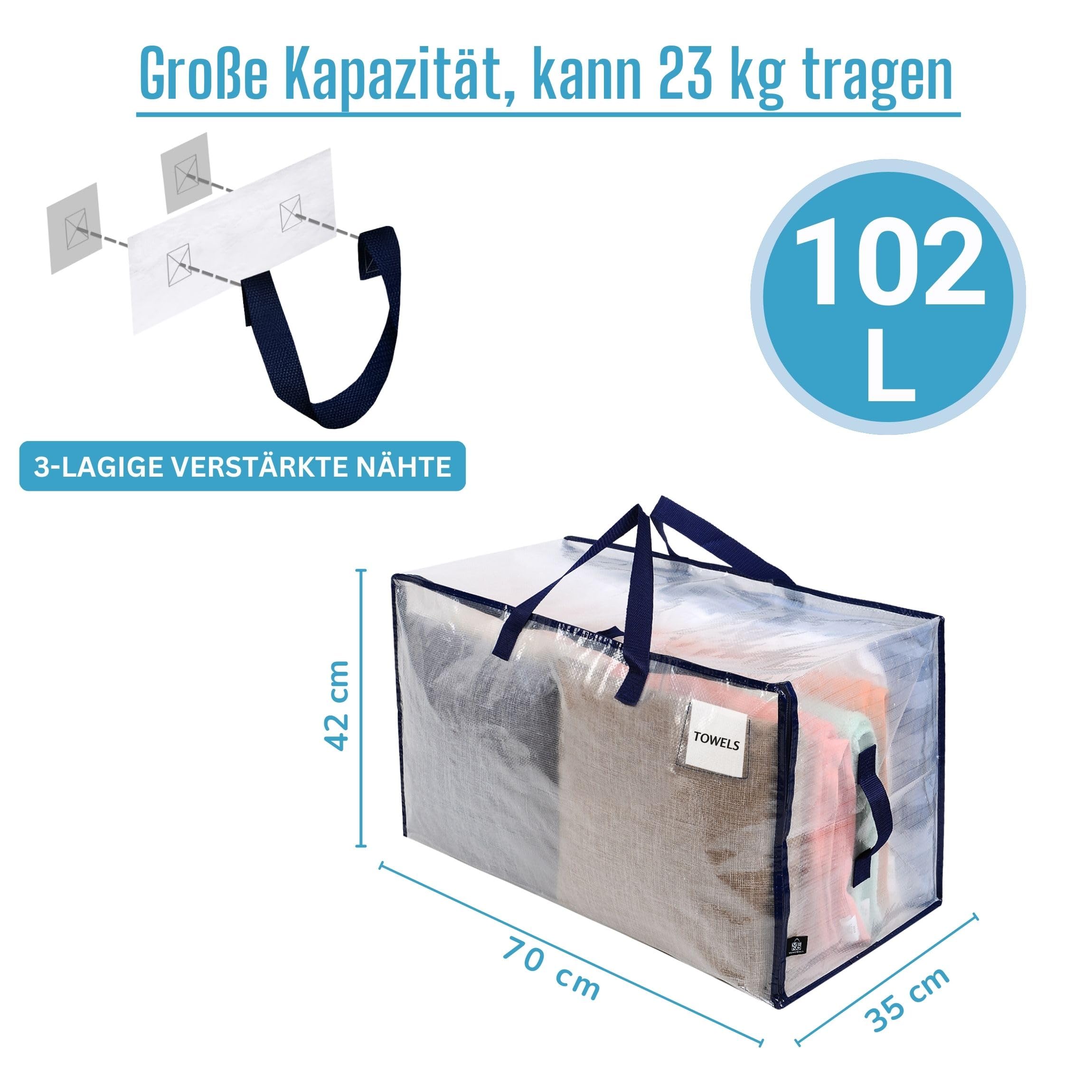 VENO 102 Liter Grosse Aufbewahrungstasche mit Deckel, Strapazierfähige Griffe und Reissverschlüssen für Umzug, Kleideraufbewahrung, Hausbedarf, wasserabweisend (Transparent, 10er-Pack)