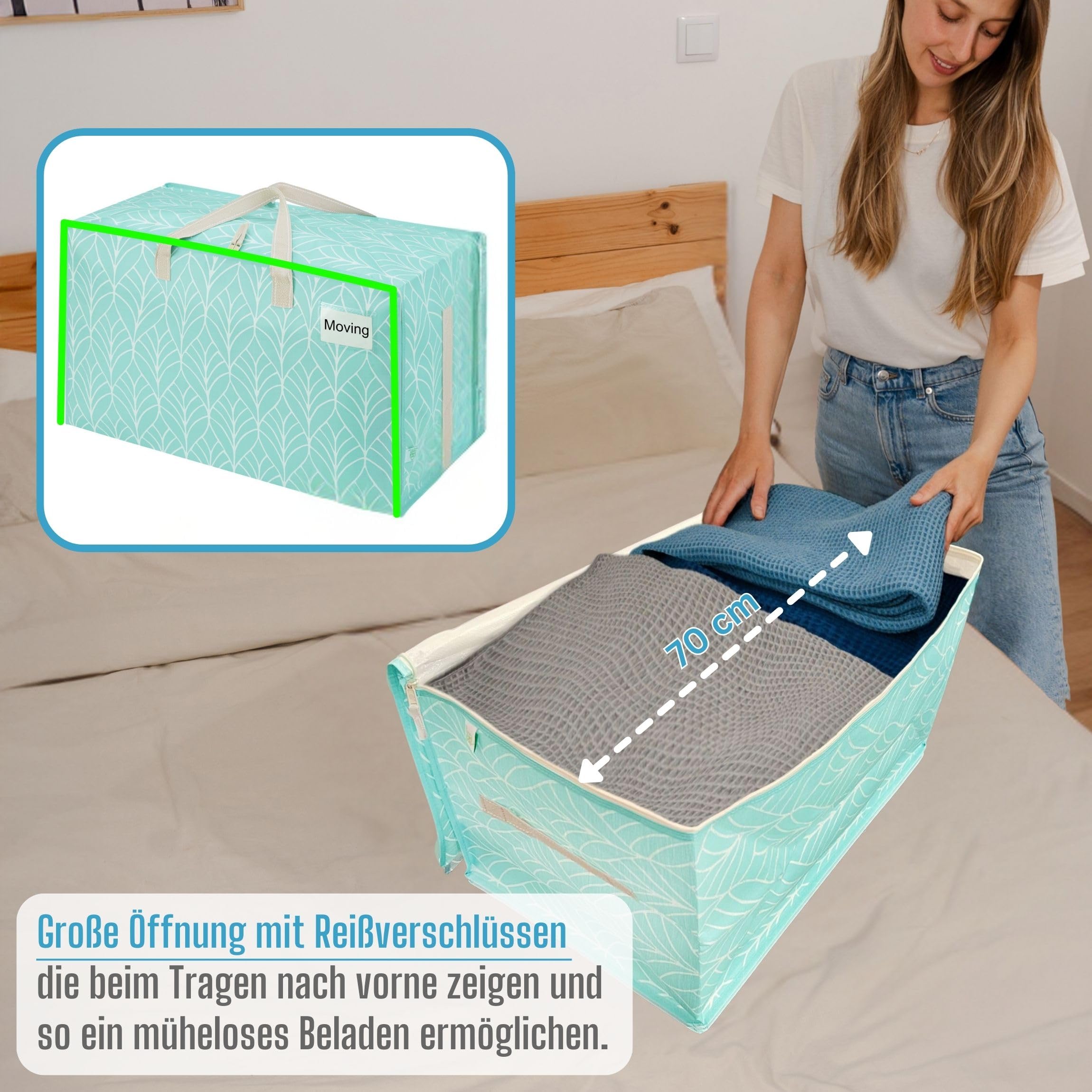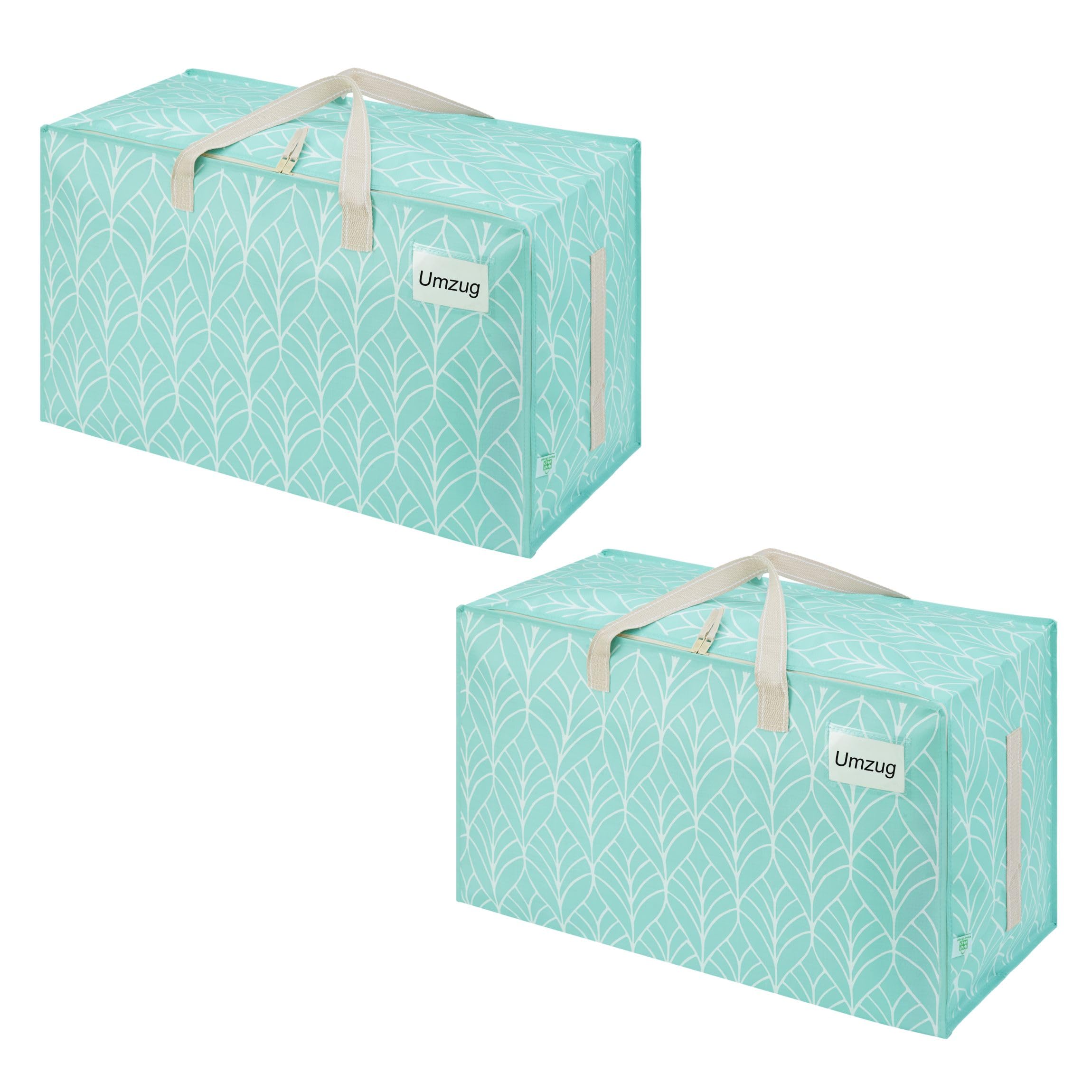 VENO 102 Liter Grosse Aufbewahrungstasche mit Deckel, Strapazierfähige Griffe und Reissverschlüssen für Umzug, Kleideraufbewahrung, Hausbedarf, wasserabweisend (Immergrün, 2er-Pack)