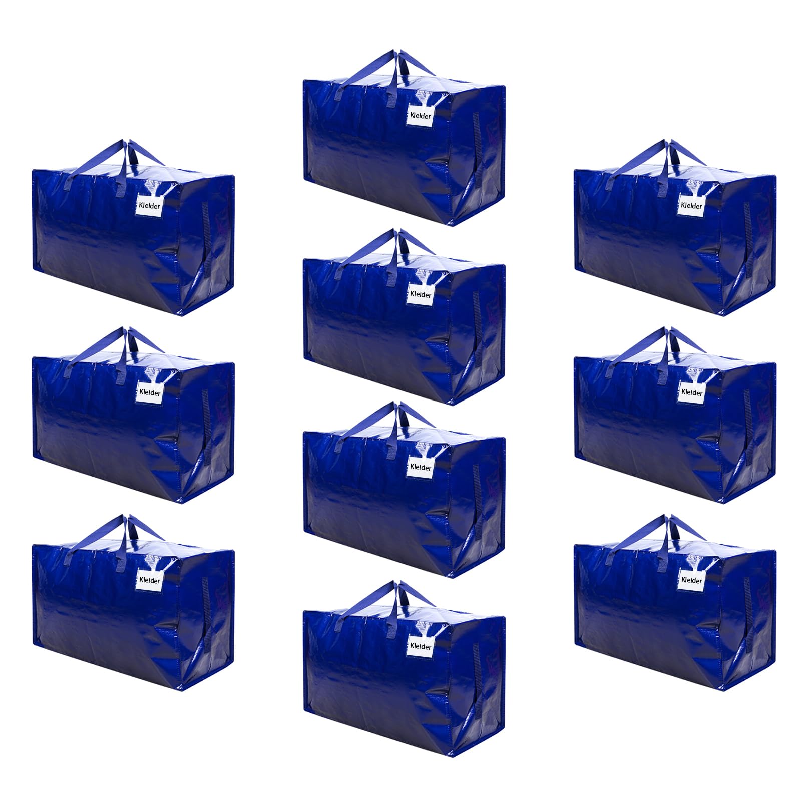 VENO 102 Liter Grosse Aufbewahrungstasche mit Deckel, Strapazierfähige Griffe und Reissverschlüssen für Umzug, Kleideraufbewahrung, Hausbedarf, wasserabweisend (Blau, 10er-Pack)