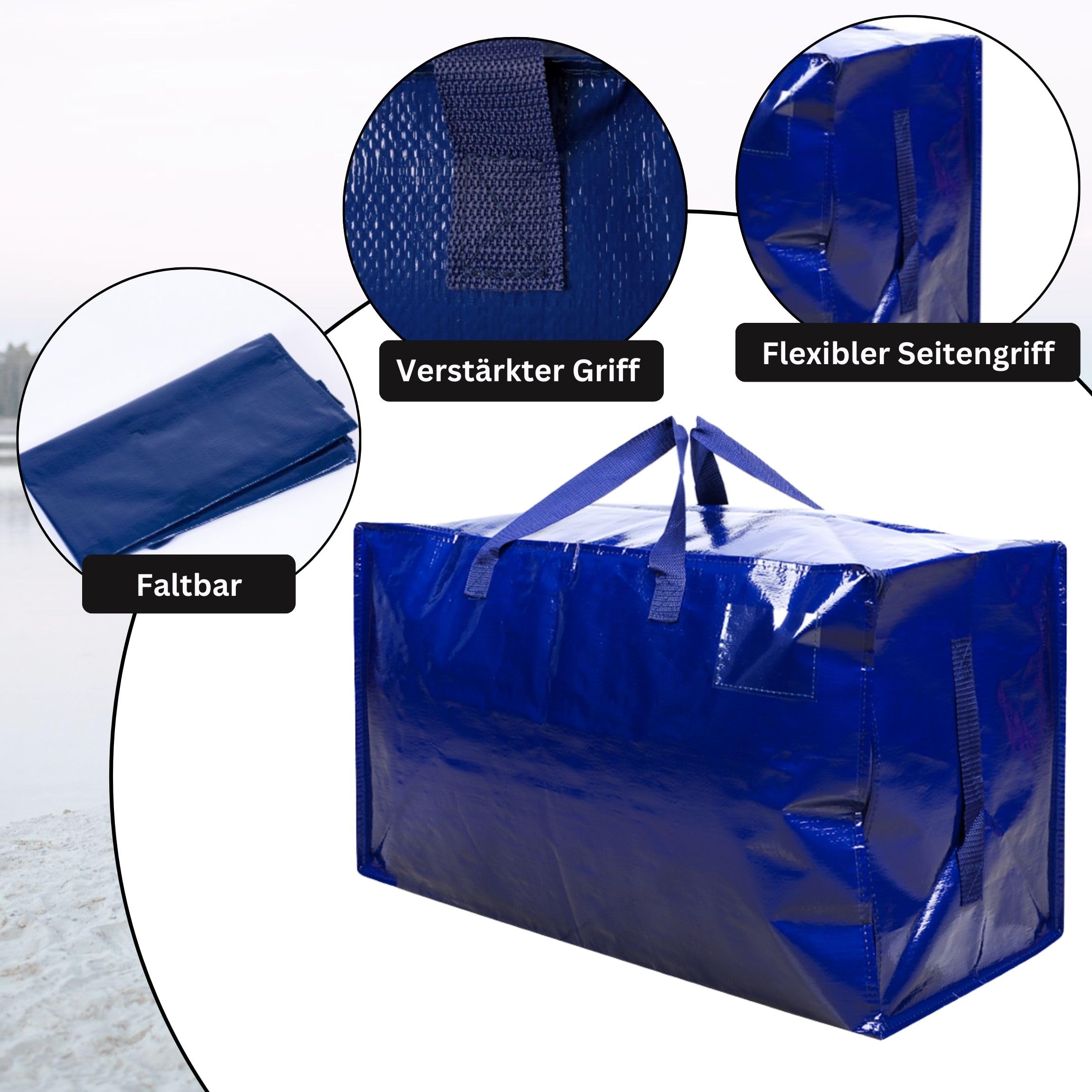 VENO Umweltverpflichtung: Unsere Mission und unser Engagement ist es, unsere Auswirkungen auf die Umwelt zu reduzieren, um eine sauberere und lebenswertere Zukunft zu schaffen. Der Stoff dieser Tasche besteht zu 85 % aus recycelten Materialien, die verhindern, dass sich Kunststoff in Ozeanen, Seen und Deponien bildet. Bitte verwenden Sie es so weit wie möglich, um unsere Umwelt zu schützen. Die stärksten Umzugstaschen – VENO extra grosse wiederverwendbare Umzugstaschen sind unglaublich langlebig. Diese Beutel bestehen aus sehr strapazierfähigem gewebtem Polypropylen (180 g). Die Griffe bestehen aus dickem und strapazierfähigem Polyester-Segeltuch. Extrem vielseitig: Diese Taschen können verwendet werden, um Kleidung, Bücher, Schuhe und Spielzeug aufzubewahren. Perfekt für die Aufbewahrung von Laken, Kissen und Decken. Bewahren Sie Weihnachtsdekorationen wie Lichter, Dekorationen und Ornamente auf. Diese Taschen sind fantastisch für unterwegs und auf Reisen. Sie schützen vor Kratzern und Beschädigungen beim Bewegen. Sie sind eine fantastische Alternative zu traditionellen Wäschekörben und perfekt für Studenten, Familien, die in Wohnungen leben, und denken Sie daran, dass diese Taschen viele Kleidung aufnehmen können. Durchgehender Reissverschluss und transparente Tasche: Starker Reissverschluss oben bedeckt die gesamte Länge der Tasche, wodurch sie unglaublich einfach zu be- und entladen ist. Die strapazierfähigen Tragegriffe aus Polyester-Segeltuch können bis zu 25 kg tragen. Die durchsichtige Tasche verleiht Ihren Schildern ein ordentliches Aussehen.