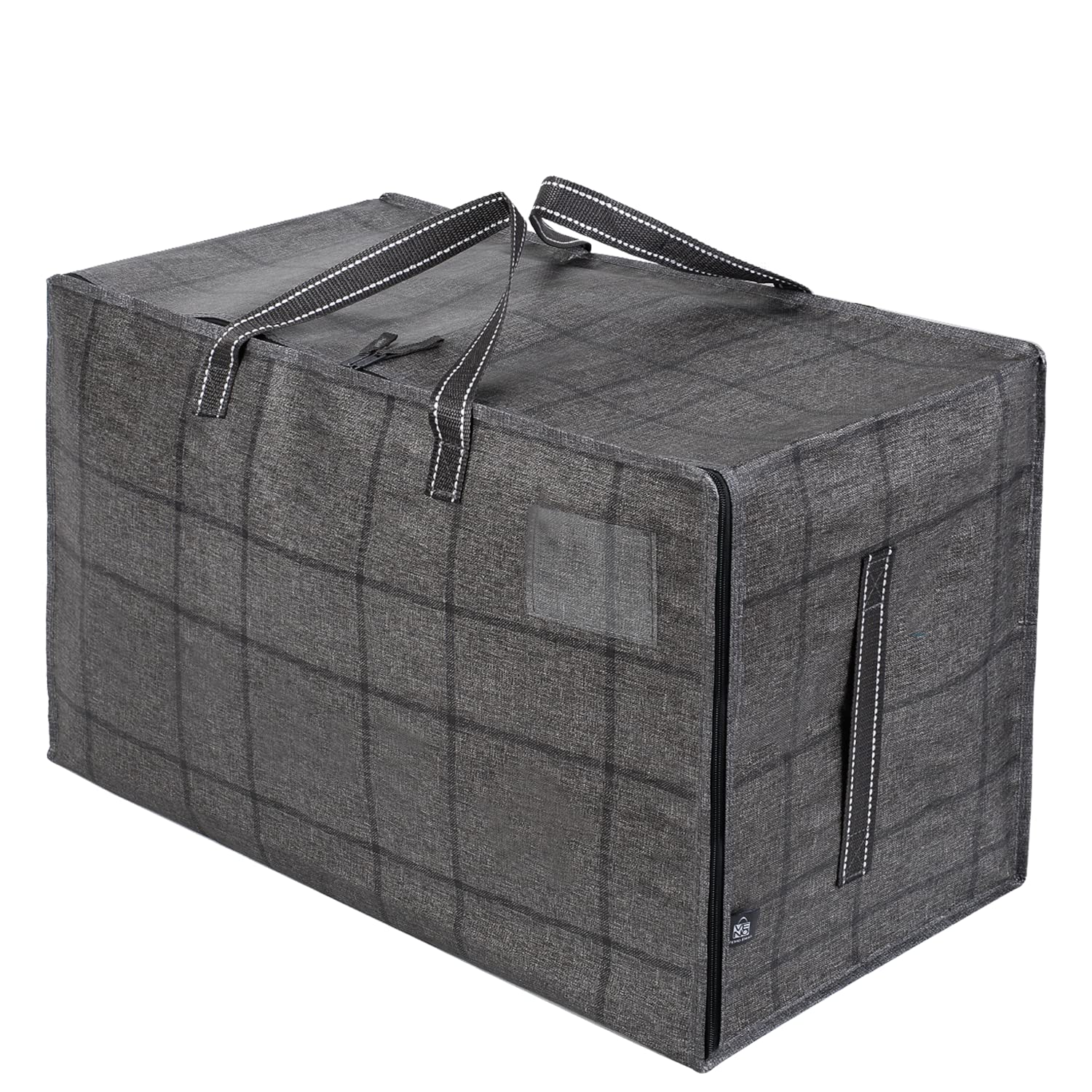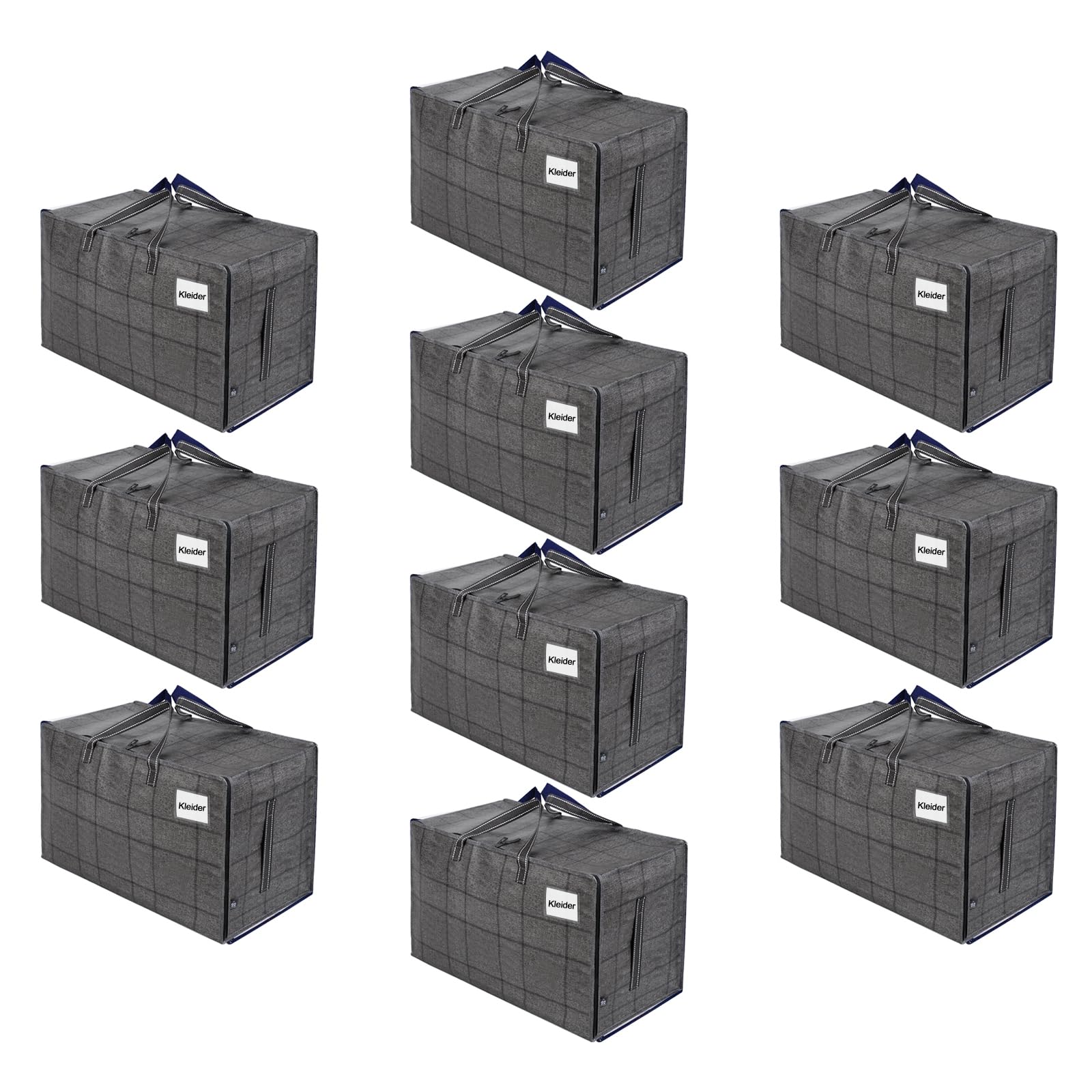 VENO 10er-Pack strapazierfähige grosse Aufbewahrungstasche mit Deckel, starke Griffe und Reissverschlüssen für Umzug, Kleideraufbewahrung, Hausbedarf, wasserabweisend (Schwarzes Fenstertuch, 10er-Pack)