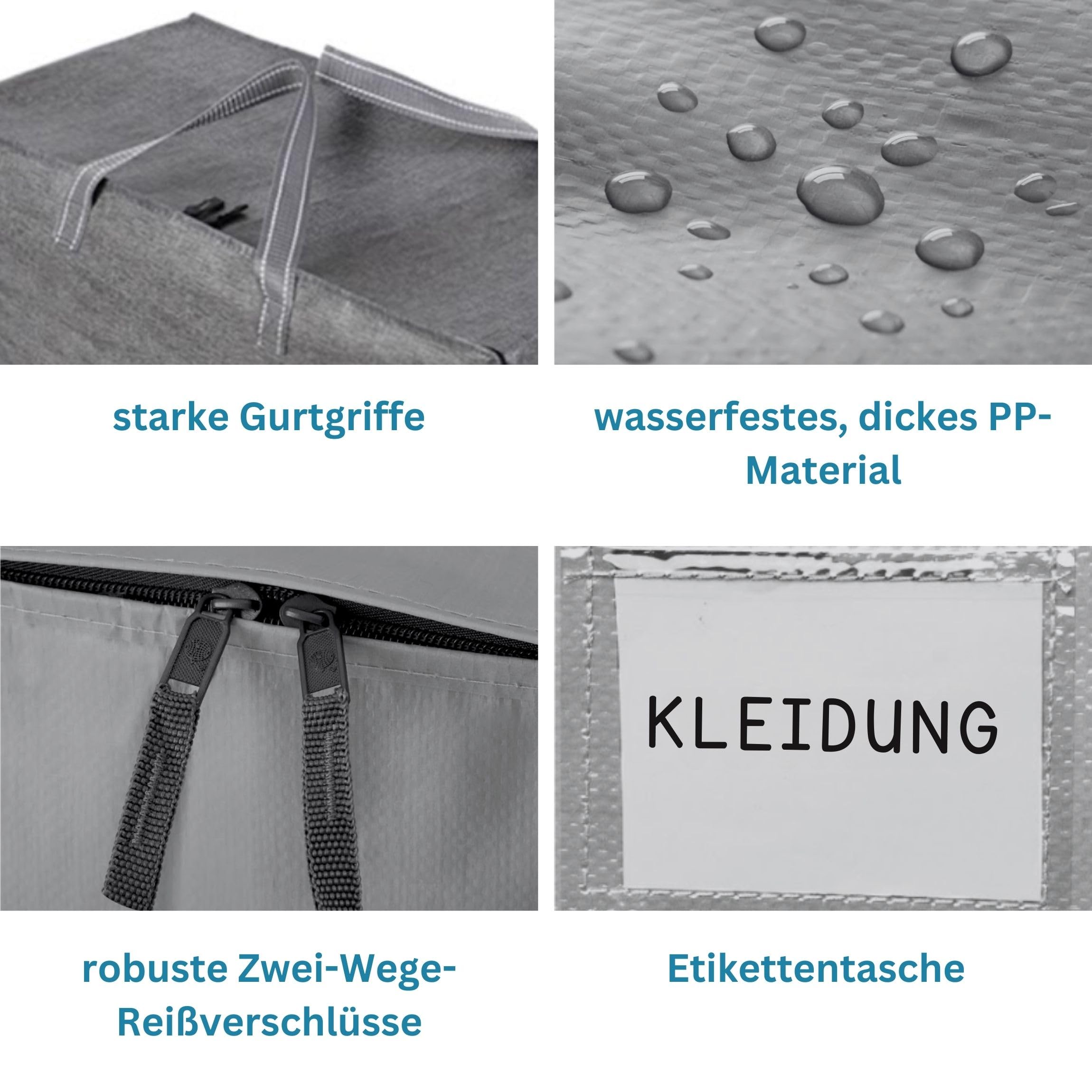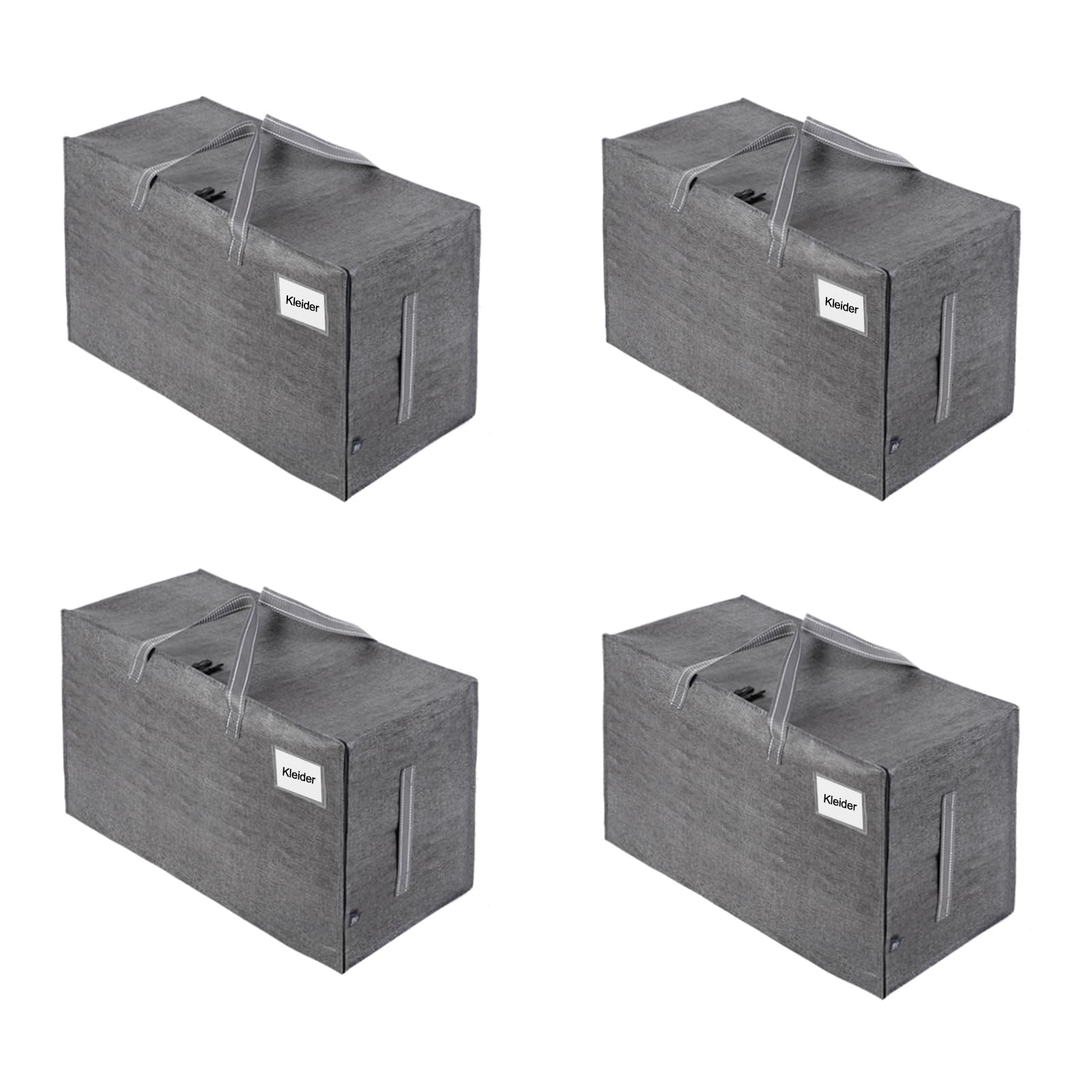 VENO 102 Liter Grosse Aufbewahrungstasche mit Deckel, Strapazierfähige Griffe und Reissverschlüssen für Umzug, Kleideraufbewahrung, Hausbedarf, wasserabweisend (Grau, 4er-Pack)