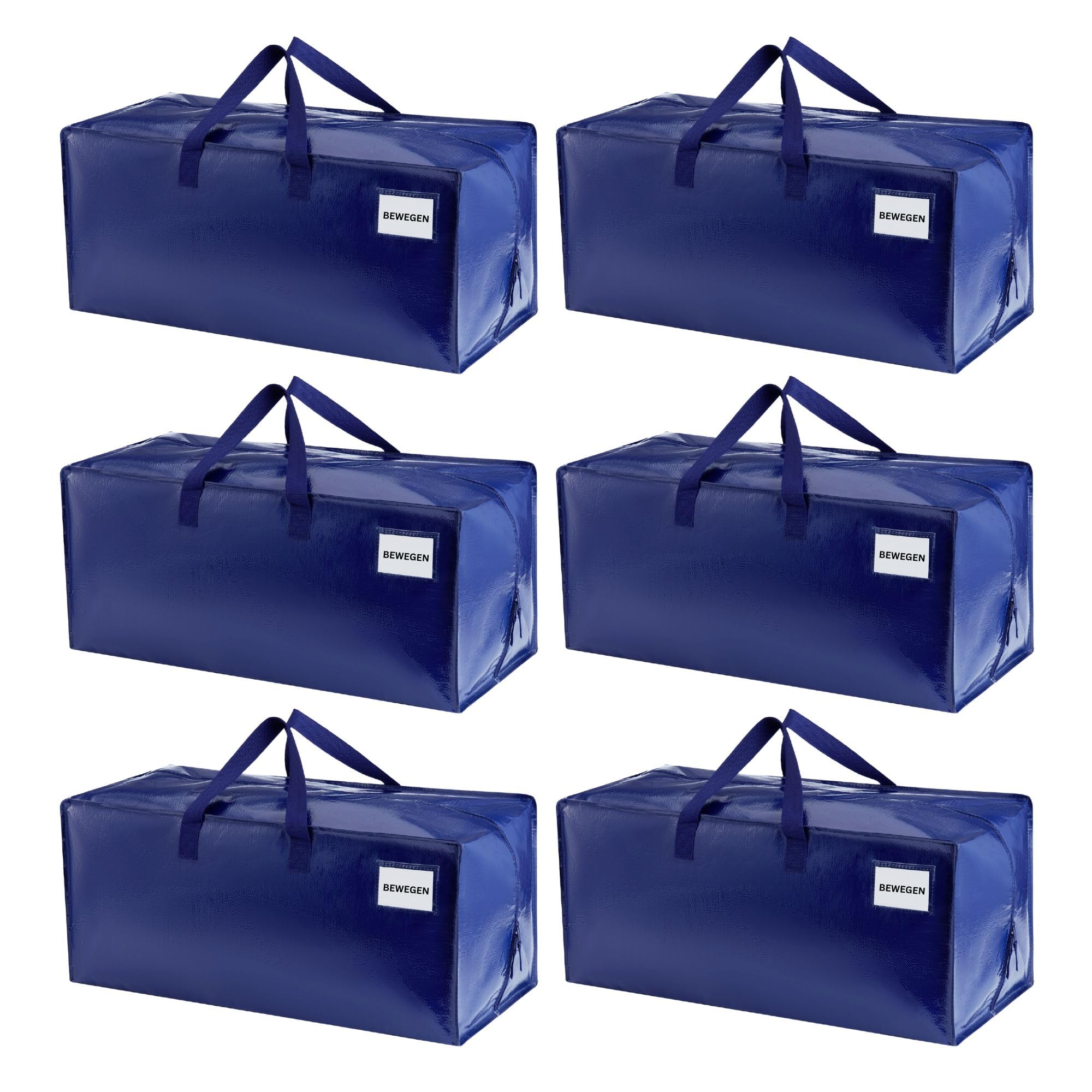 VENO 87 Liter extra grosse Umzugstaschen mit Rucksackgurten, Umzugshelfer, Starke Griffe und Reissverschlüsse, Kleideraufbewahrung, Wäschesäcke, wiederverwendbar und nachhaltig (Blau, 6er-Pack)