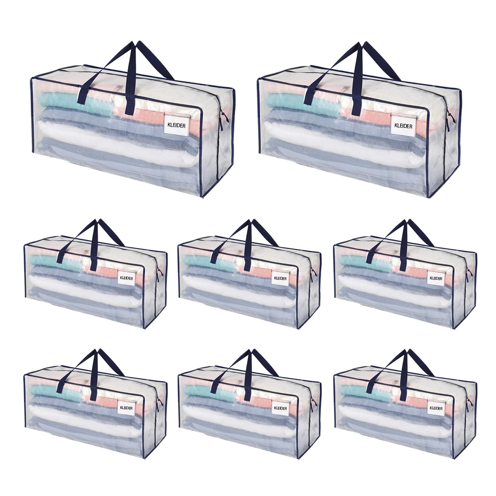 VENO 87 Liter extra grosse Umzugstaschen mit Rucksackgurten, Umzugshelfer, starke Griffe und Reissverschlüsse, Kleideraufbewahrung, Wäschesäcke, wiederverwendbar und nachhaltig (Transparent, 8er-Pack)
