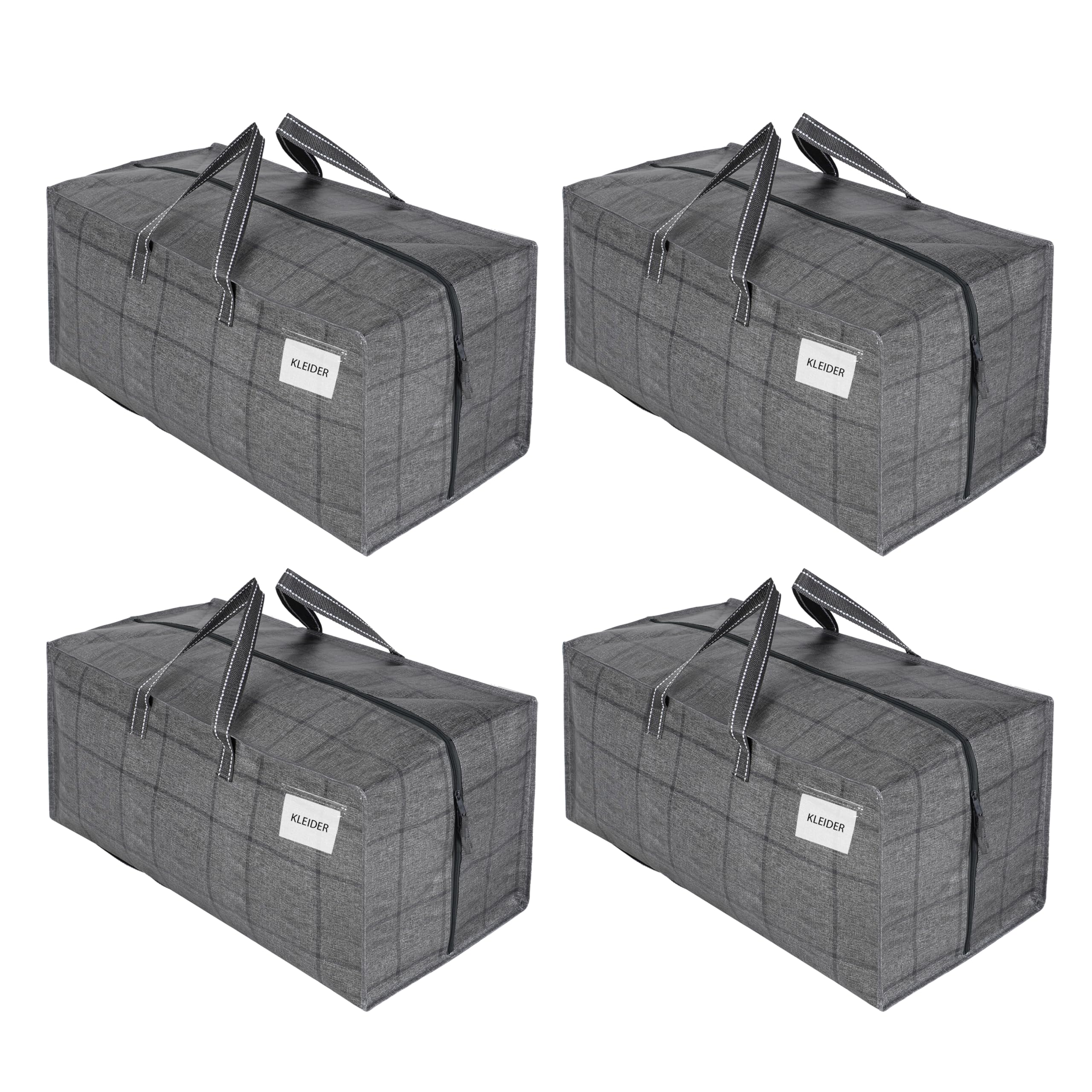 VENO 87 Liter extra grosse Umzugstaschen mit Rucksackgurten, Umzugshelfer, starke Griffe und Reissverschlüsse, Kleideraufbewahrung, Wäschesäcke, wiederverwendbar (Schwarzes Fenstertuch, 4er-Pack)