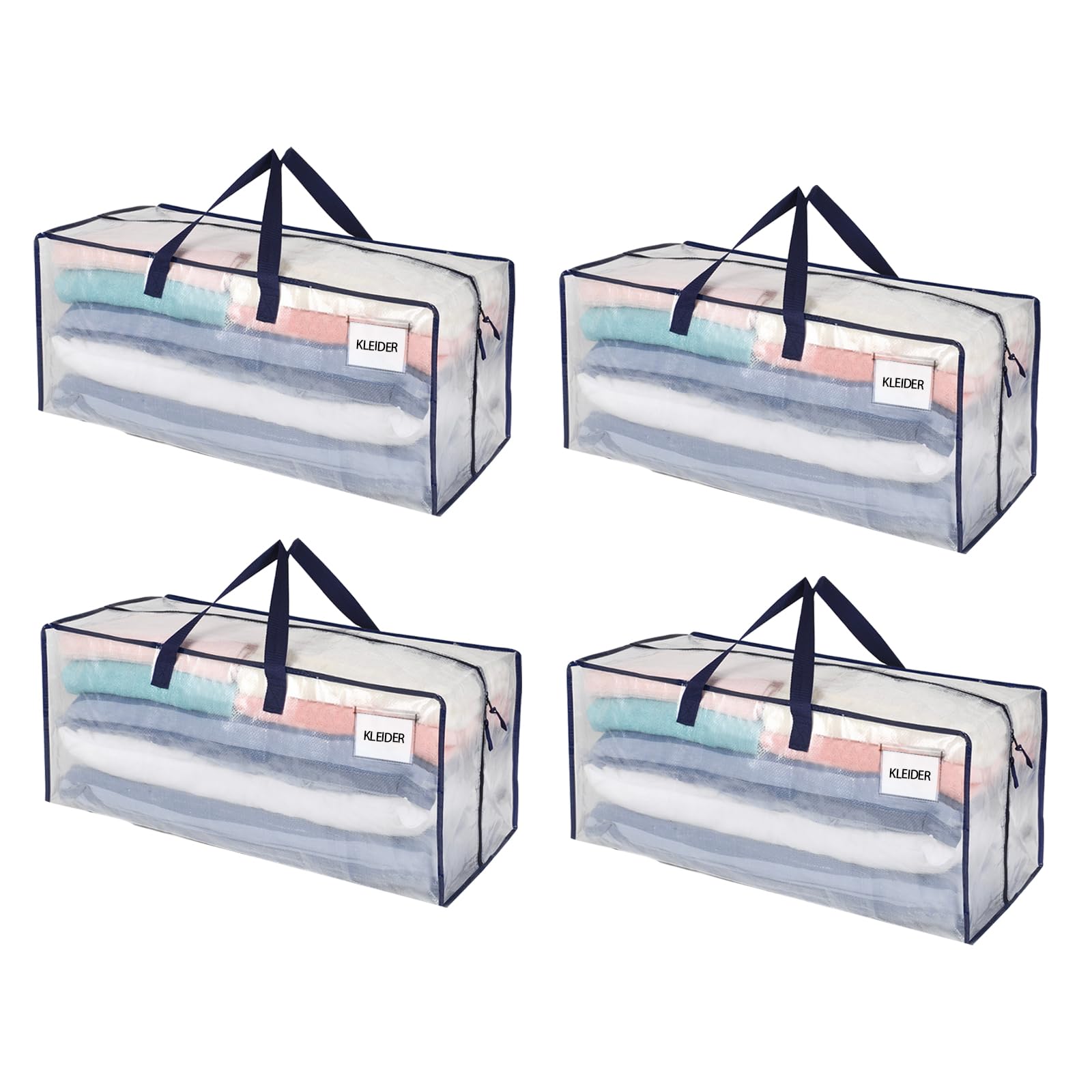 VENO 87 Liter extra grosse Umzugstaschen mit Rucksackgurten, Umzugshelfer, starke Griffe und Reissverschlüsse, Kleideraufbewahrung, Wäschesäcke, wiederverwendbar und nachhaltig (Transparent, 4er-Pack)