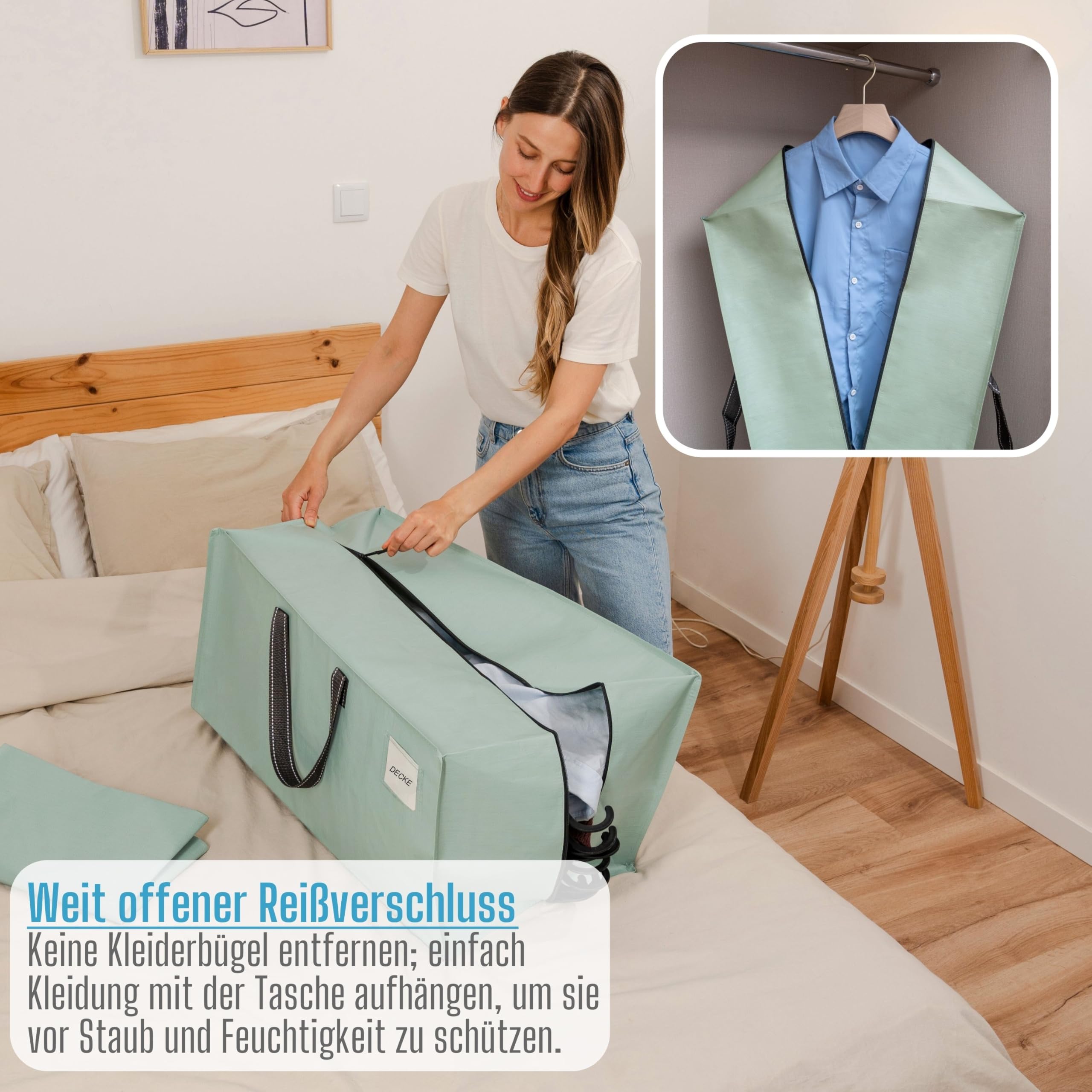 VENO Extra grosse, robuste, wiederverwendbare Aufbewahrungsbeutel sind unglaublich langlebig und vielseitig. Mit robusten Poly-Gurtbandgriffen sind sie die perfekte Alternative zu Umzugskartons. Diese Taschen sind ideal für die Aufbewahrung von Bettwäsche, Kissen, Decken, Kleidung (mit Aufhängern), Büchern, Schuhen und Urlaubsdekorationen. Sie verfügen über einen durchgehenden Reissverschluss für einfaches Be- und Entladen und bieten mehrere Tragemöglichkeiten, einschliesslich Rucksackgurte und untere Gurte für ultimative Flexibilität. Verwenden Sie sie als Alternative zu Ikea-Taschen mit Reissverschlüssen oder traditionellen Umzugsartikeln, wodurch sie perfekte Packtaschen für den Umzug sind. Diese strapazierfähigen Umzugstaschen können bis zu 22,7 kg tragen, passend für mittelgrosse und grosse Umzugskartons. Sie sind ideal für Studenten, Familien in Wohnungen und alle, die nach effizienten Aufbewahrungs- und Umzugslösungen suchen. Wählen Sie VENO um Ihren Umzug zu optimieren und die Umwelt zu schützen.
