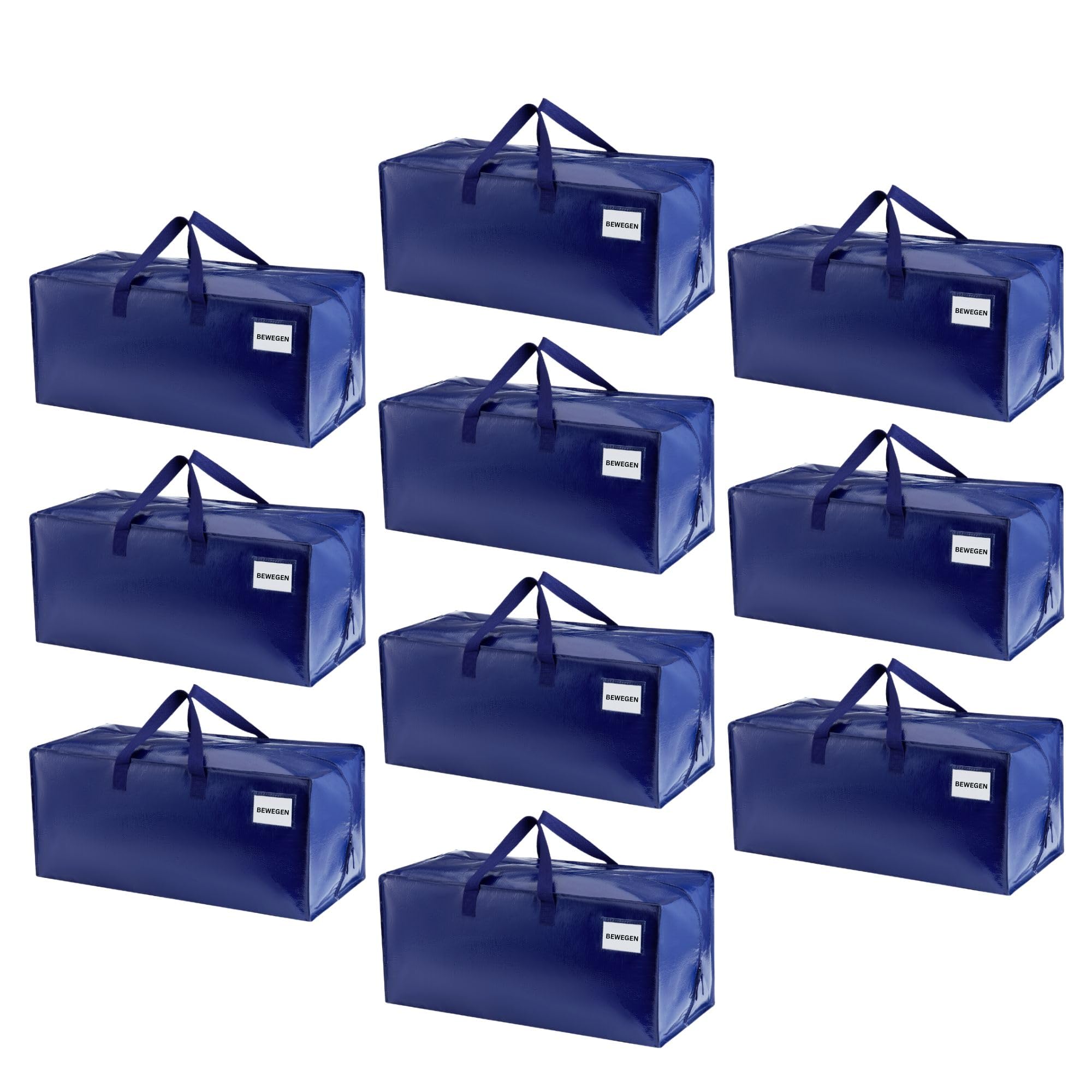 VENO 87 Liter extra grosse Umzugstaschen mit Rucksackgurten, Umzugshelfer, starke Griffe und Reissverschlüsse, Kleideraufbewahrung, Wäschesäcke, wiederverwendbar und nachhaltig (Blau, 10er-Pack)