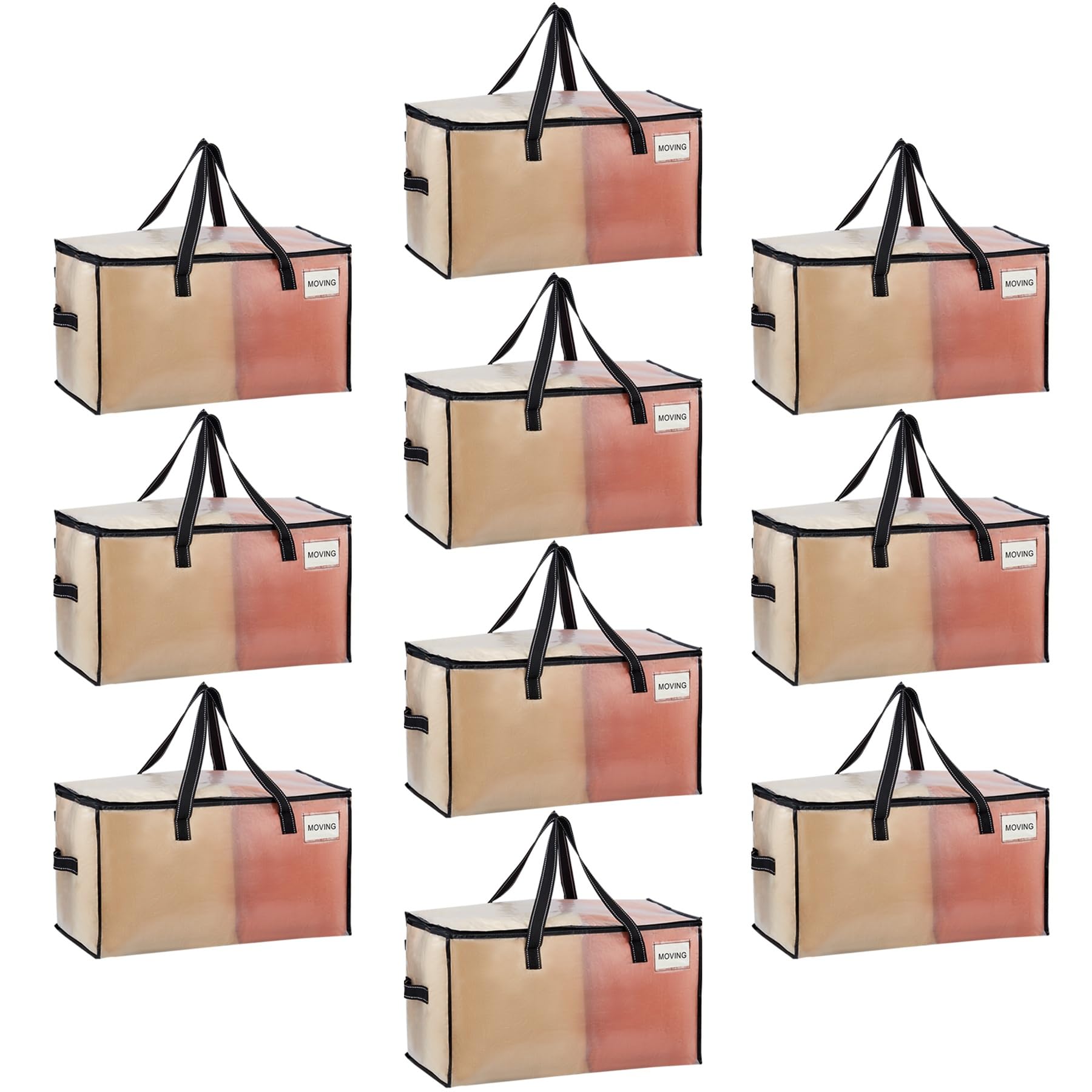 VENO Umzugstaschen 10 Stück Aufbewahrungstasche mit Griffe und Reissverschlüssen, Kleideraufbewahrung Umzugskartons, Faltbare Aufbewahrung Boxen,Wasserdichte Transporttasche (Transparent, 10er-Pack)