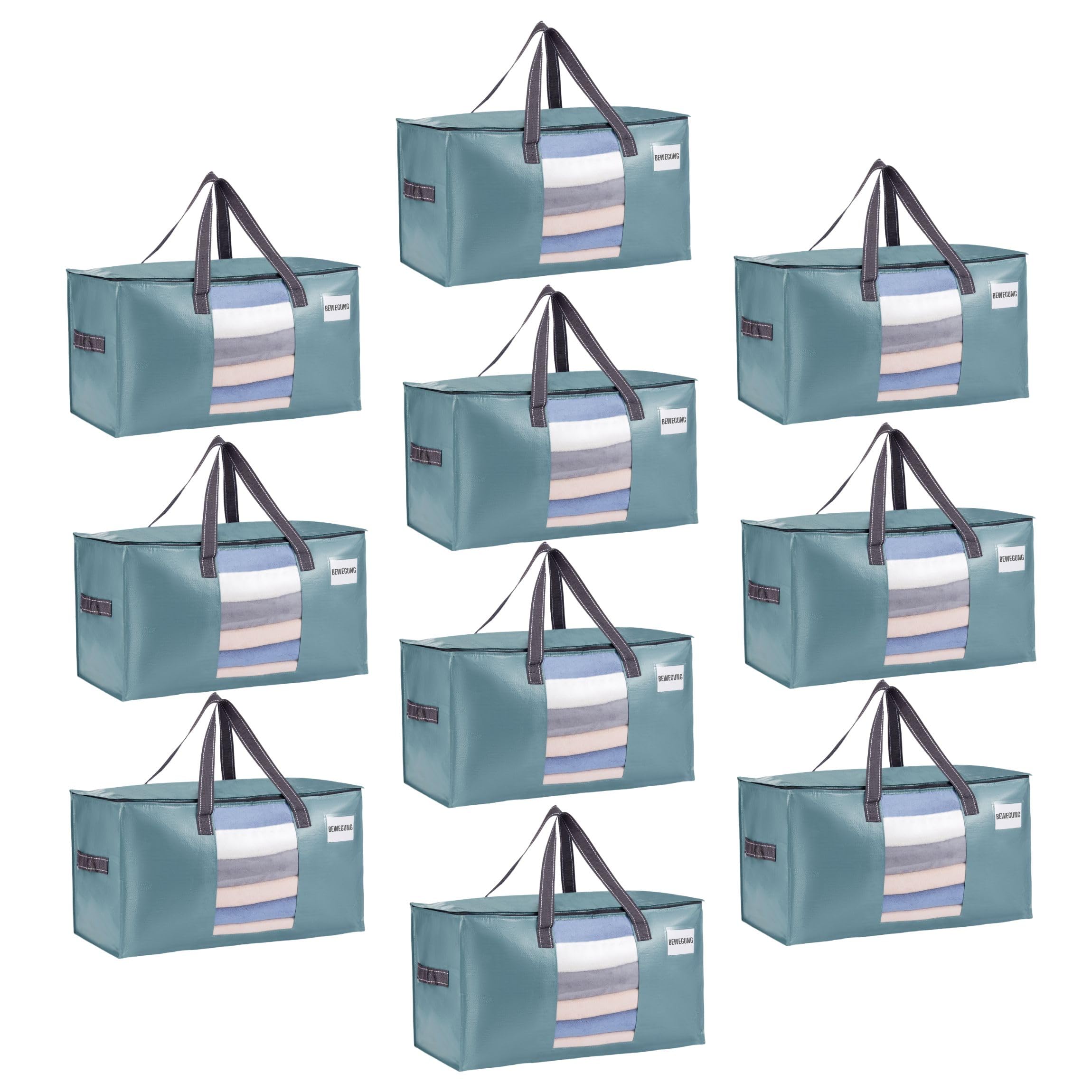 VENO Umzugstaschen 10 Stück Aufbewahrungstasche mit Griffe und Reissverschlüssen, Kleideraufbewahrung Umzugskartons, Faltbare Aufbewahrung Boxen,Wasserdichte Transporttasche (Hellblau, 10er-Pack)