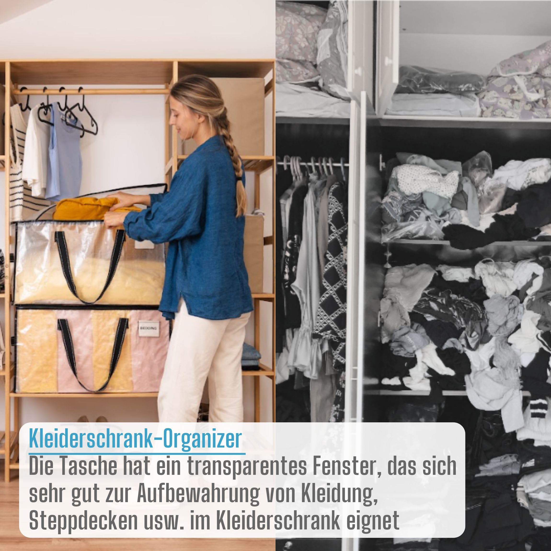 VENO Umzugstaschen 2 Stück Aufbewahrungstasche mit Griffe und Reissverschlüssen, Kleideraufbewahrung Umzugskartons, Faltbare Aufbewahrung Boxen,Wasserdichte Transporttasche (Transparent, 2er-Pack)