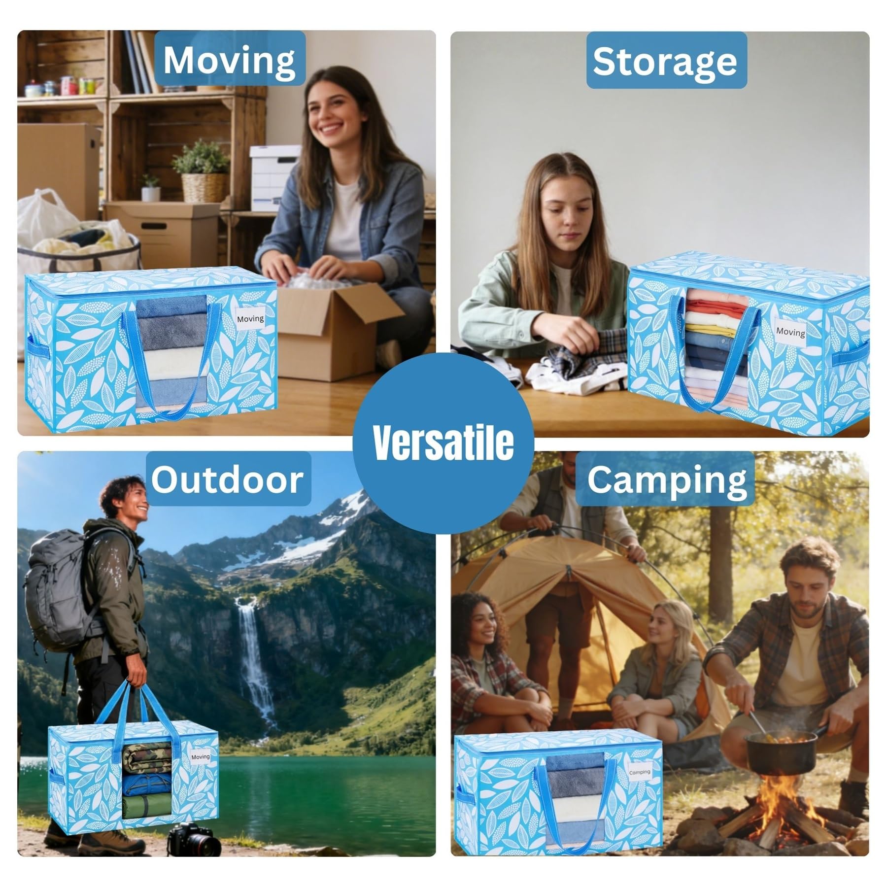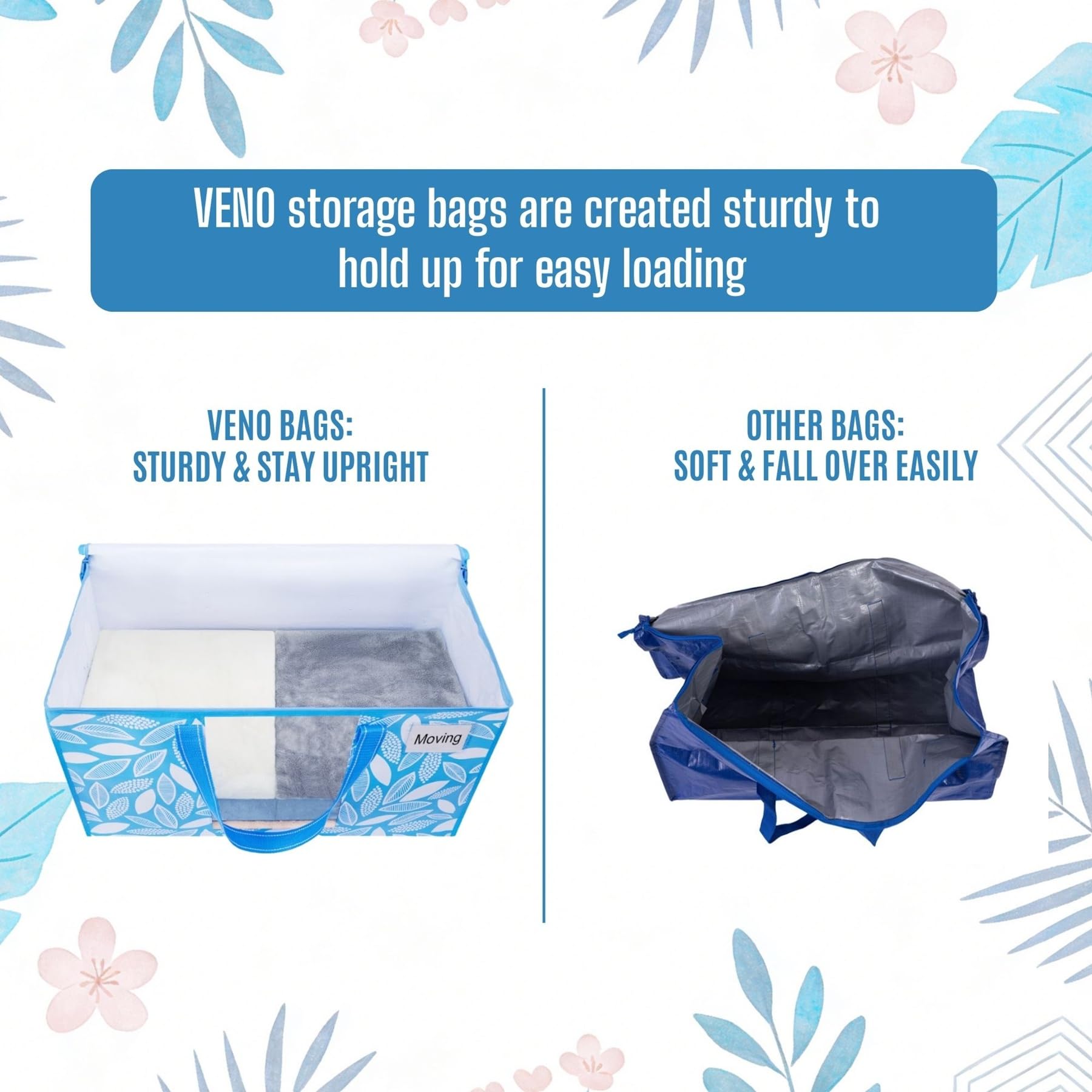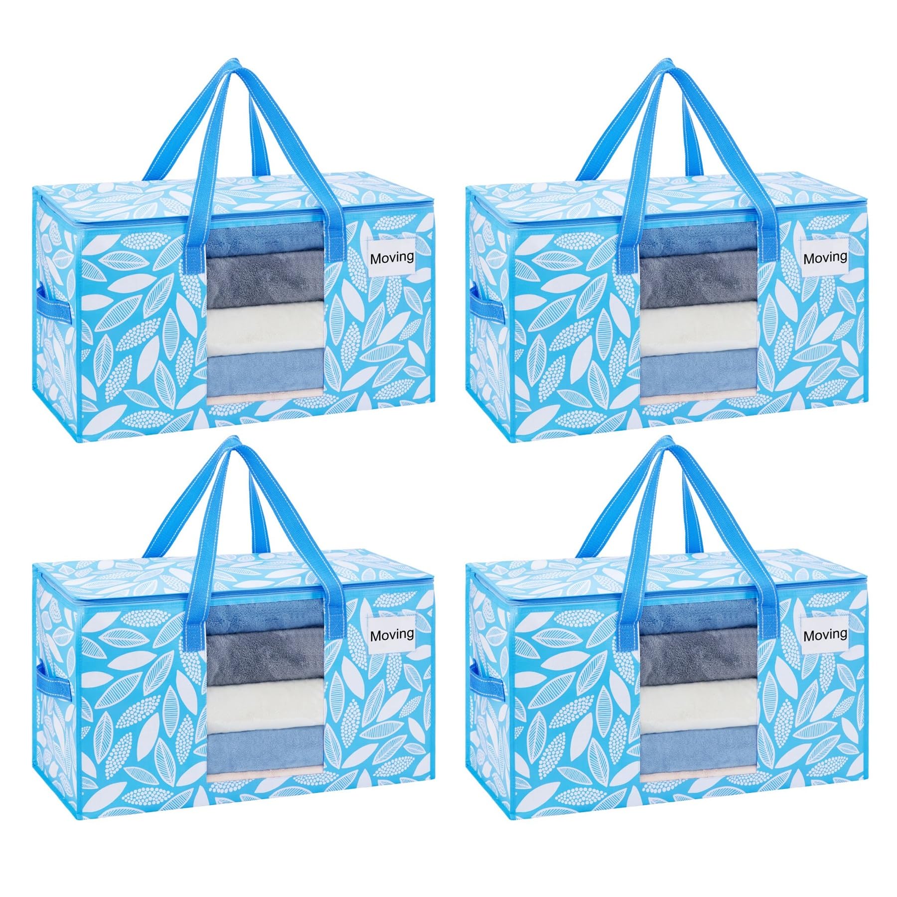 VENO Umzugstaschen 4 Stück Aufbewahrungstasche mit Griffe und Reissverschlüssen, Kleideraufbewahrung Umzugskartons, Faltbare Aufbewahrung Boxen,Transporttasche (Frühlingsbrise, 4er-Pack)