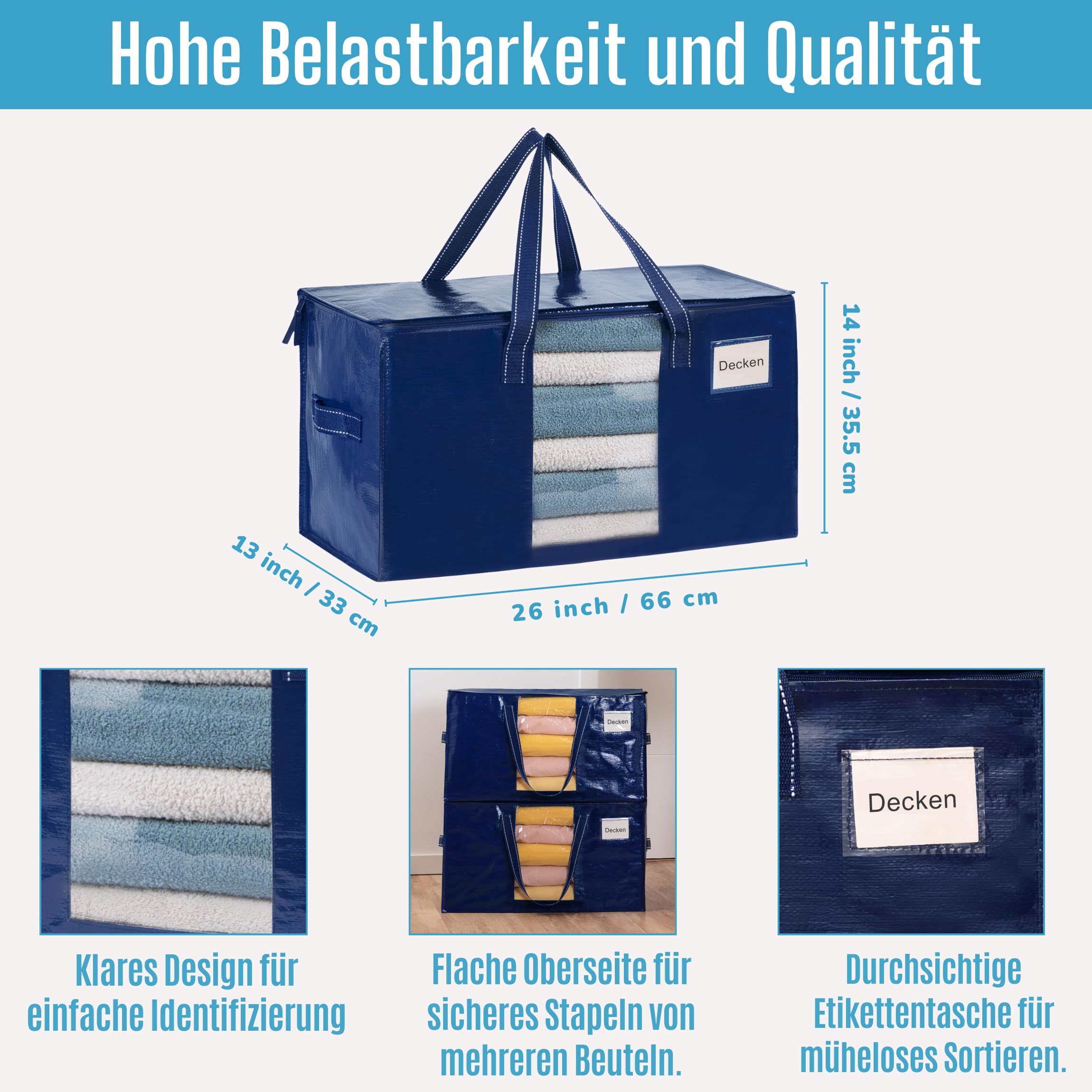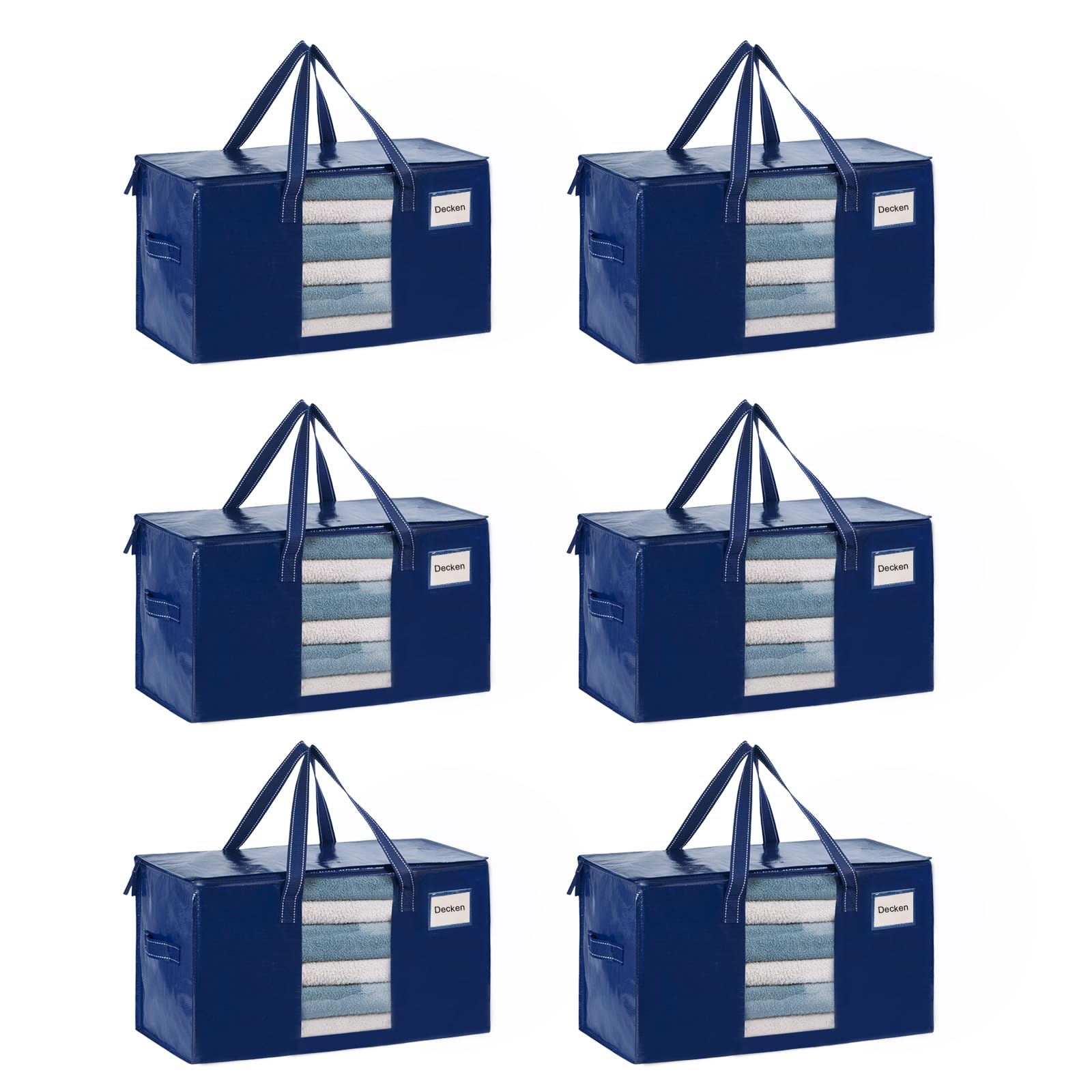 VENO Umzugstaschen 6 Stück Aufbewahrungstasche mit Griffe und Reissverschlüssen, Kleideraufbewahrung Umzugskartons, Faltbare Aufbewahrung Boxen,Wasserdichte Transporttasche (Blau, 6er-Pack)