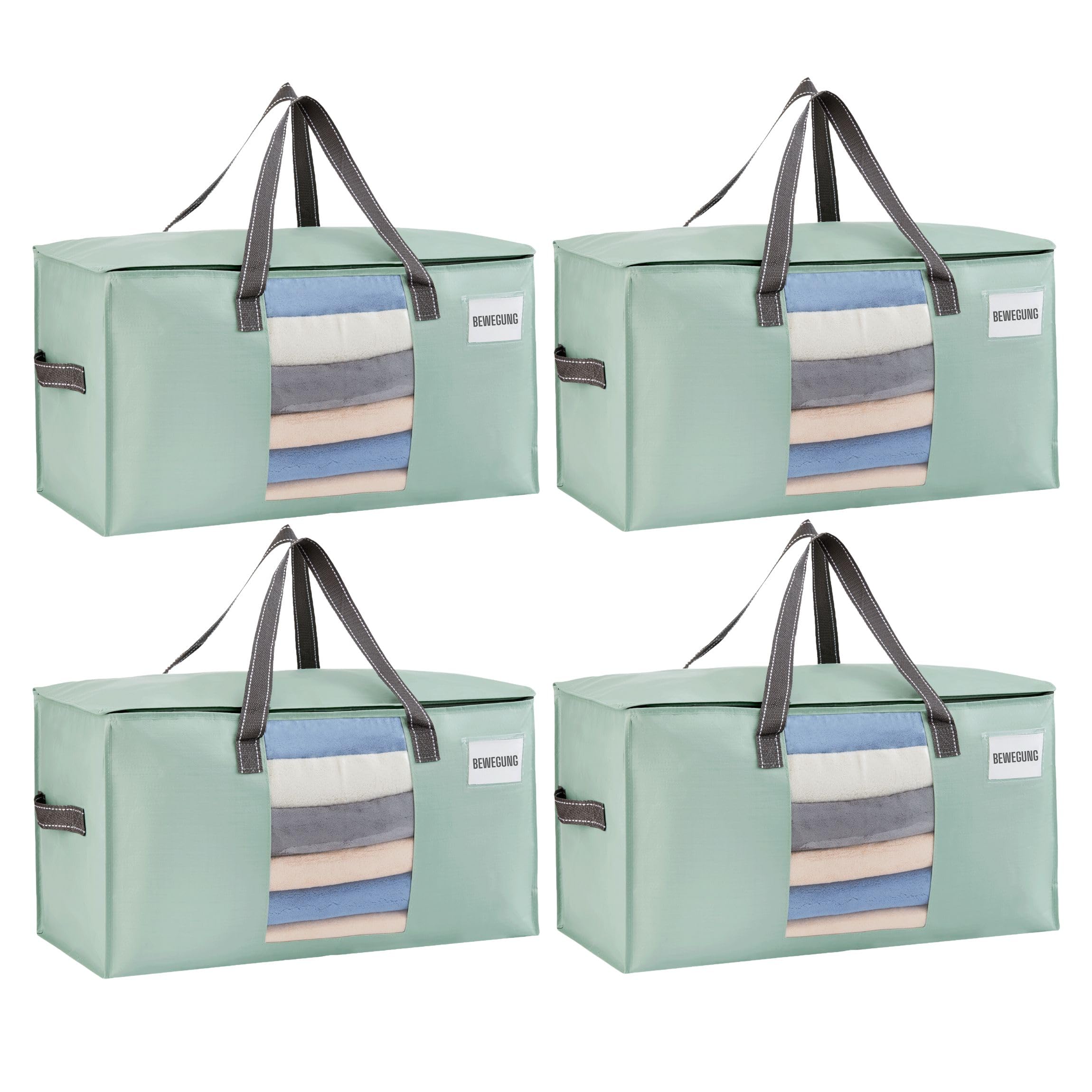 VENO Umzugstaschen 4 Stück Aufbewahrungstasche mit Griffe und Reissverschlüssen, Kleideraufbewahrung Umzugskartons, Faltbare Aufbewahrung Boxen,Wasserdichte Transporttasche (Hellgrün, 4er-Pack)