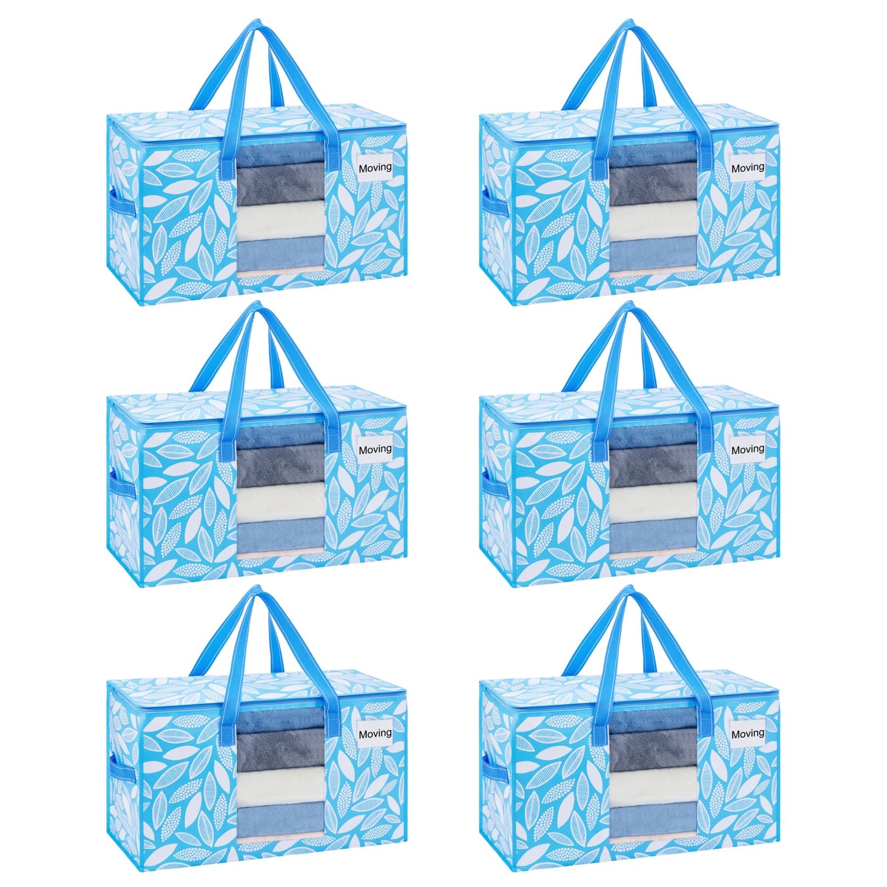 VENO Umzugstaschen 6 Stück Aufbewahrungstasche mit Griffe und Reissverschlüssen, Kleideraufbewahrung Umzugskartons, Faltbare Aufbewahrung Boxen,Transporttasche (Frühlingsbrise, 6er-Pack)