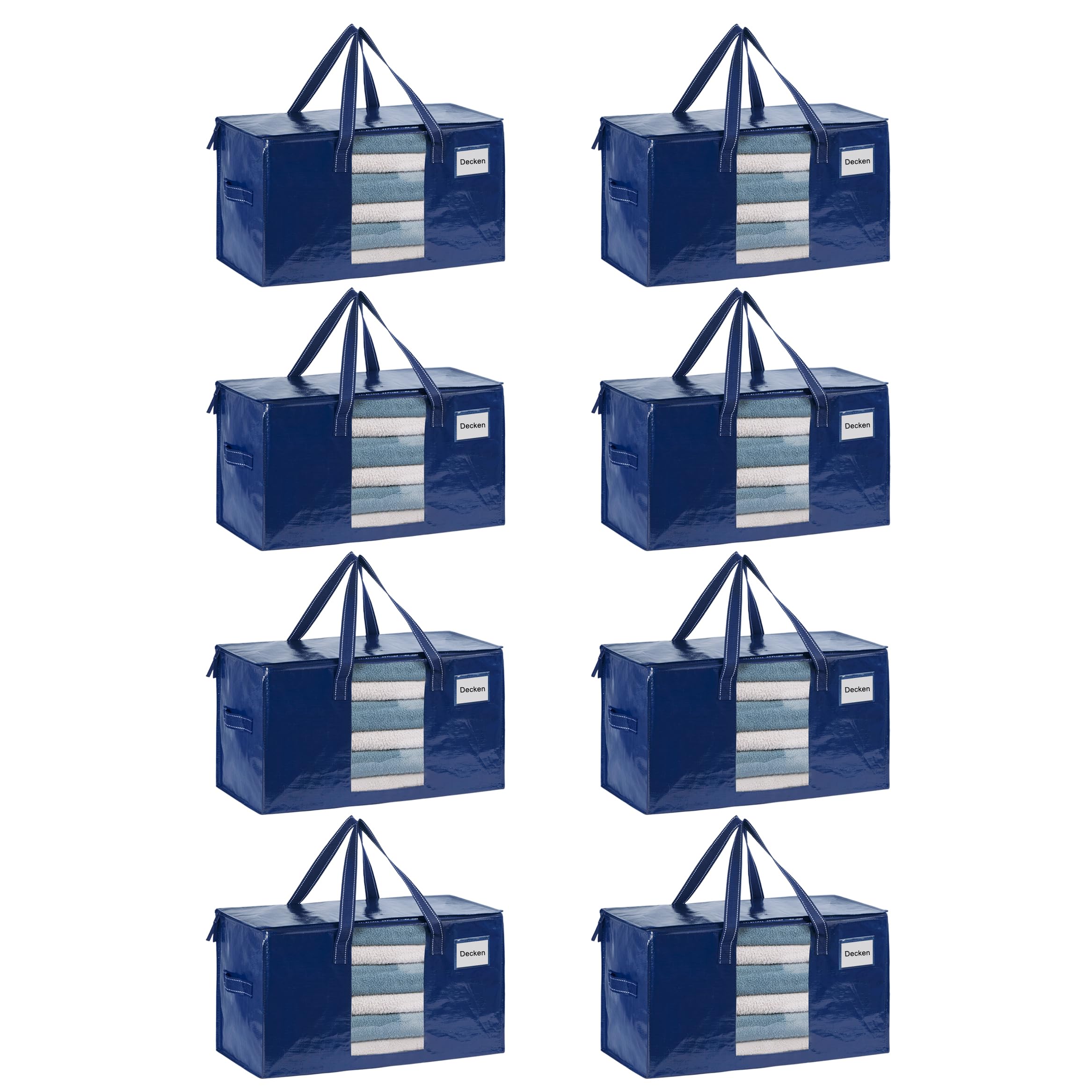 VENO Umzugstaschen 8 Stück Aufbewahrungstasche mit Griffe und Reissverschlüssen, Kleideraufbewahrung Umzugskartons, Faltbare Aufbewahrung Boxen,Wasserdichte Transporttasche (Blau, 8er-Pack)