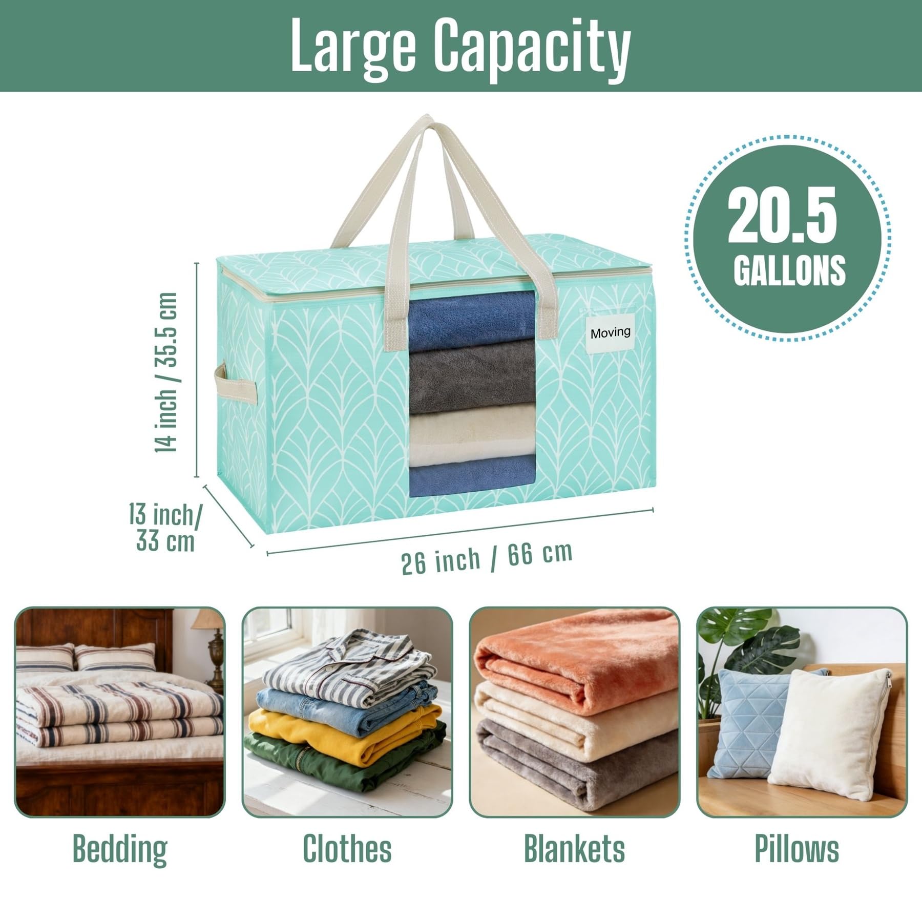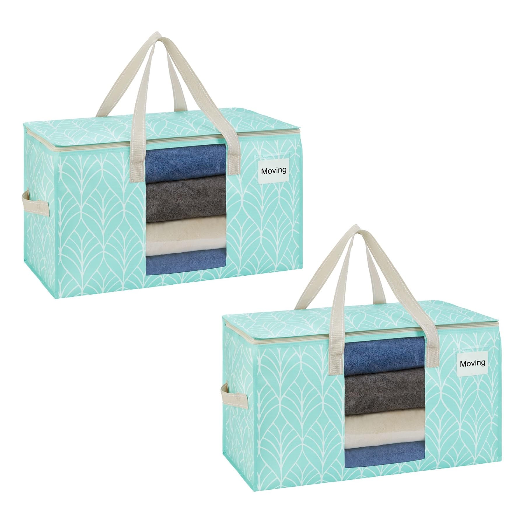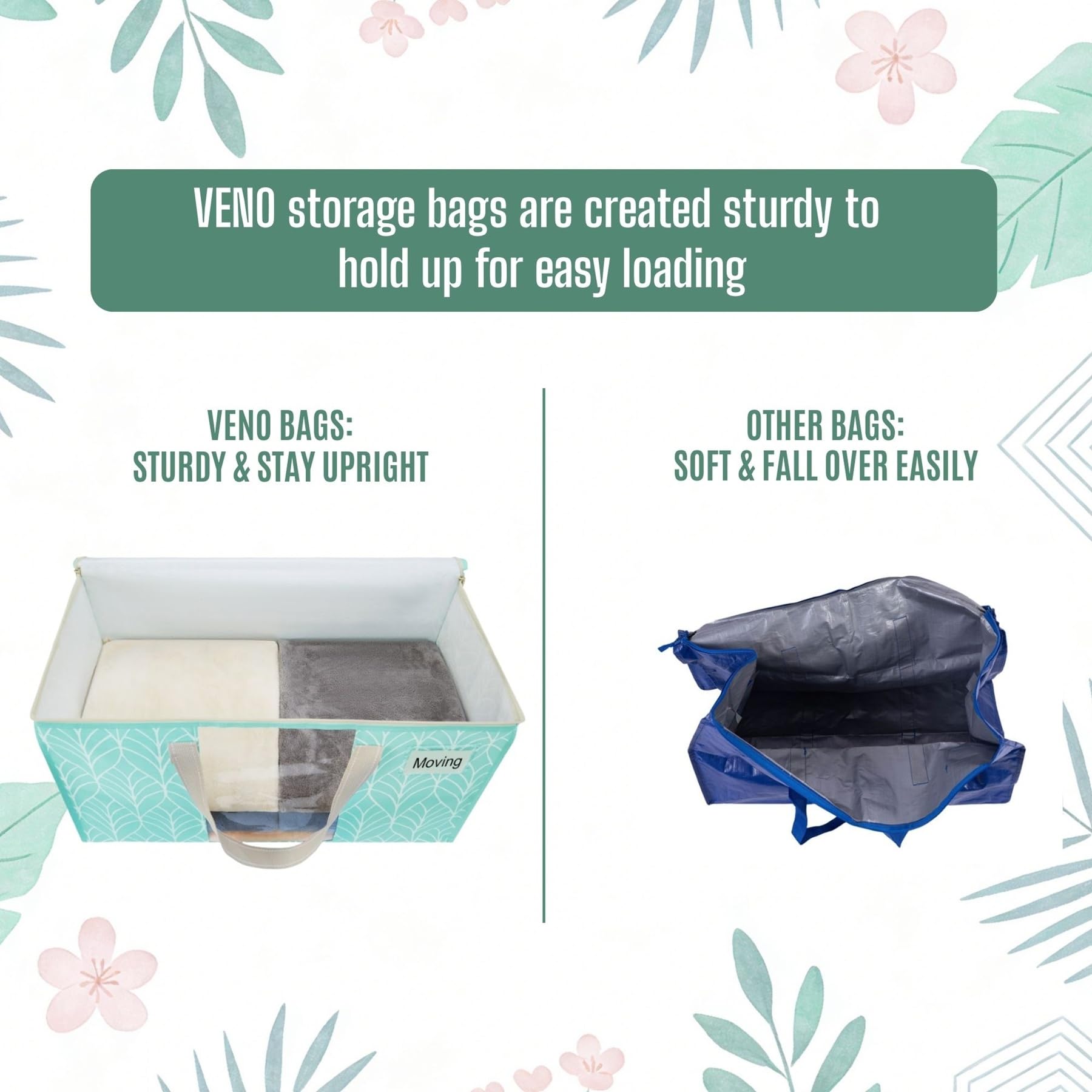VENO Umzugstaschen 2 Stück Aufbewahrungstasche mit Griffe und Reissverschlüssen, Kleideraufbewahrung Umzugskartons, Faltbare Aufbewahrung Boxen,Transporttasche (Immergrün, 2er-Pack)