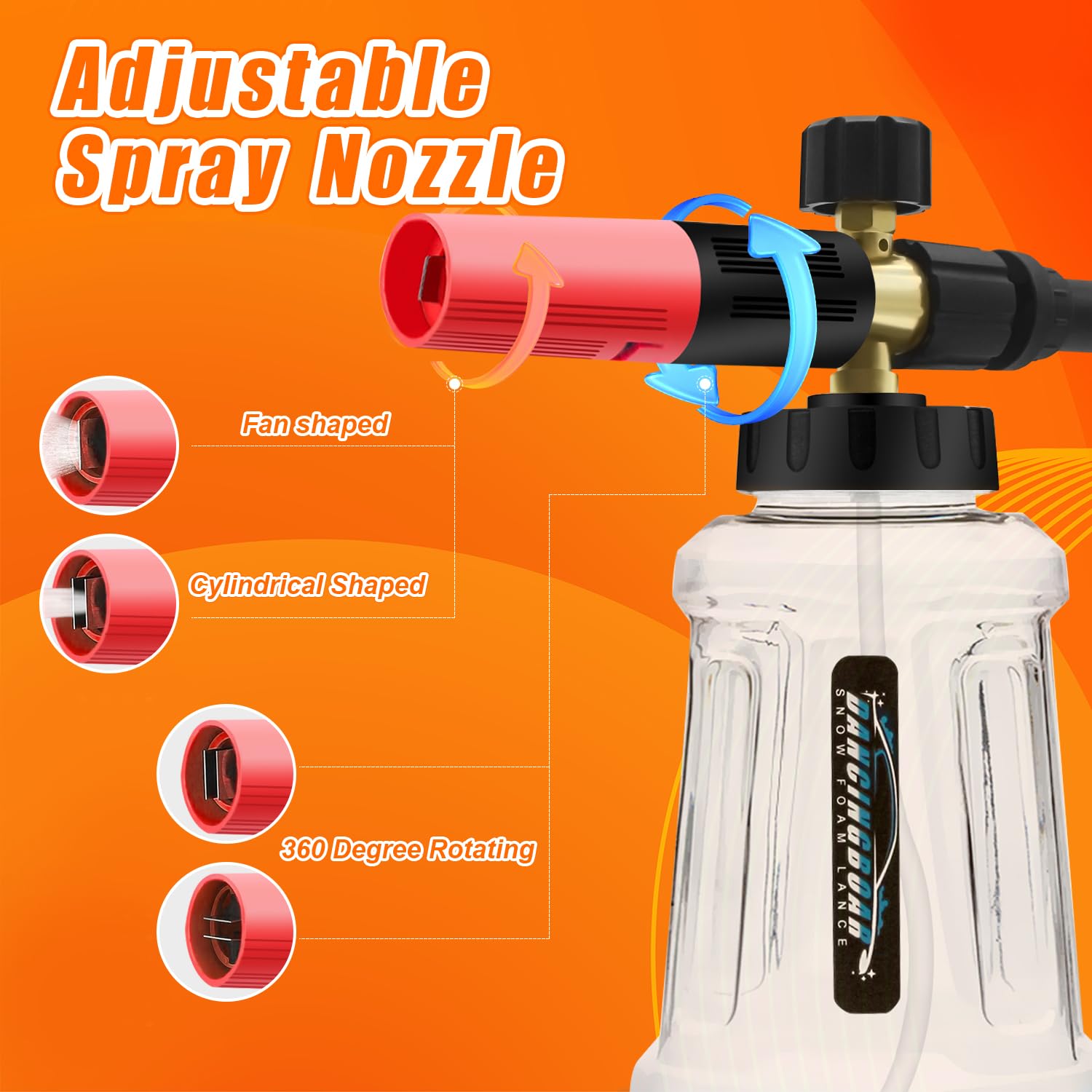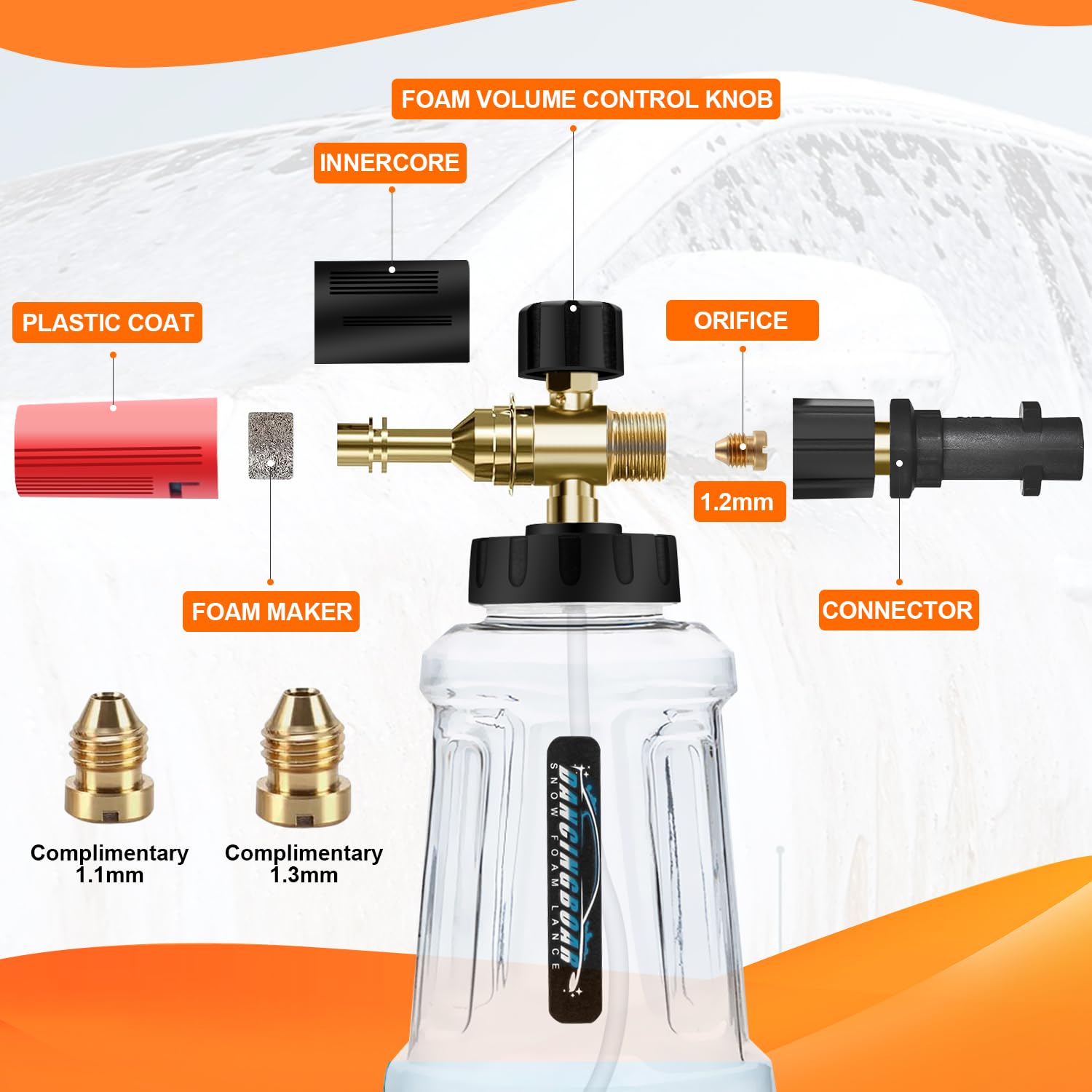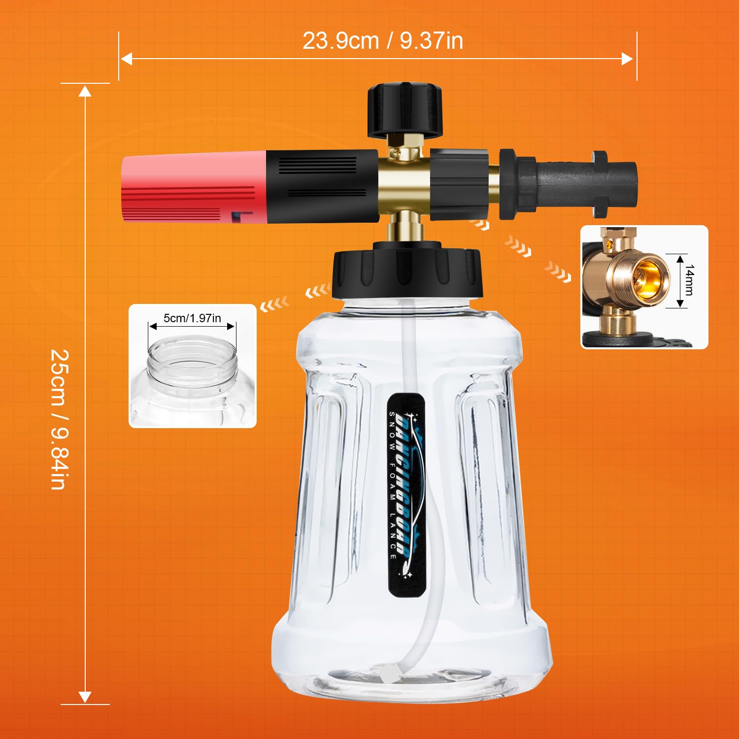 Verbesserte Schaumlanze Schaumkanone für Kärcher K-Serie K2 K3 K4 K5 K6 K7 Hochdruckreiniger, 1L Schneeschaumlanze mit Verstellbarer Schaumdüse für Autowäsche (Schwarz & Rot)