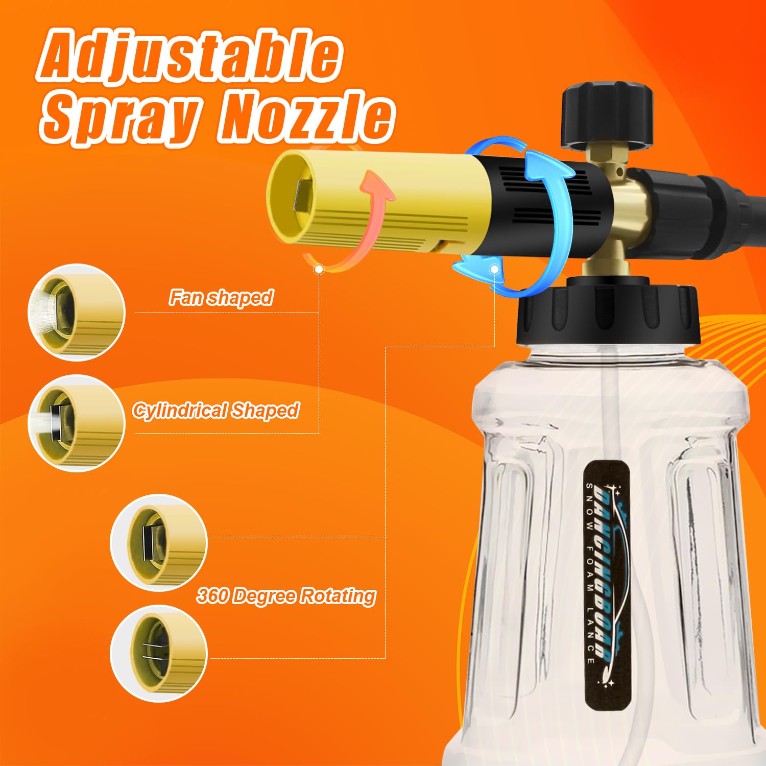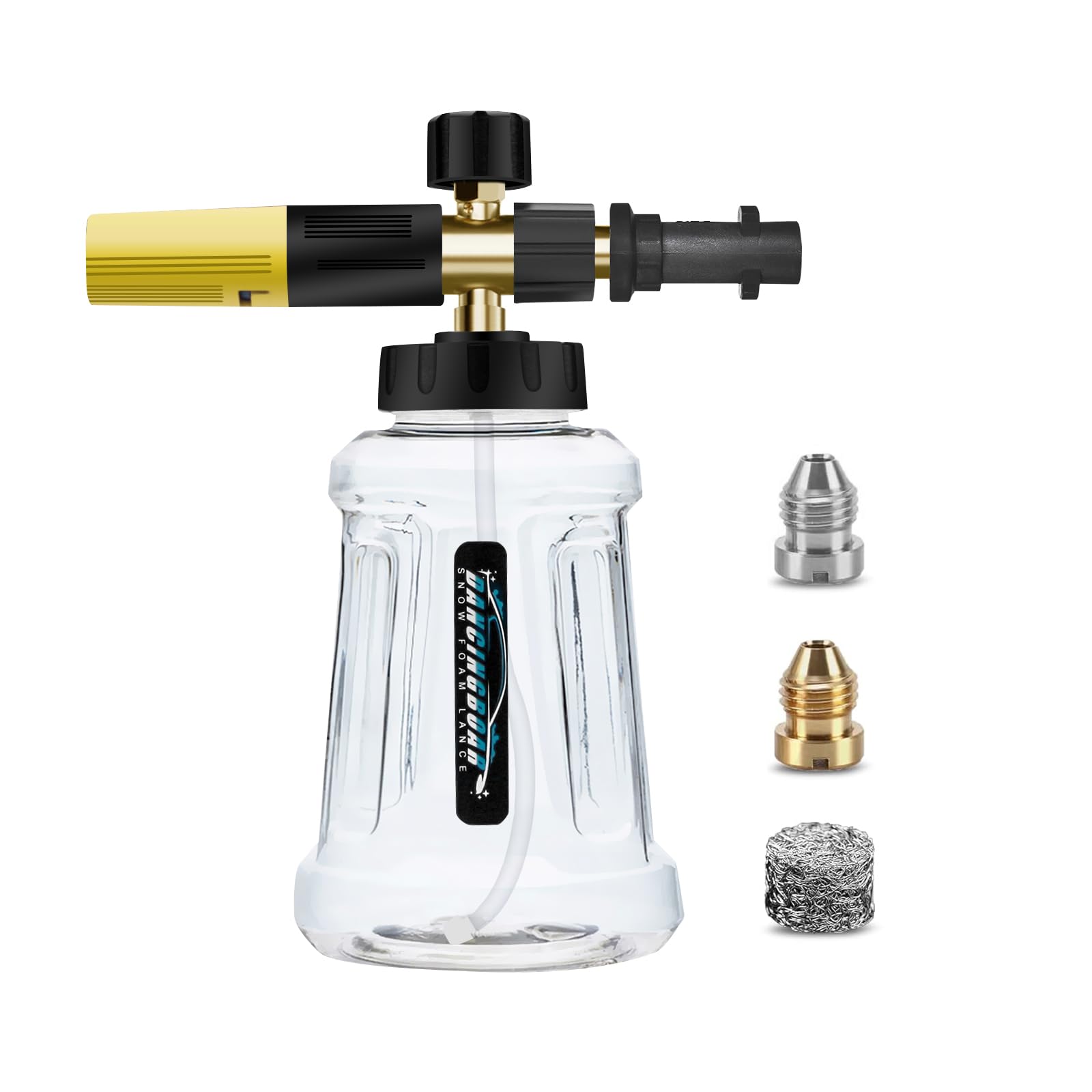 Verbesserte Schaumlanze Schaumkanone für Kärcher K-Serie K2 K3 K4 K5 K6 K7 Hochdruckreiniger, 1L Schneeschaumlanze mit Verstellbarer Schaumdüse für Autowäsche (Schwarz & Gelb)