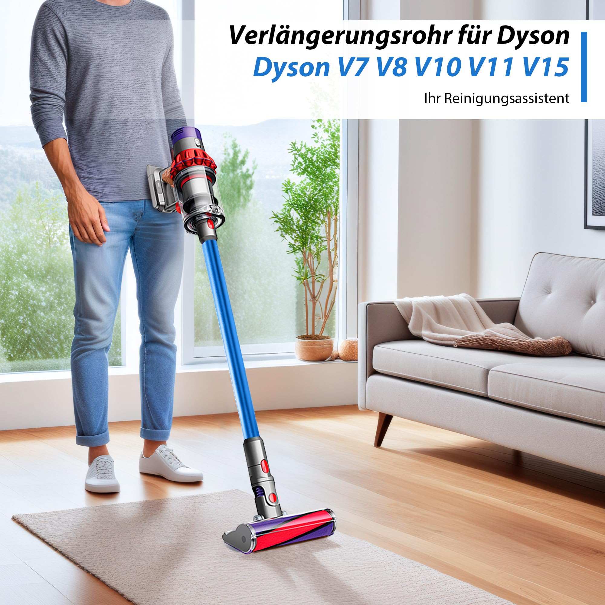 Verlängerungsrohr für Dyson Rohr V11 Kompatibel mit Dyson Saugrohr V15 V 11 V10 V8 V7, Starres Teleskoprohr, V10 Ersatzteile Verlängerungsstange mit Zwei 2-in-1-Bürsten, Blau