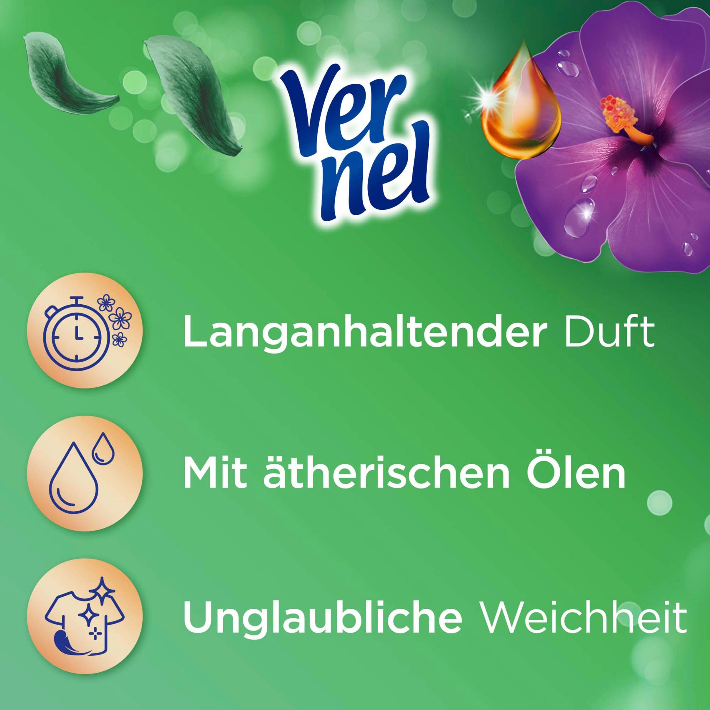 VERNEL Aromatherapie Weichspüler Sinnliche Frangipani & VERNEL Aromatherapie Weichspüler Zauberhafte Malediven & VERNEL Aromatherapie Weichspüler Faszinierender Dschungel & VERNEL Aromatherapie Weichspüler Traumhafte Lotusblüte & VERNEL Aromatherapie Weichspüler Bezaubernde Magnolie – Sinnliches Dufterlebnis für 24 Stunden & 7 Tage