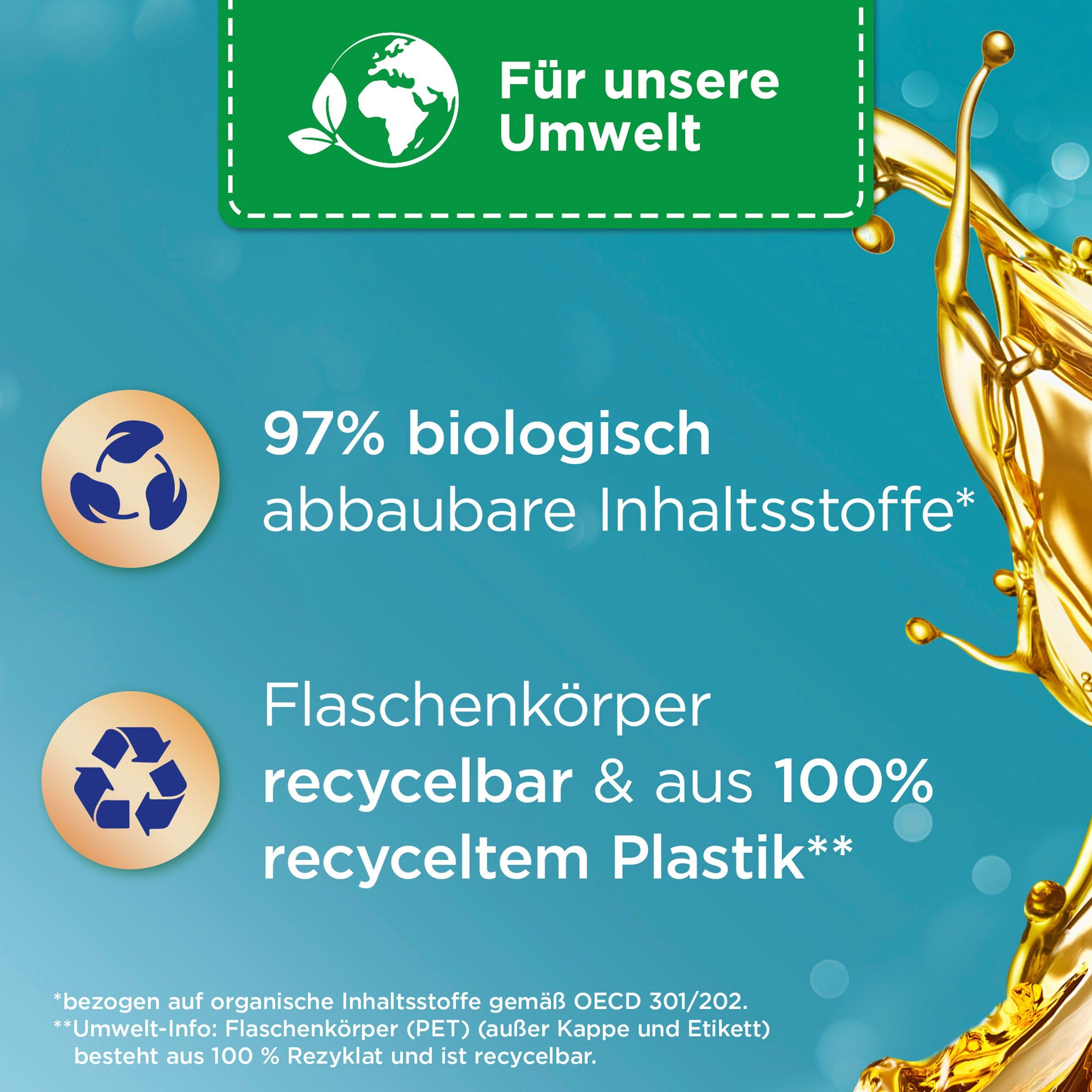 Die sinnliche Wäscheparfüm-Formel ist dermatologisch bestätigt und reduziert statische Aufladung. Die Lieblingskleidung wird Faser für Faser gepflegt und lässt sich so geschmeidiger bügeln. Gleichzeitig enthält der VERNEL Weichspüler Aromatherapie 97 % biologisch abbaubare Inhaltsstoffe, . Die Folie kann im Recyclingprozess leicht abgetrennt werden, sodass die Flasche vollständig recycelt werden kann (sofern ein Recyclingstrom verfügbar ist).