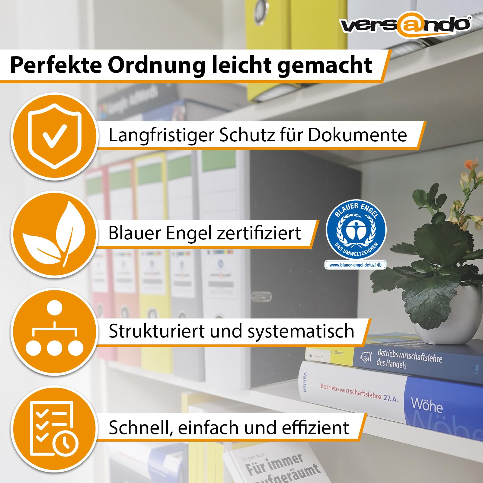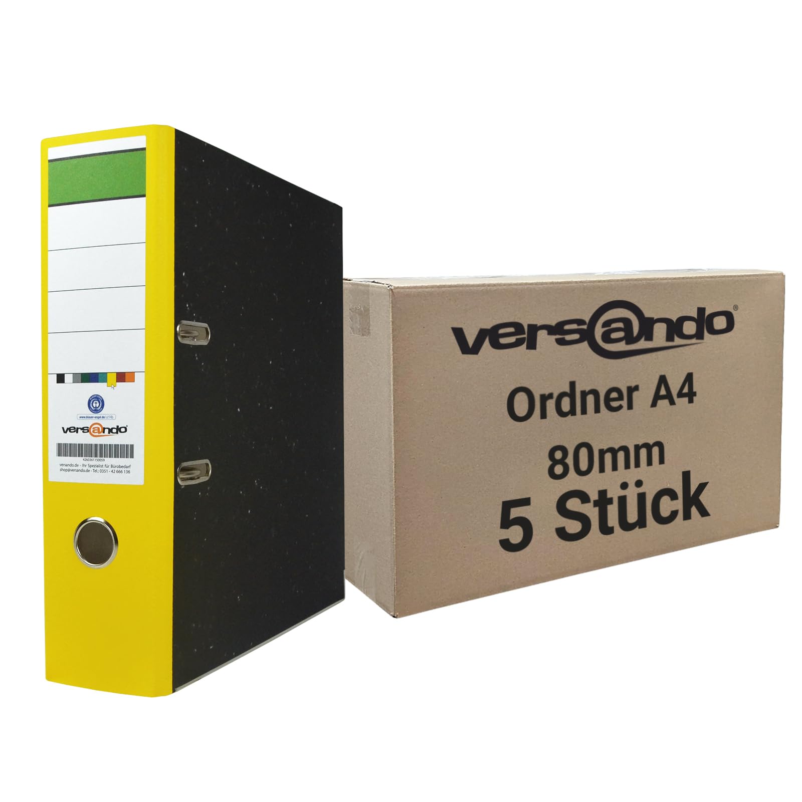 versando 5x breiter Premium Ordner DIN A4 Rücken 8cm Aktenordner Ringordner - Blauer Engel zertifiziert - gelb