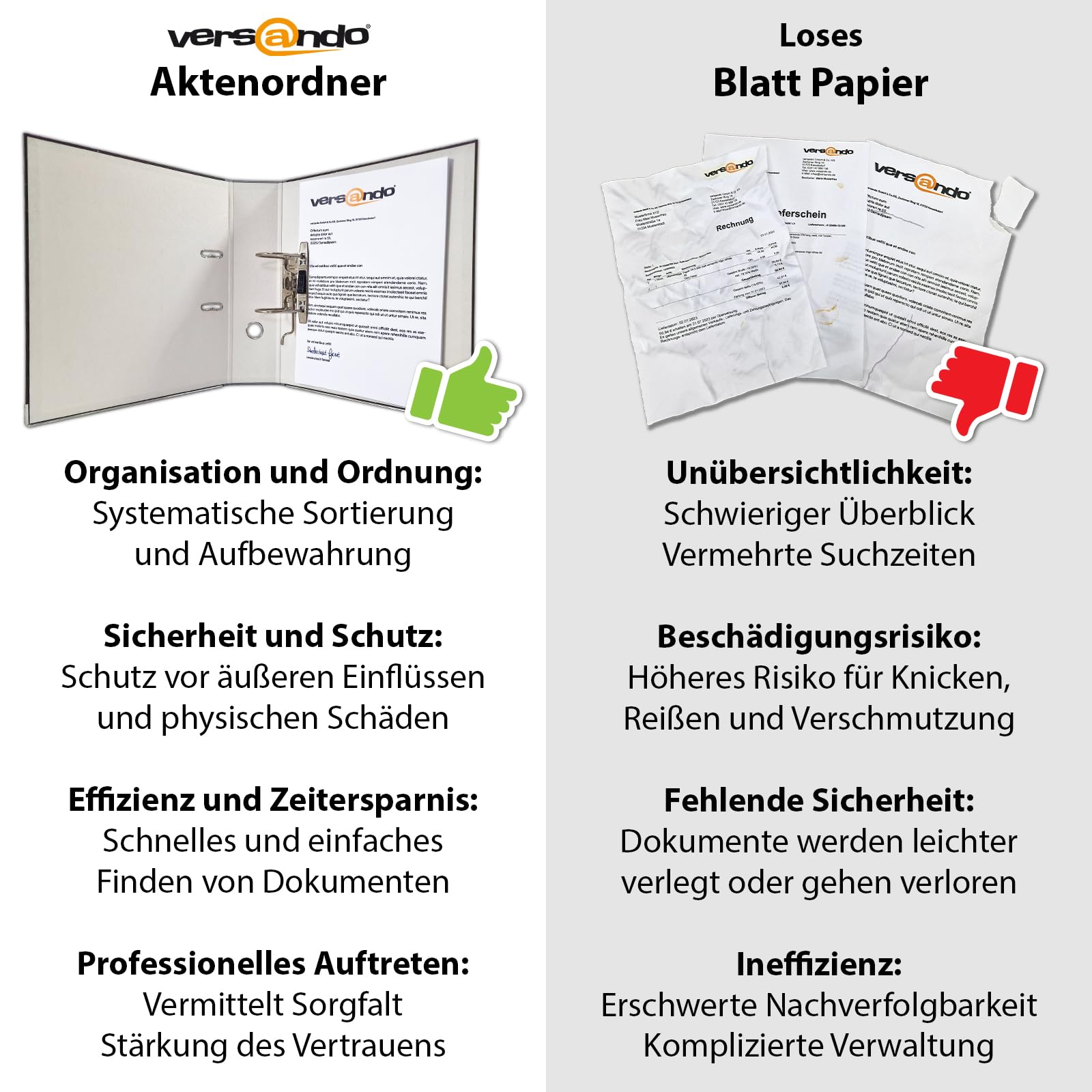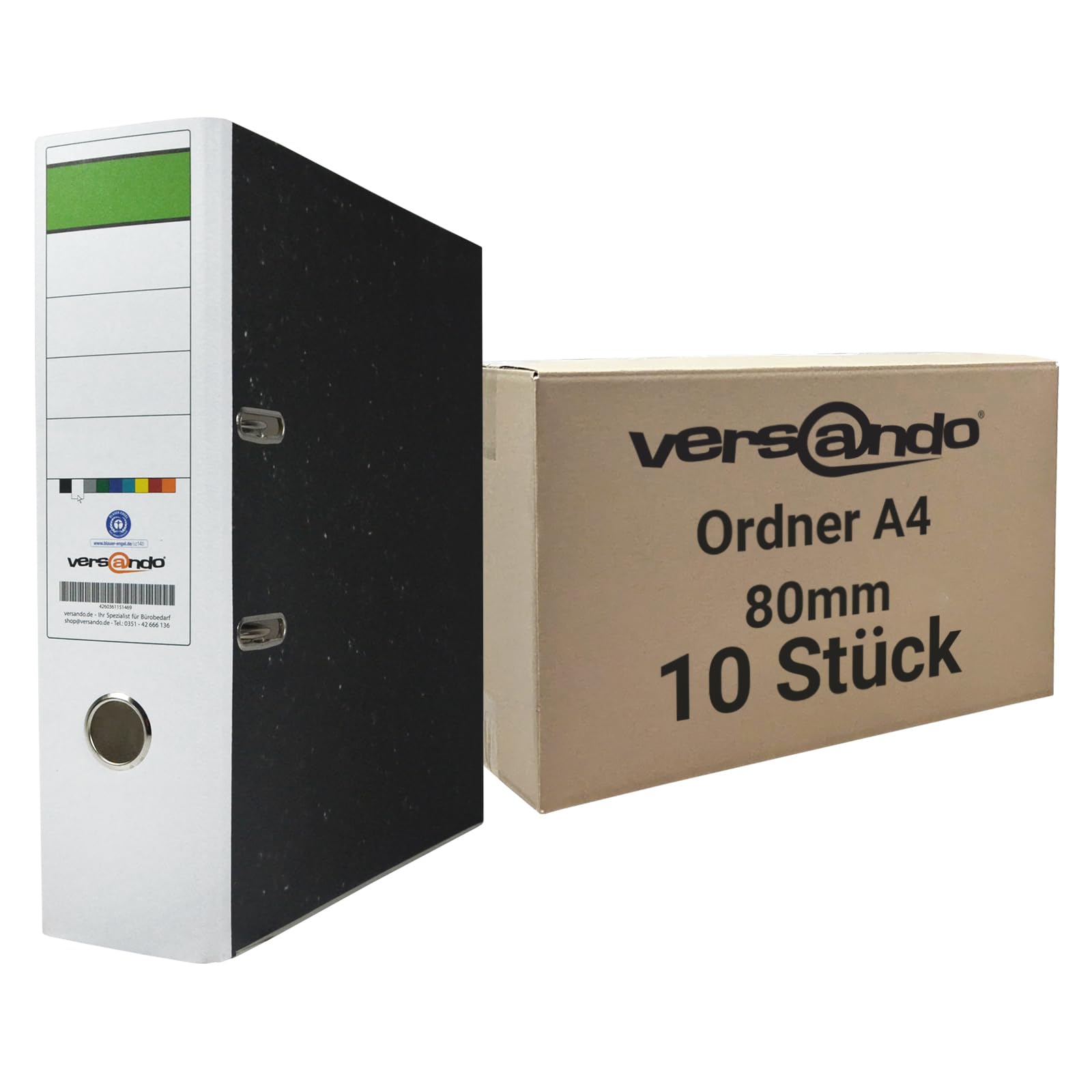 versando 10x breiter Premium Ordner DIN A4 Rücken 8cm Aktenordner Ringordner - Blauer Engel zertifiziert - weiss