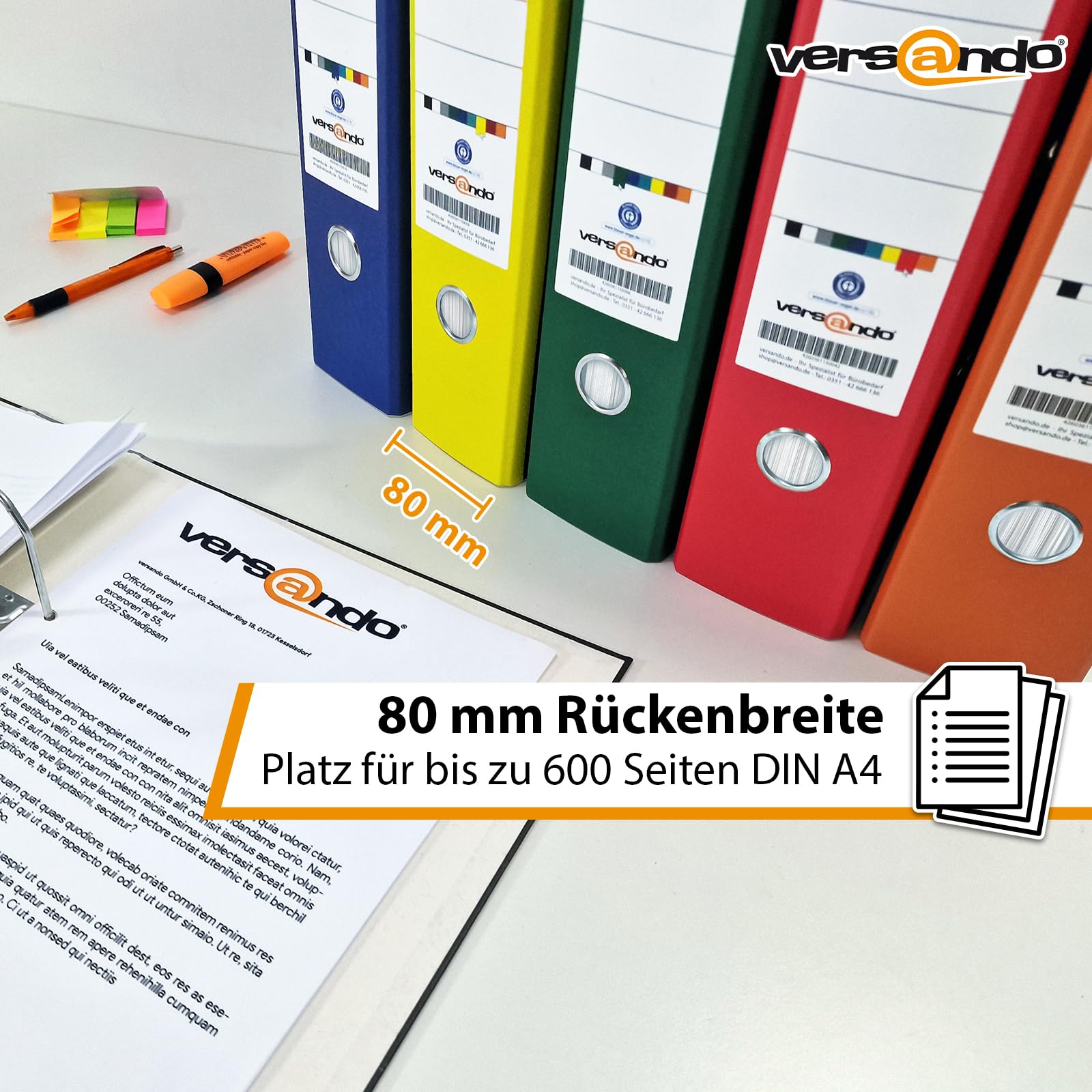 versando 5x breiter Premium Ordner DIN A4 Rücken 8cm Aktenordner Ringordner - Blauer Engel zertifiziert - orange