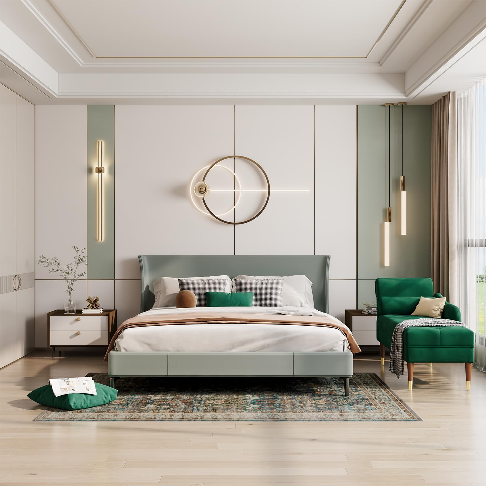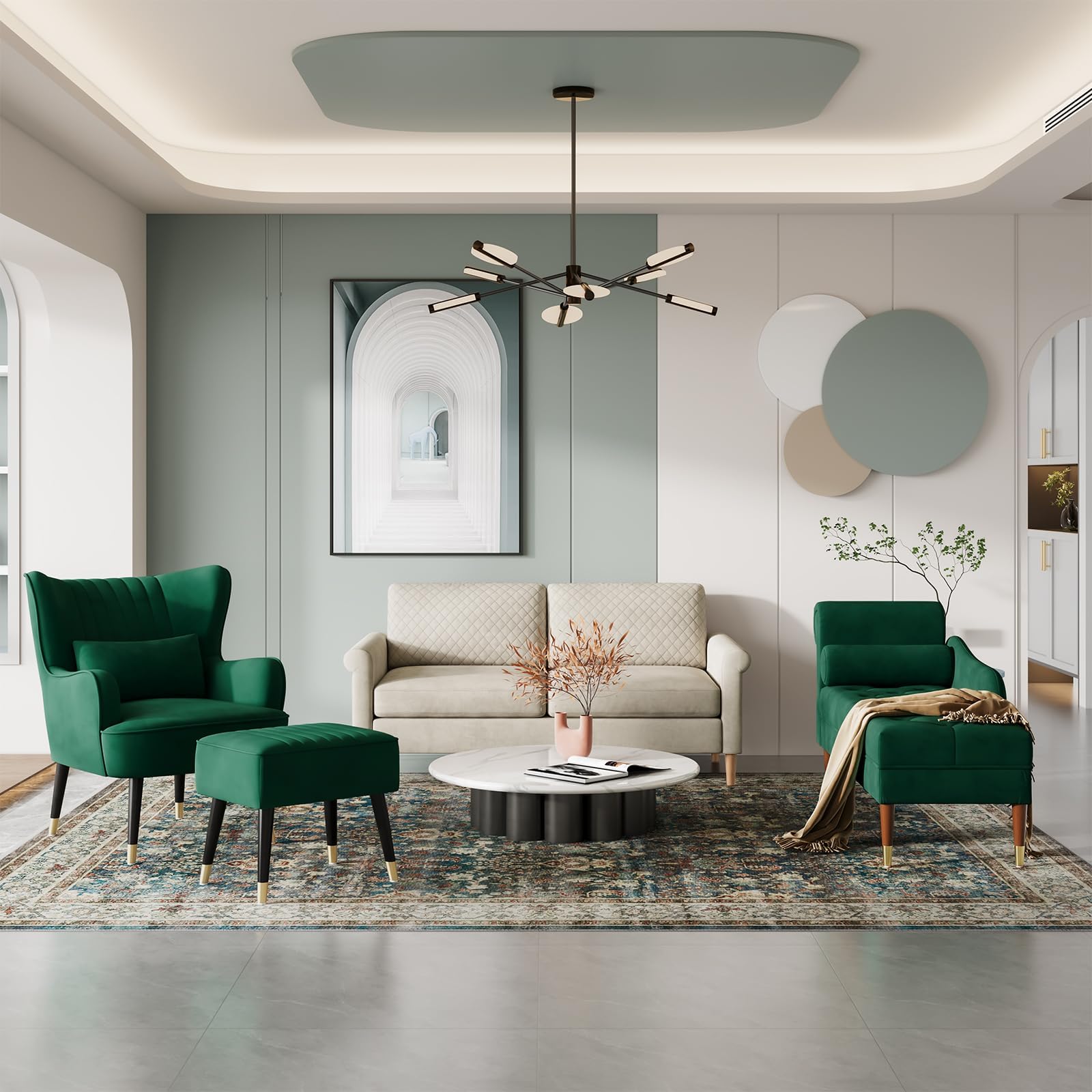 - 【Zuverlässiges Design】 Dieser klassische und elegante Stil wird Ihrem Raum einen Hauch von Raffinesse verleihen, die gebogene Rückenlehne & Armlehne und das zylindrische Lendenkissen sind so konzipiert, dass sie maximalen Komfort und Unterstützung bieten, wenn Sie auf dem Longue-Sofa sitzen oder sich anlehnen. Das luxuriöse Sofa hat einen Hartholzrahmen als Grundstruktur und ist mit Gummiholz und goldenen Beinen ausgestattet, die seine grosse Stabilität, Haltbarkeit und Schönheit unterstreichen