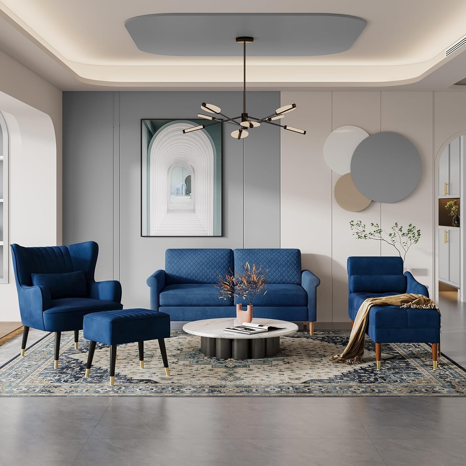 - 【Zuverlässiges Design】 Dieser klassische und elegante Stil wird Ihrem Raum einen Hauch von Raffinesse verleihen, die gebogene Rückenlehne & Armlehne und das zylindrische Lendenkissen sind so konzipiert, dass sie maximalen Komfort und Unterstützung bieten, wenn Sie auf dem Longue-Sofa sitzen oder sich anlehnen. Das luxuriöse Sofa hat einen Hartholzrahmen als Grundstruktur und ist mit Gummiholz und goldenen Beinen ausgestattet, die seine grosse Stabilität, Haltbarkeit und Schönheit unterstreichen.