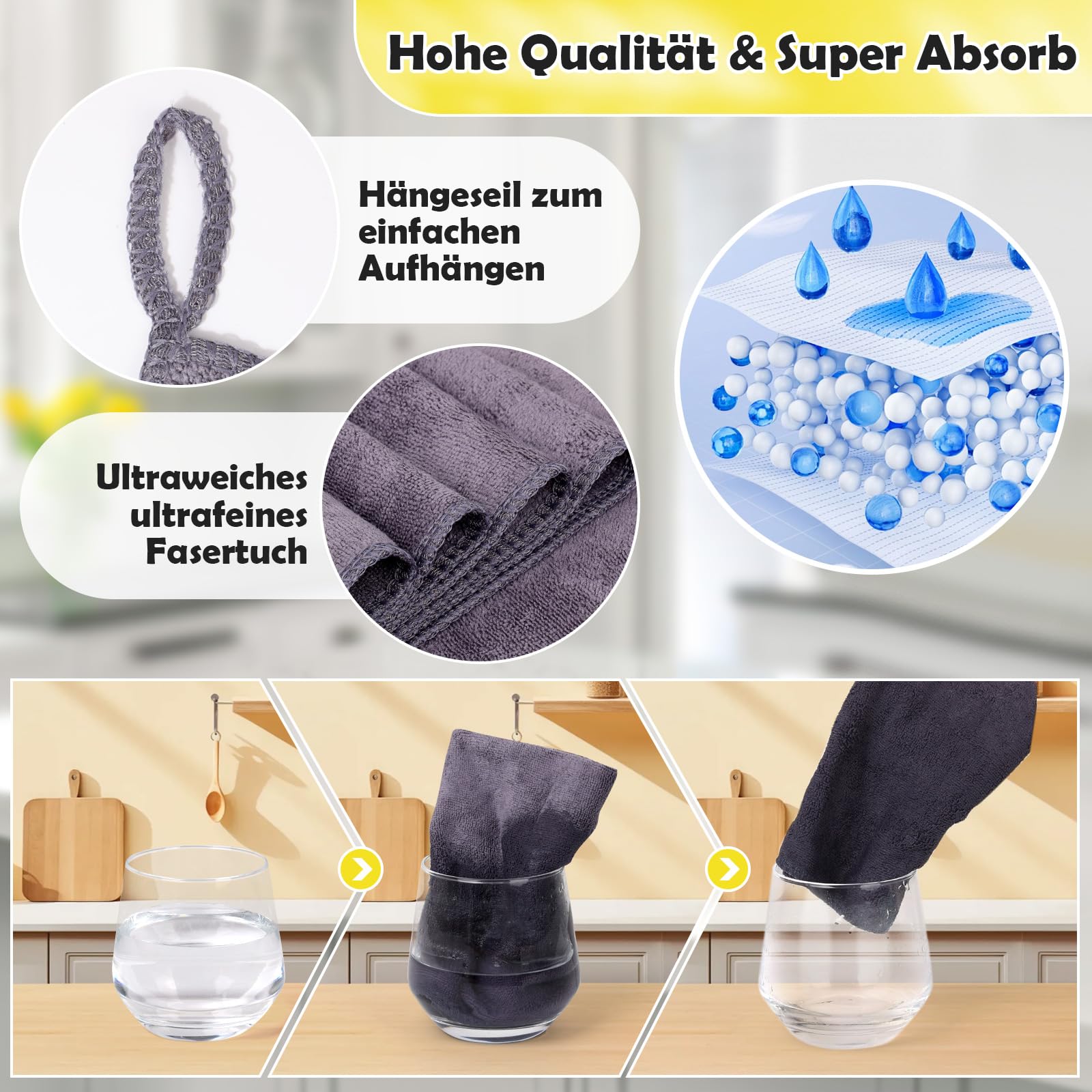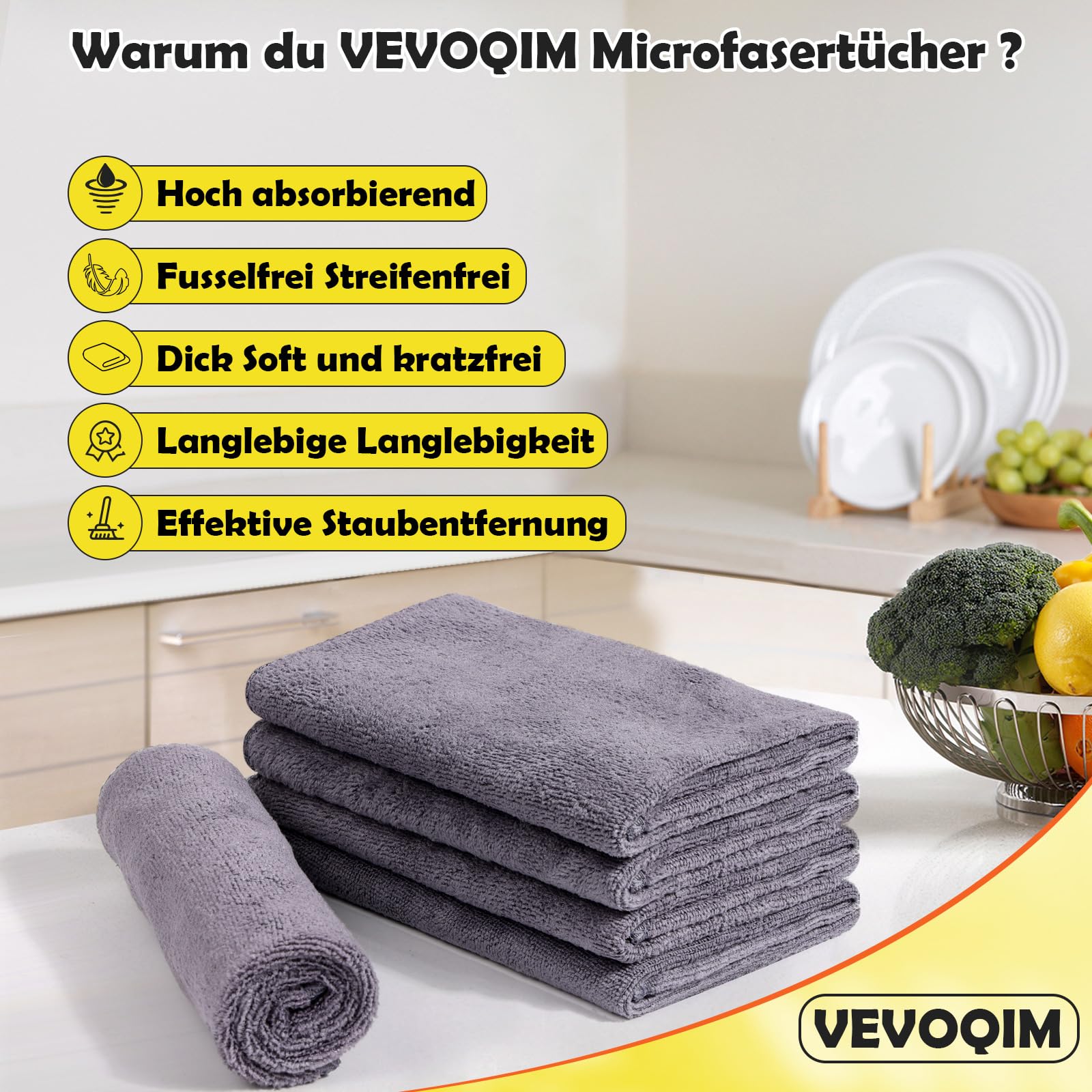 VEVOQIM 20 Stück Mikrofasertücher Ultra Saugfähig und Fusselfrei Microfasertücher Premium Material Allzweck Mikrofasertücher Geschirrtücher, Microfaser Putztuch für Küchen, Autos, Möbel,Fenster, Glas