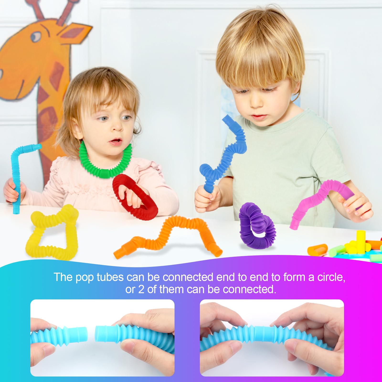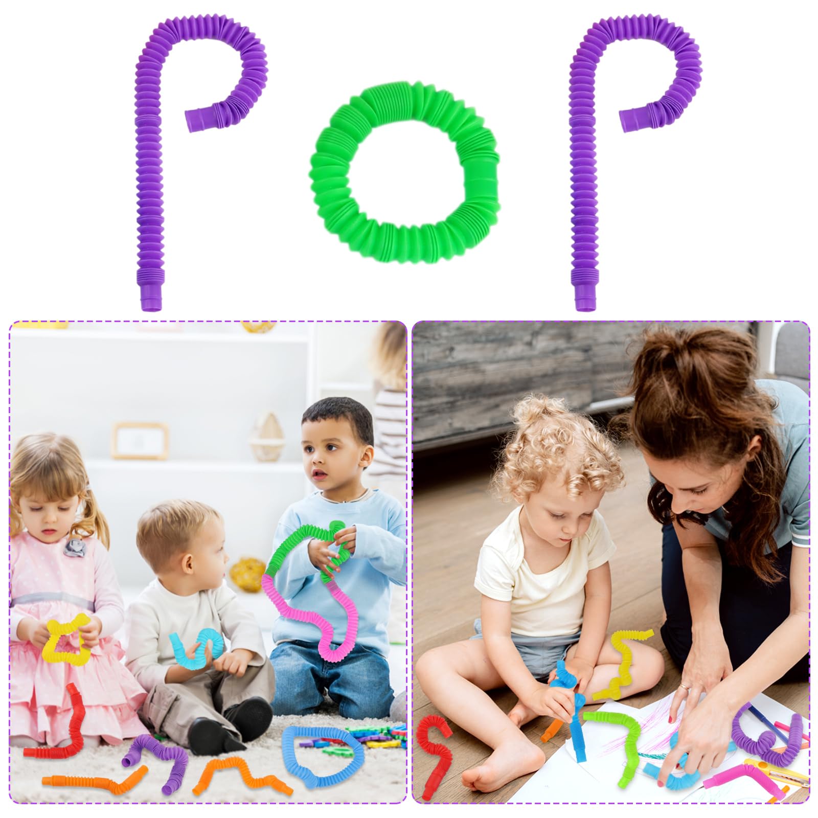 VFANDV 24 Stück Pop Tubes, Mini Stretch Tube Sensorik Spielzeug, Buntes Anti-Stress Pop Röhren, Fidget Toys für Stress- und Angstabbau bei Erwachsenen und Kindern