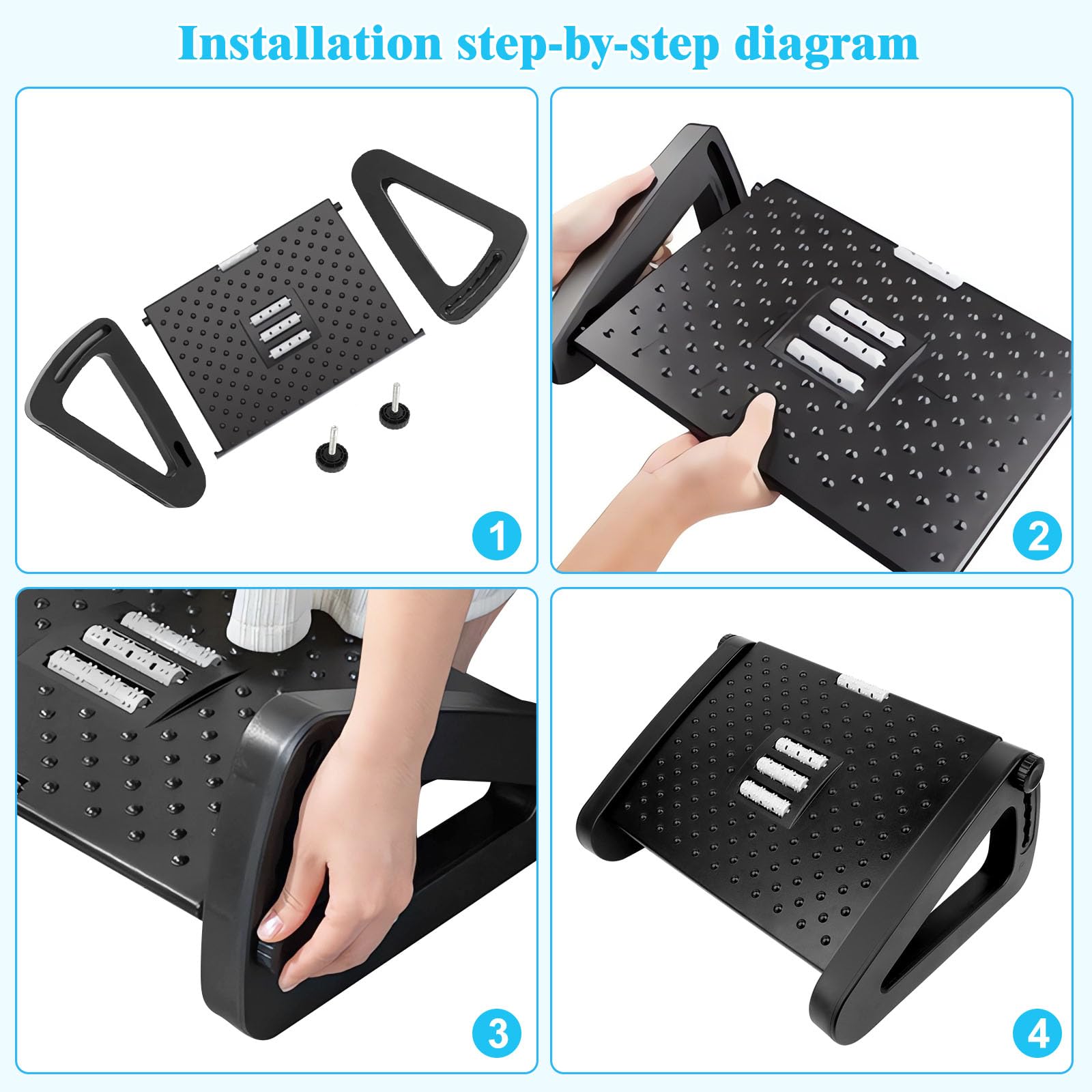 VFANDV Fussstütze Schreibtisch, Schreibtisch-Füssstütze mit Massagefunktion 6 Höhenverstellbar Fussbank, Rutschfest Footrest für Büro und Zuhause