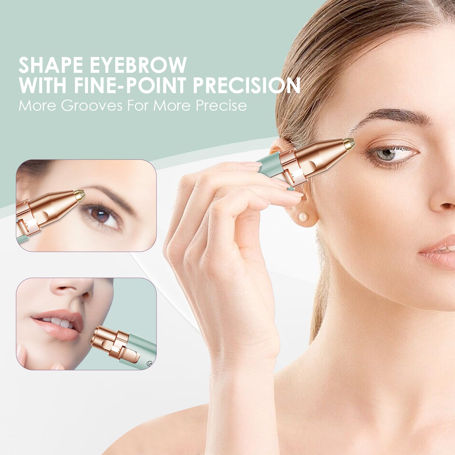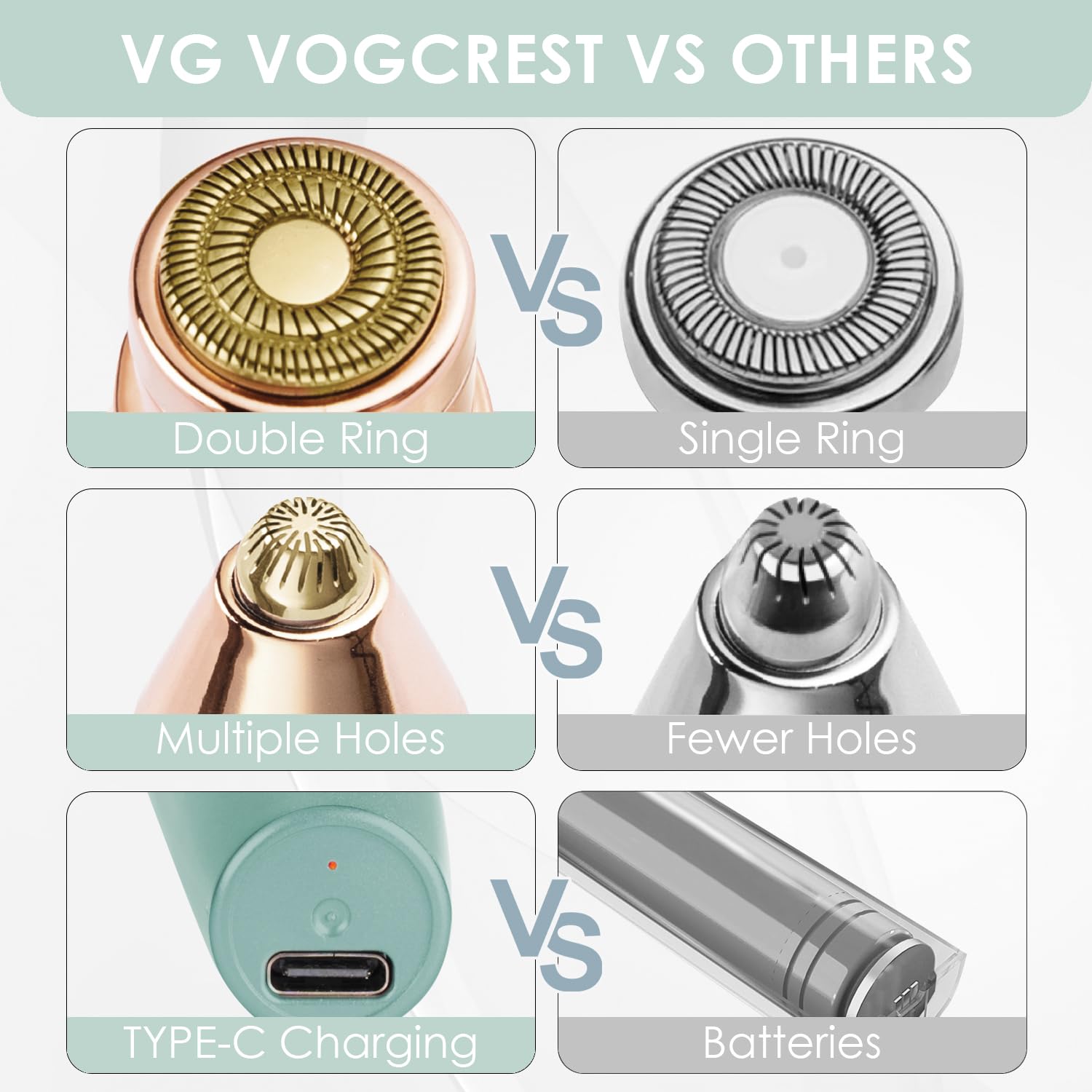 VG VOGCREST Augenbrauen-Gesichtstrimmer 2 in 1 Wiederaufladbare Gesichtshaarentfernung und Augenbrauenrasierer - Gesicht Lippen Körper Schmerzloser Gesichtsrasierer mit eingebauter LED (Grün)