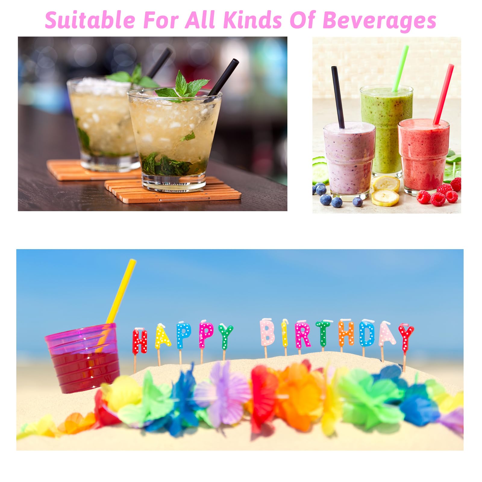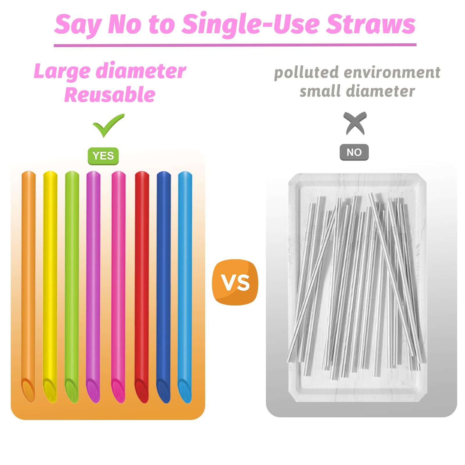vgggrd 14 Wiederverwendbare Boba-Smoothie-Strohhalme mit 2 Bürsten, Bubble Tea Farbige 12 mm, BPA-freie Kunststoff-Strohhalme, Spitzes Design 26CM Lange